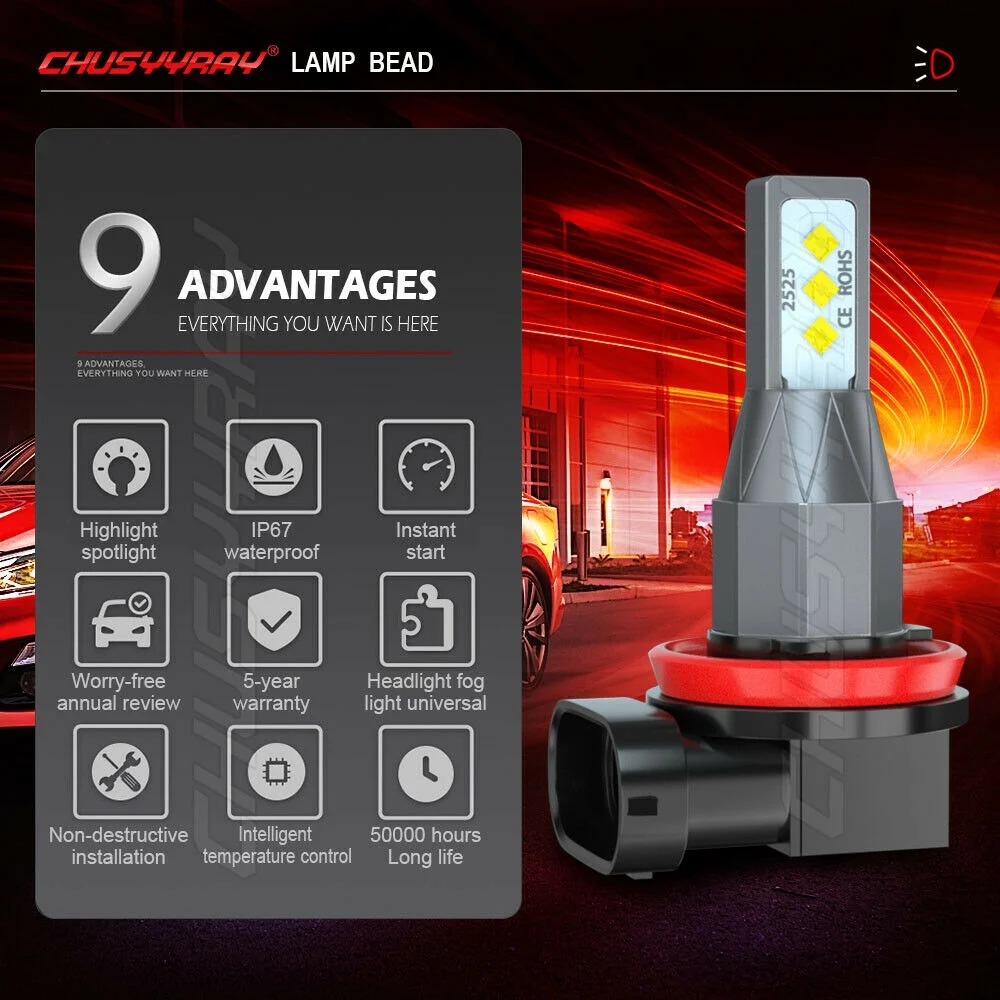 4x 9007+H11/H8 LED Headlight Fog Light Hi-Lo For Mitsubishi Mirage G4 2017-2018