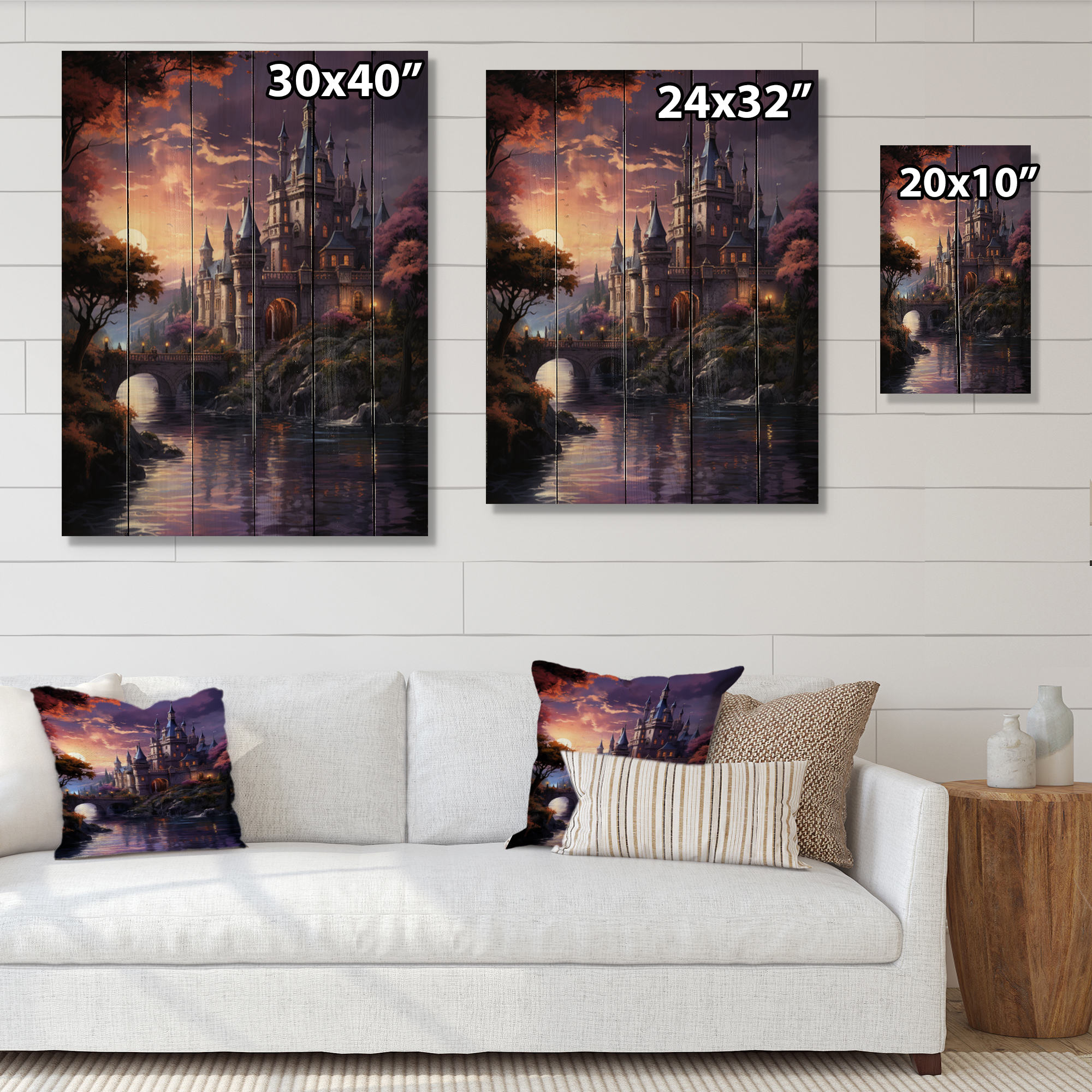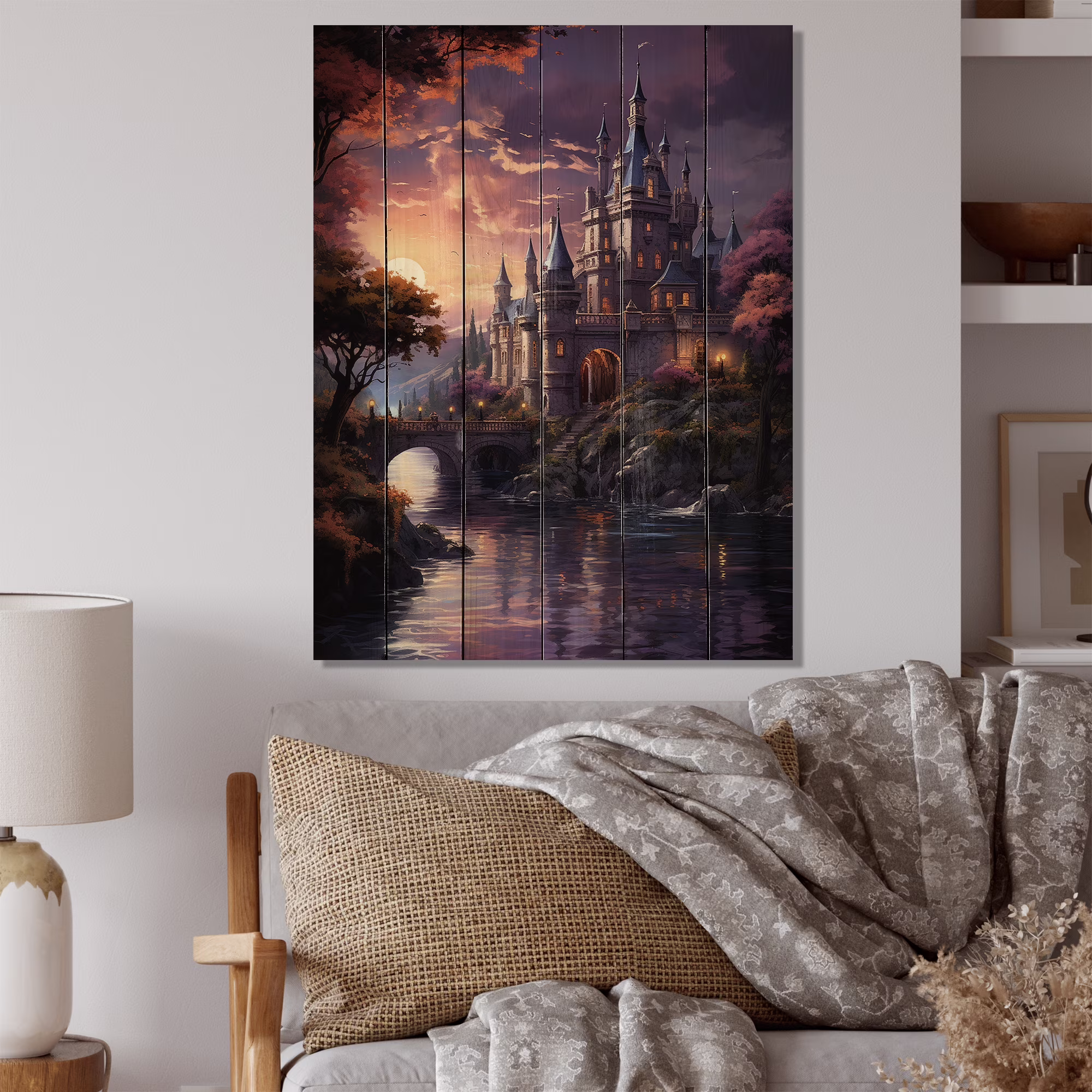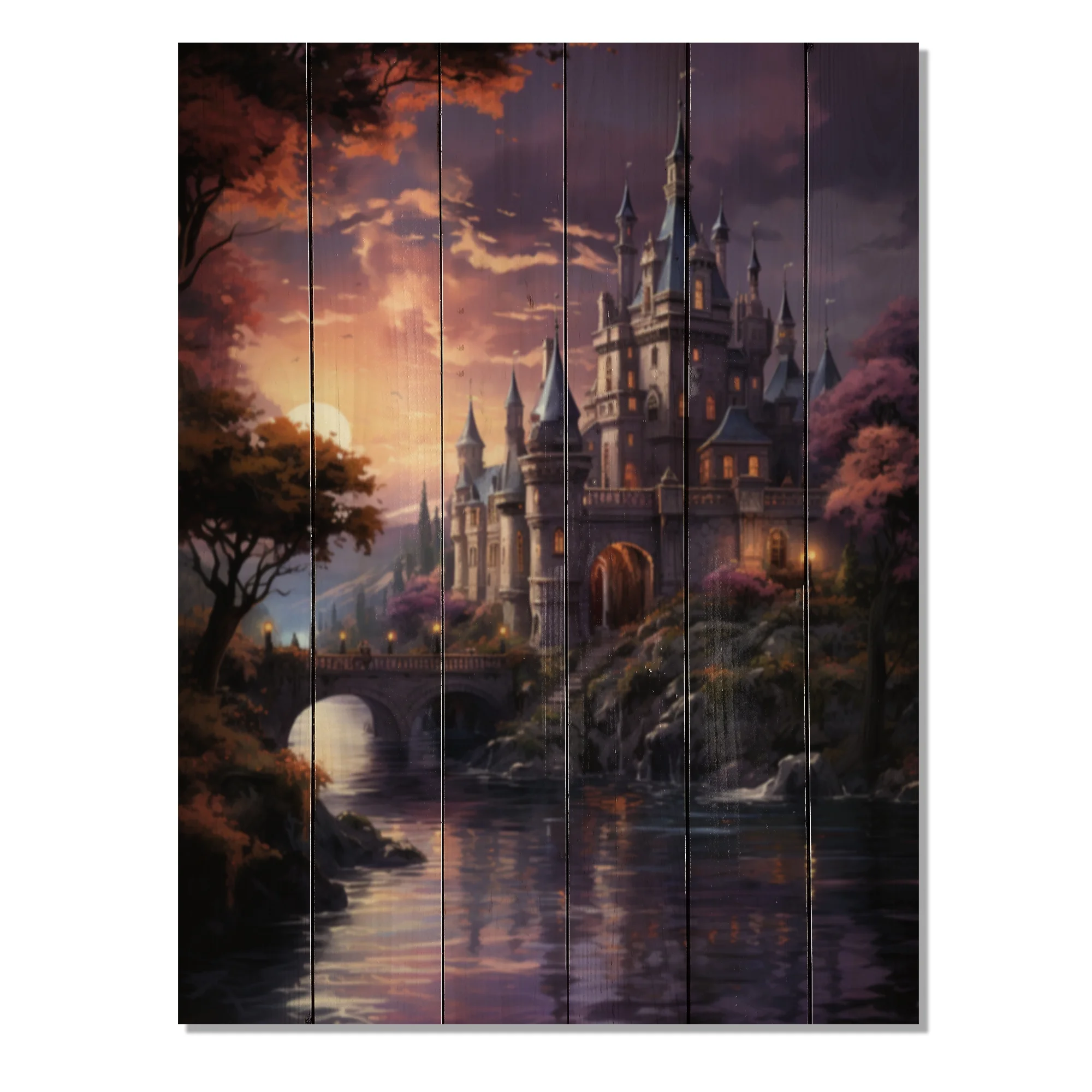 Designart "Castles Twilight Deep II" Cityscapes Print on Natural Pine Wood