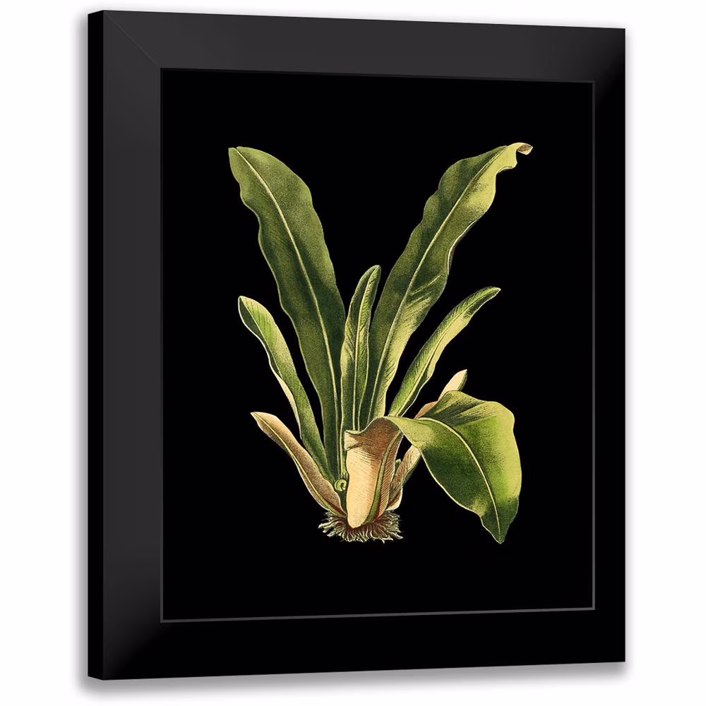 Vision Studio 12x14 Black Modern Framed Museum Art Print Titled - Custom Green Leaves on Black III (LG)