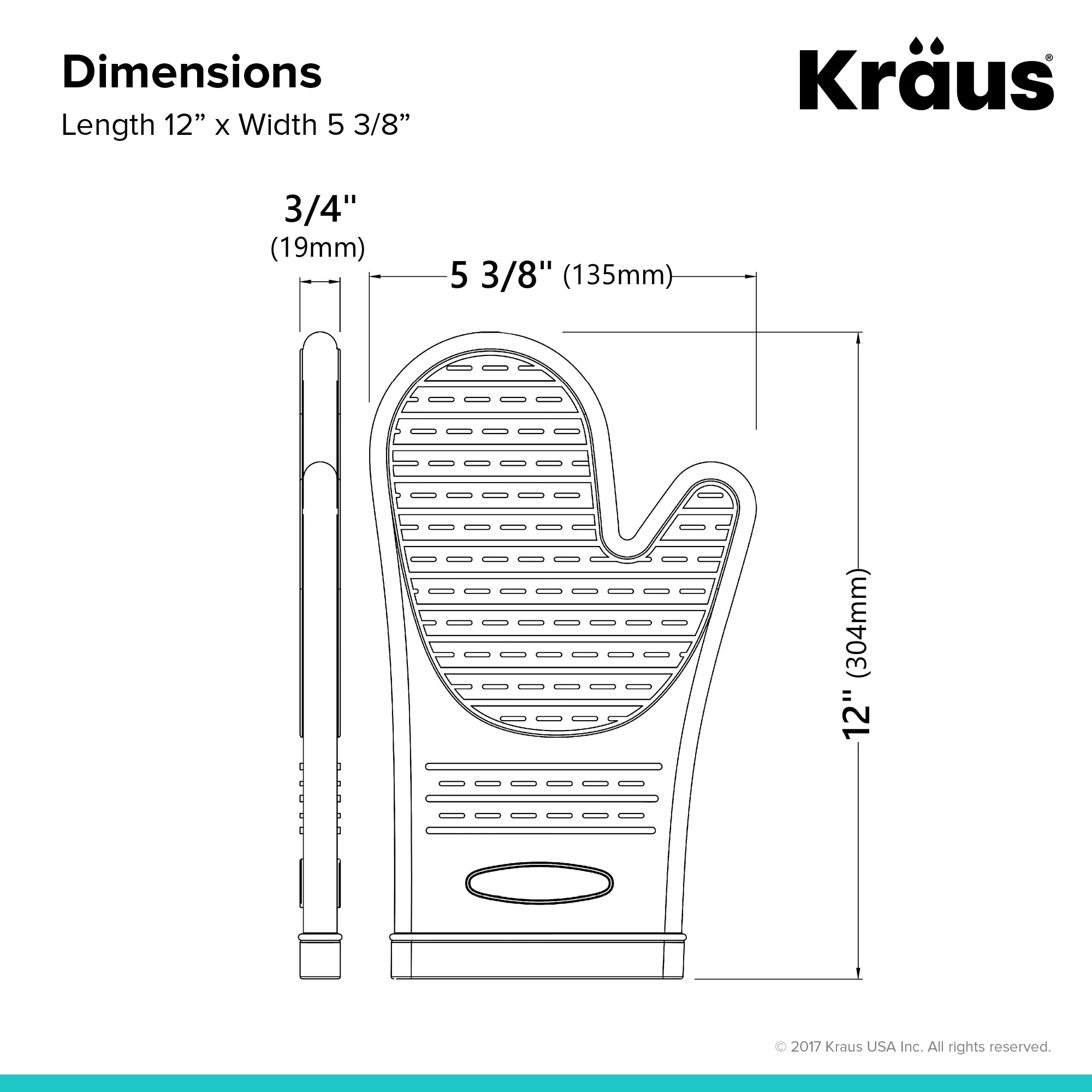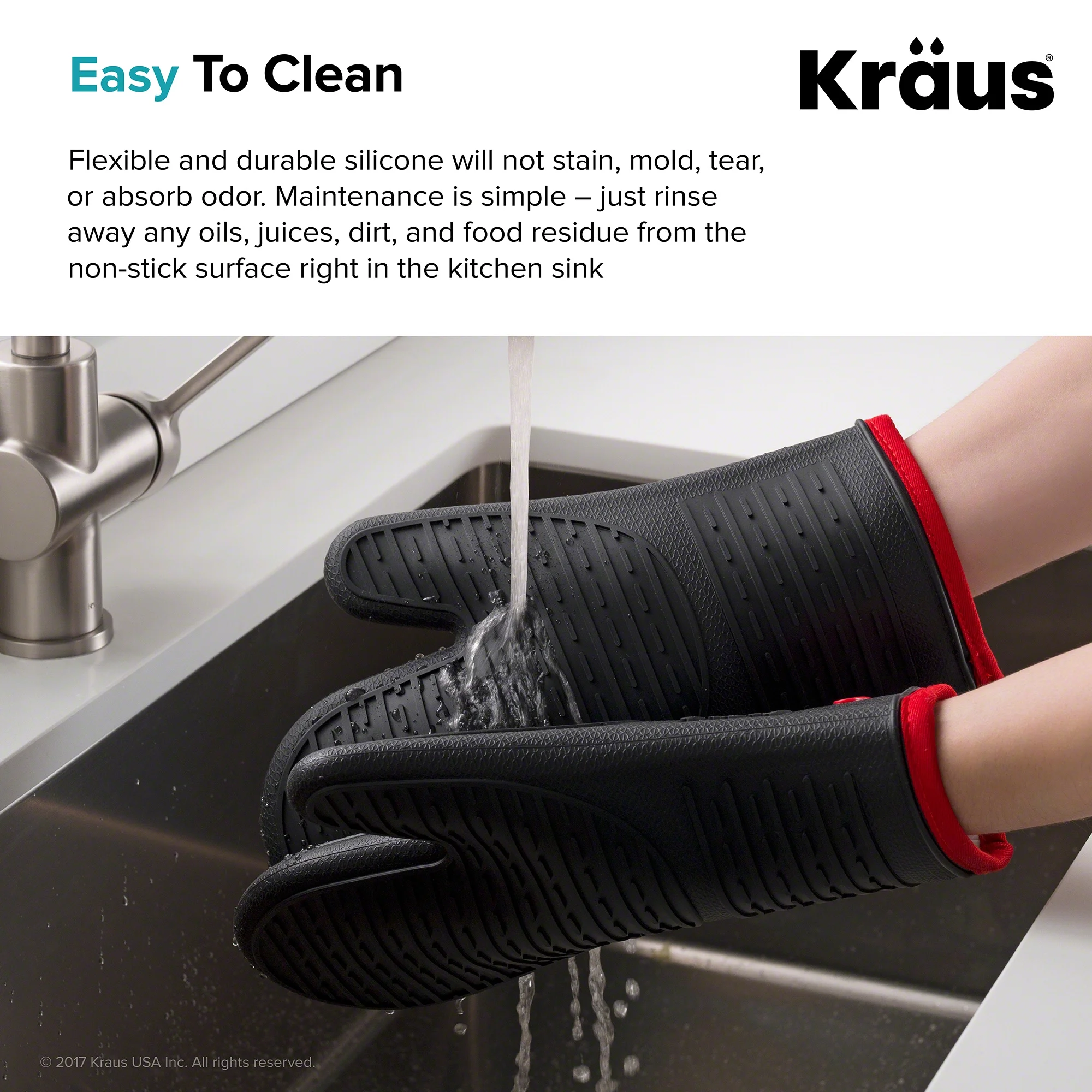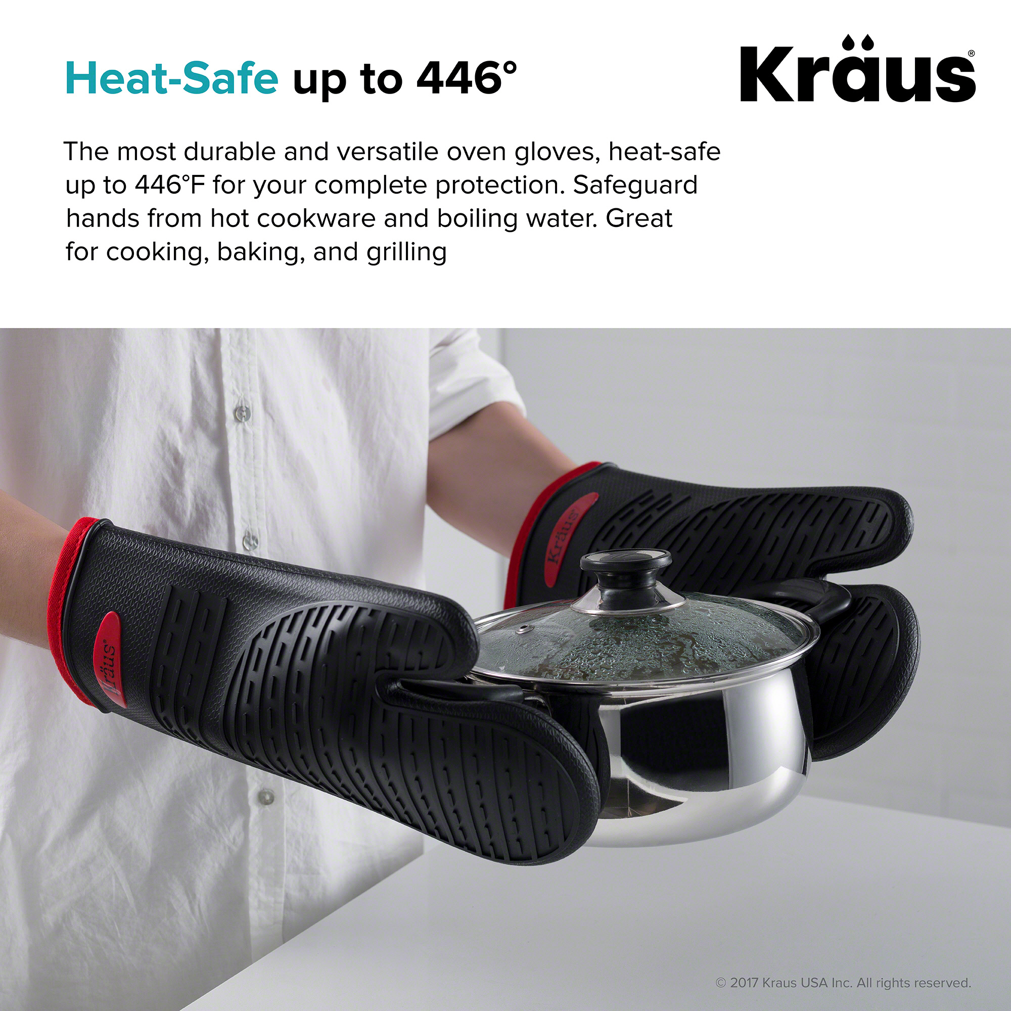 KRAUS Heat-Resistant 100% Food-Safe Silicone Non-Slip Oven Mitt Pack of 2