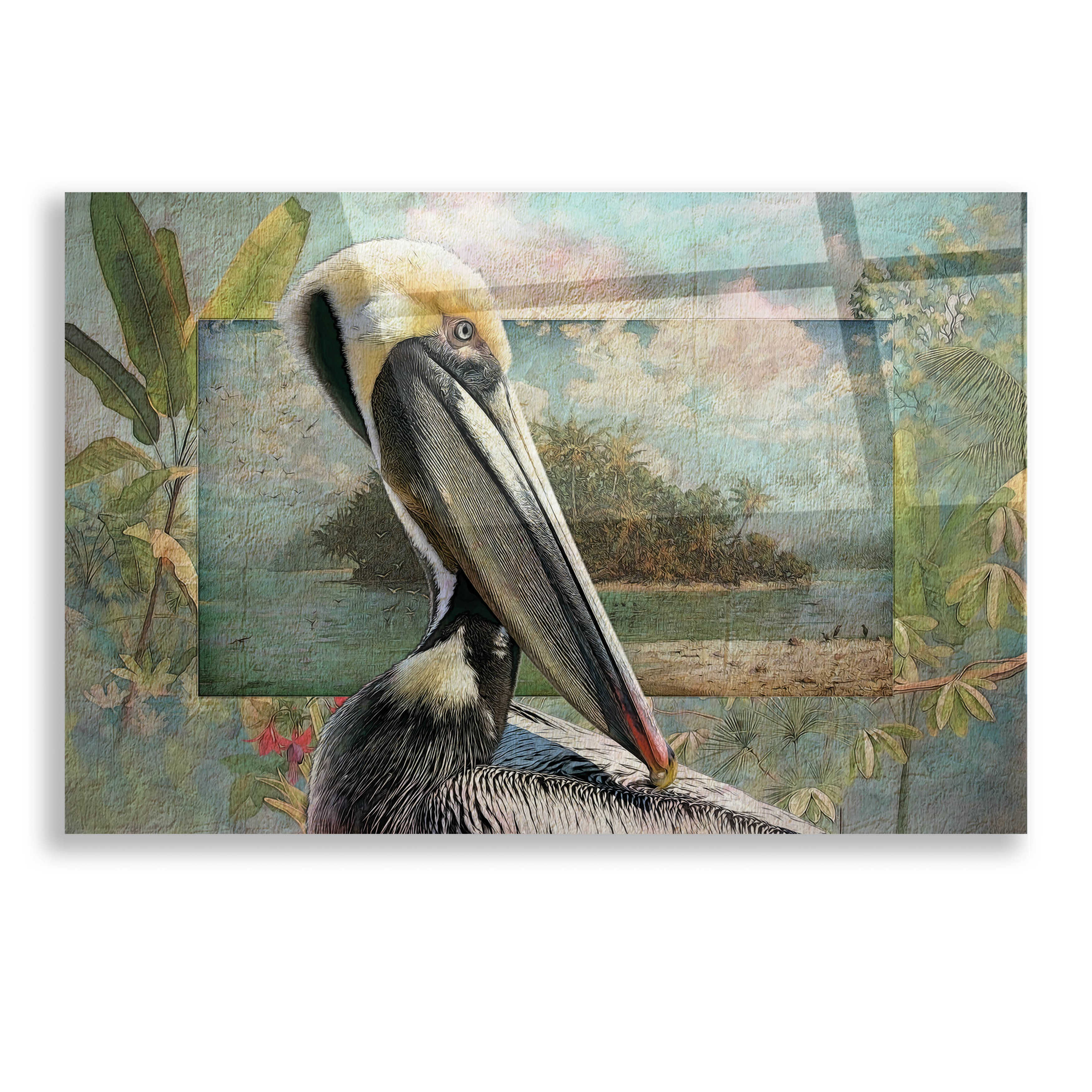 Epic Art 'Pelican Paradise V' by Steve Hunziker, Acrylic Glass Wall Art, 16"x12"