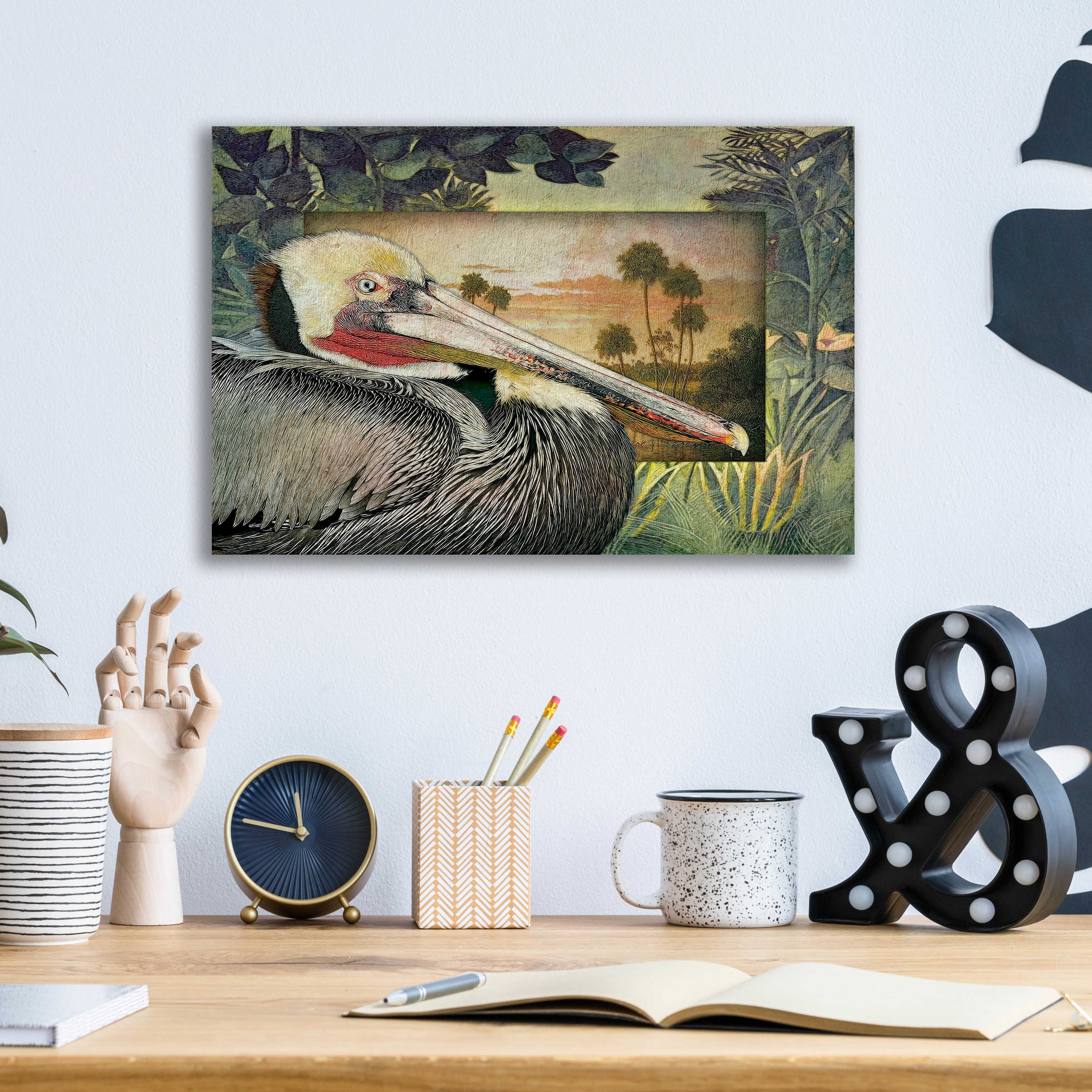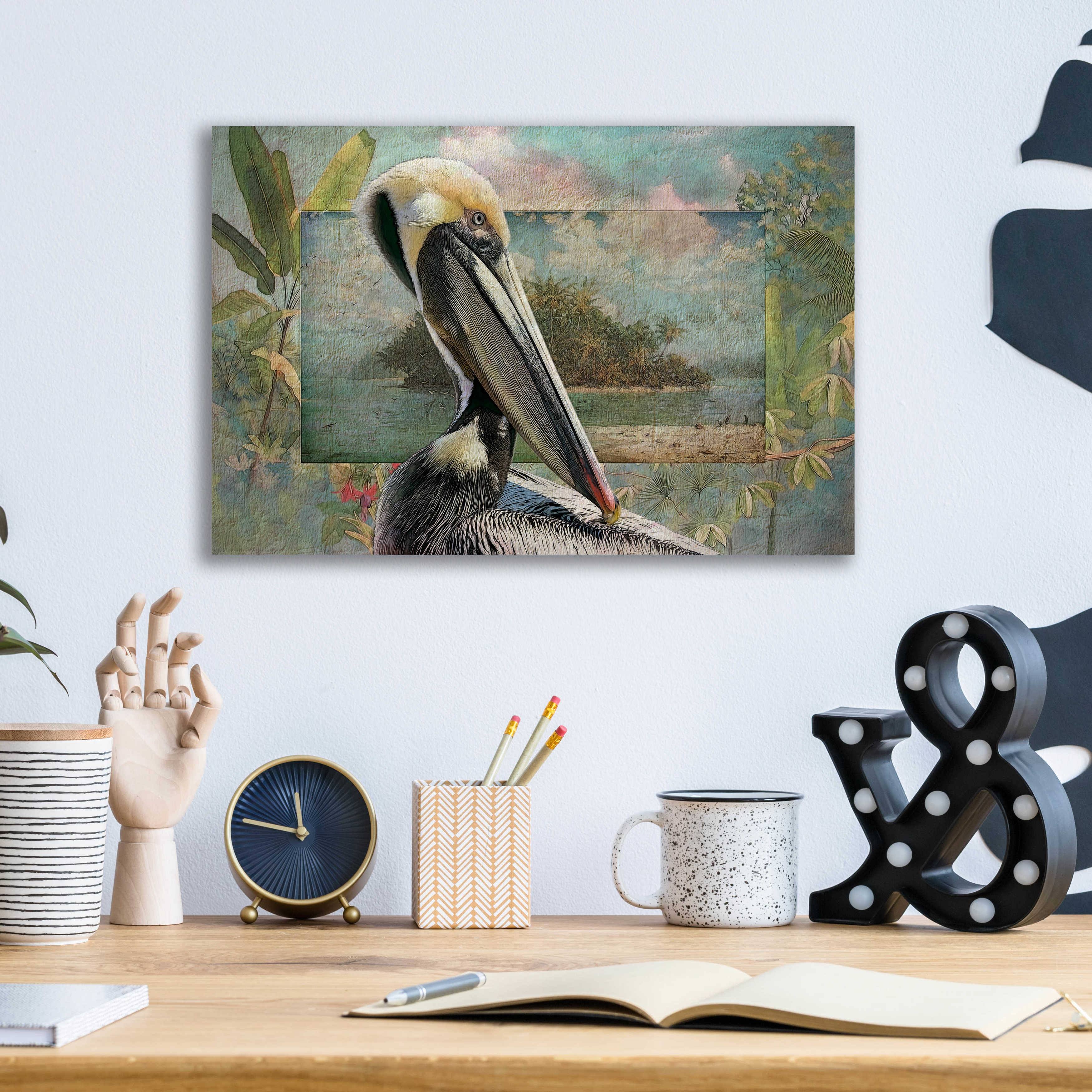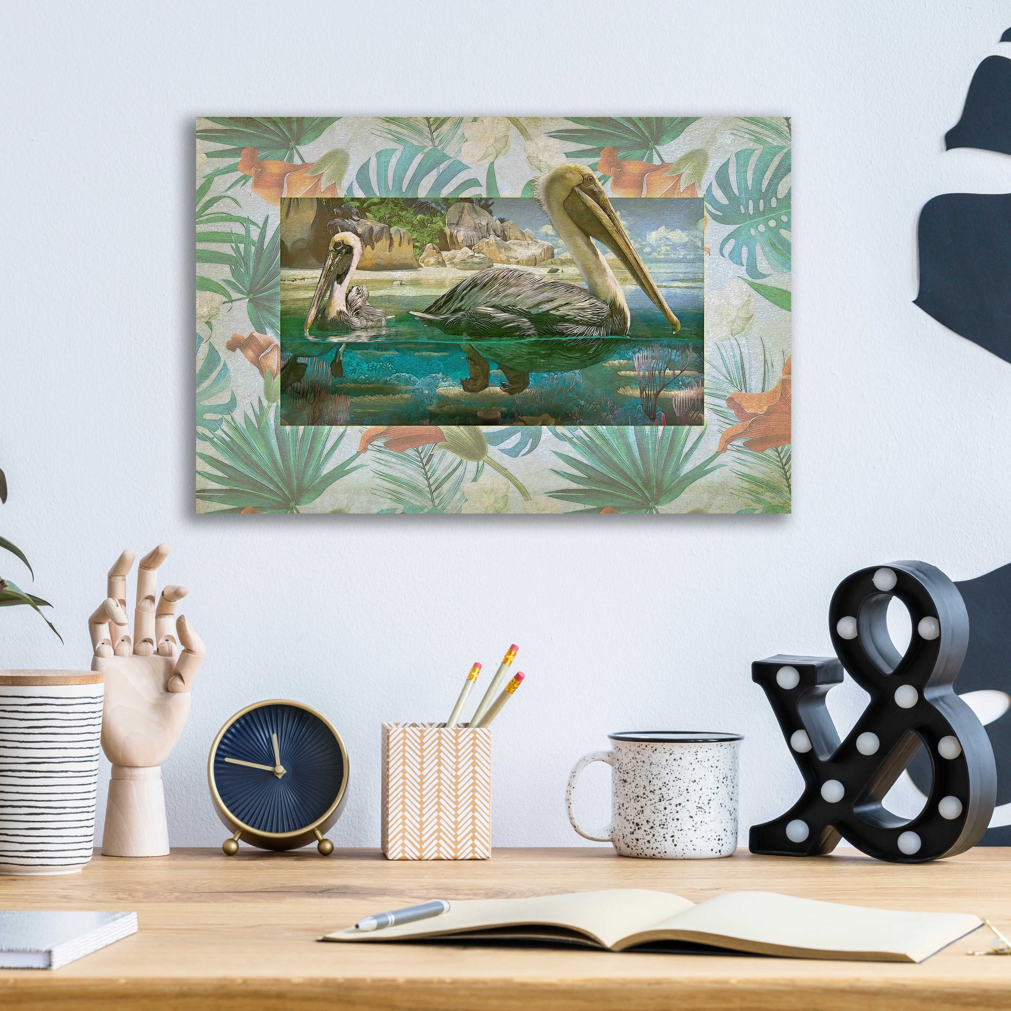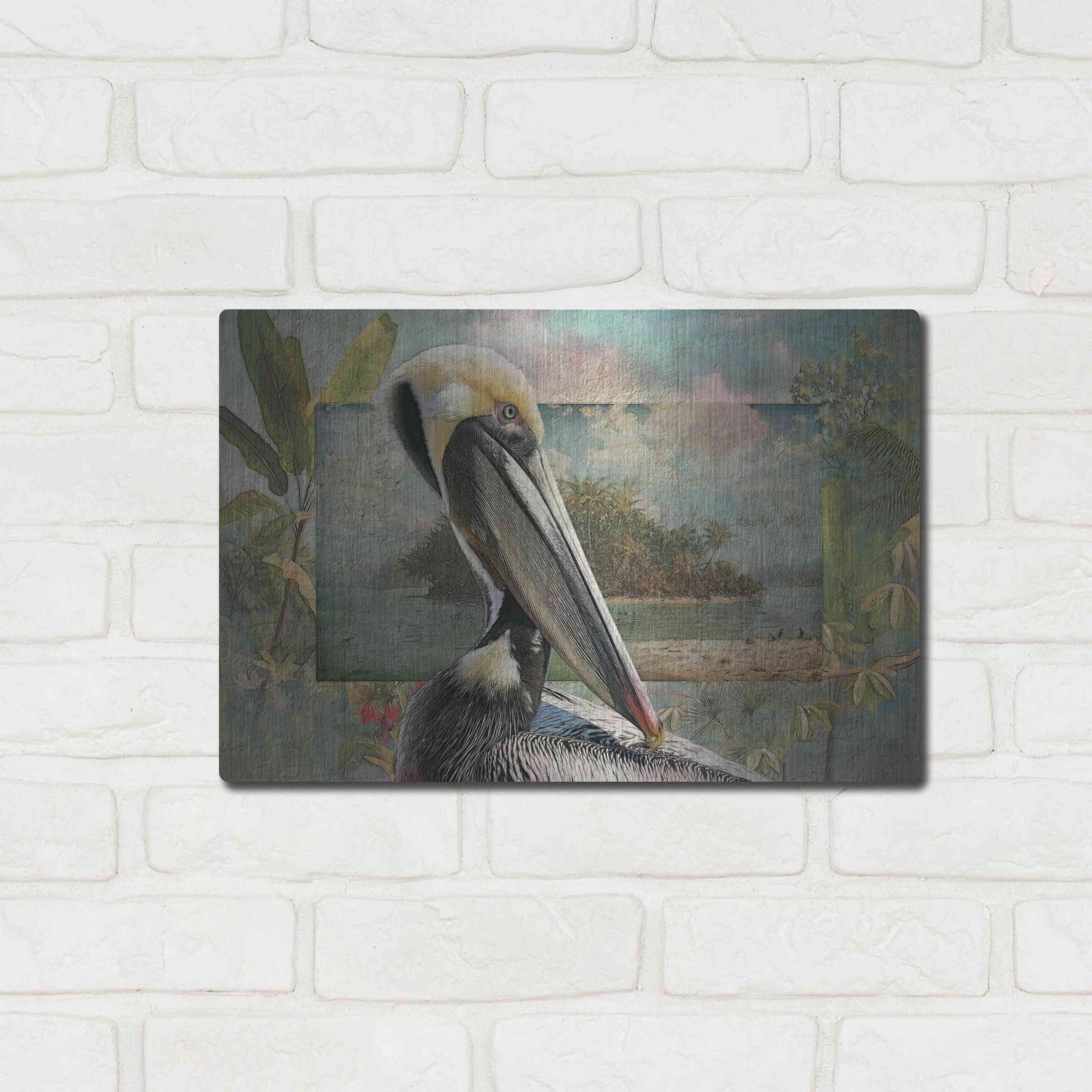 Luxe Metal Art 'Pelican Paradise II' by Steve Hunziker, Metal Wall Art, 16"x12"