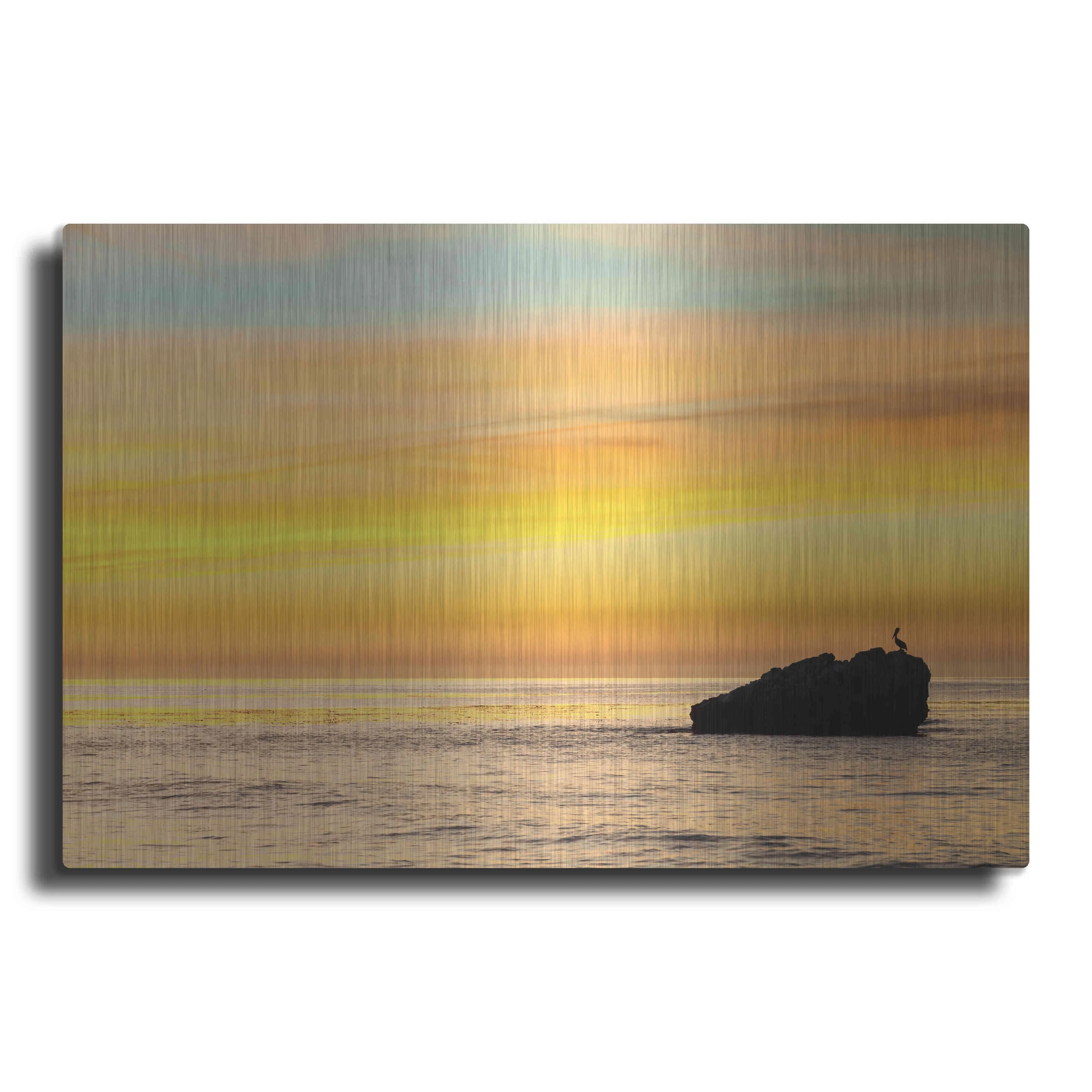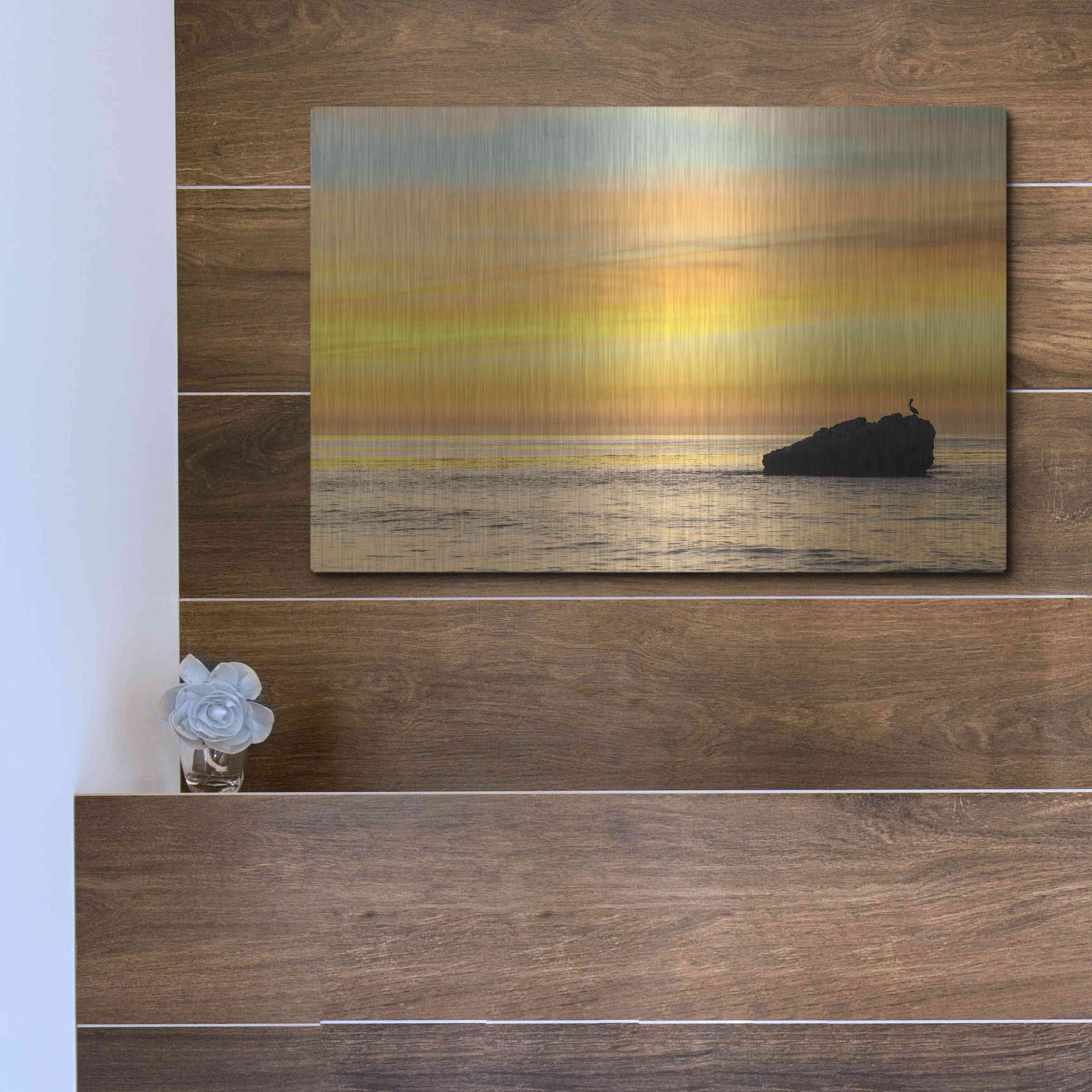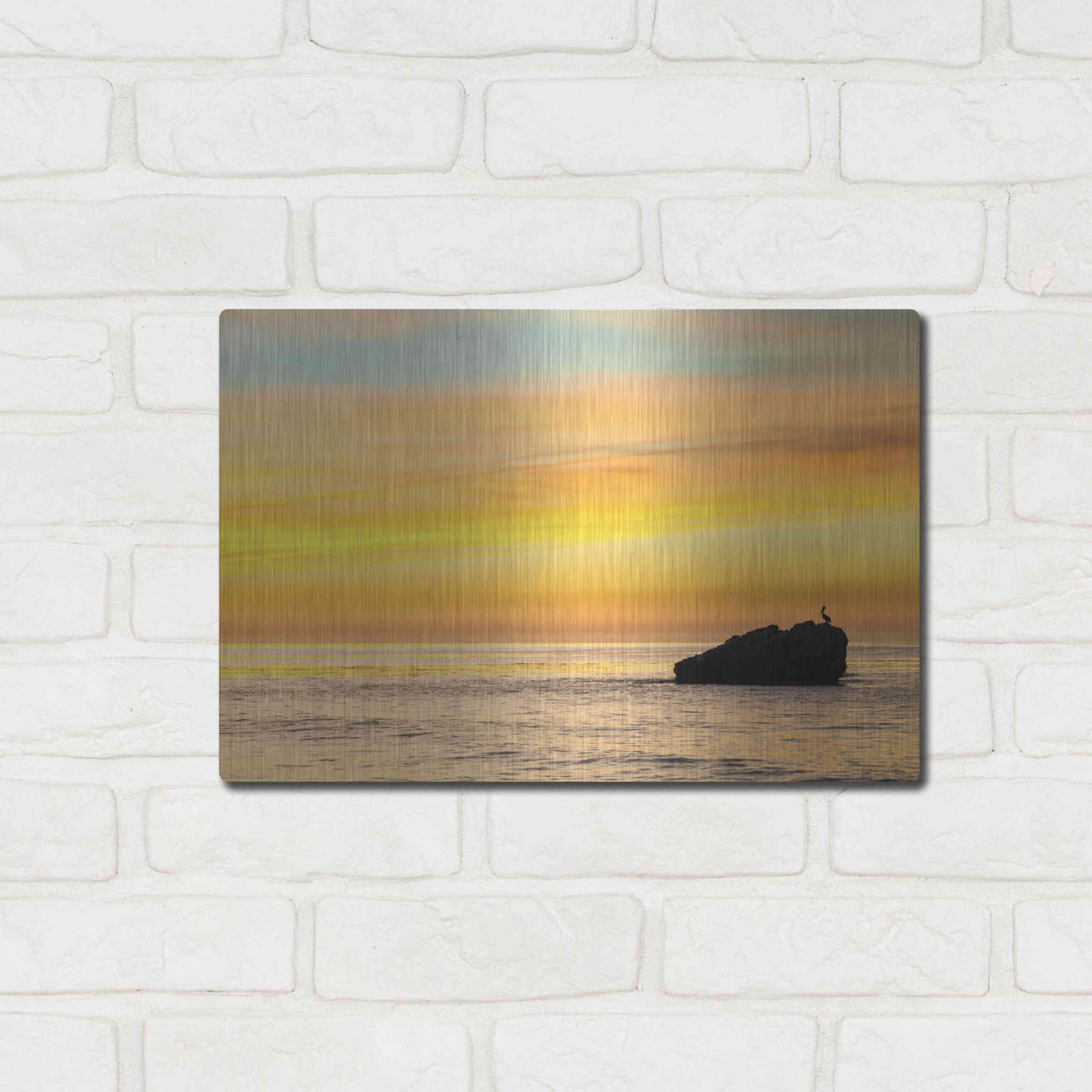 Luxe Metal Art 'Pelican Sunrise' by Chris Moyer, Metal Wall Art, 16"x12"