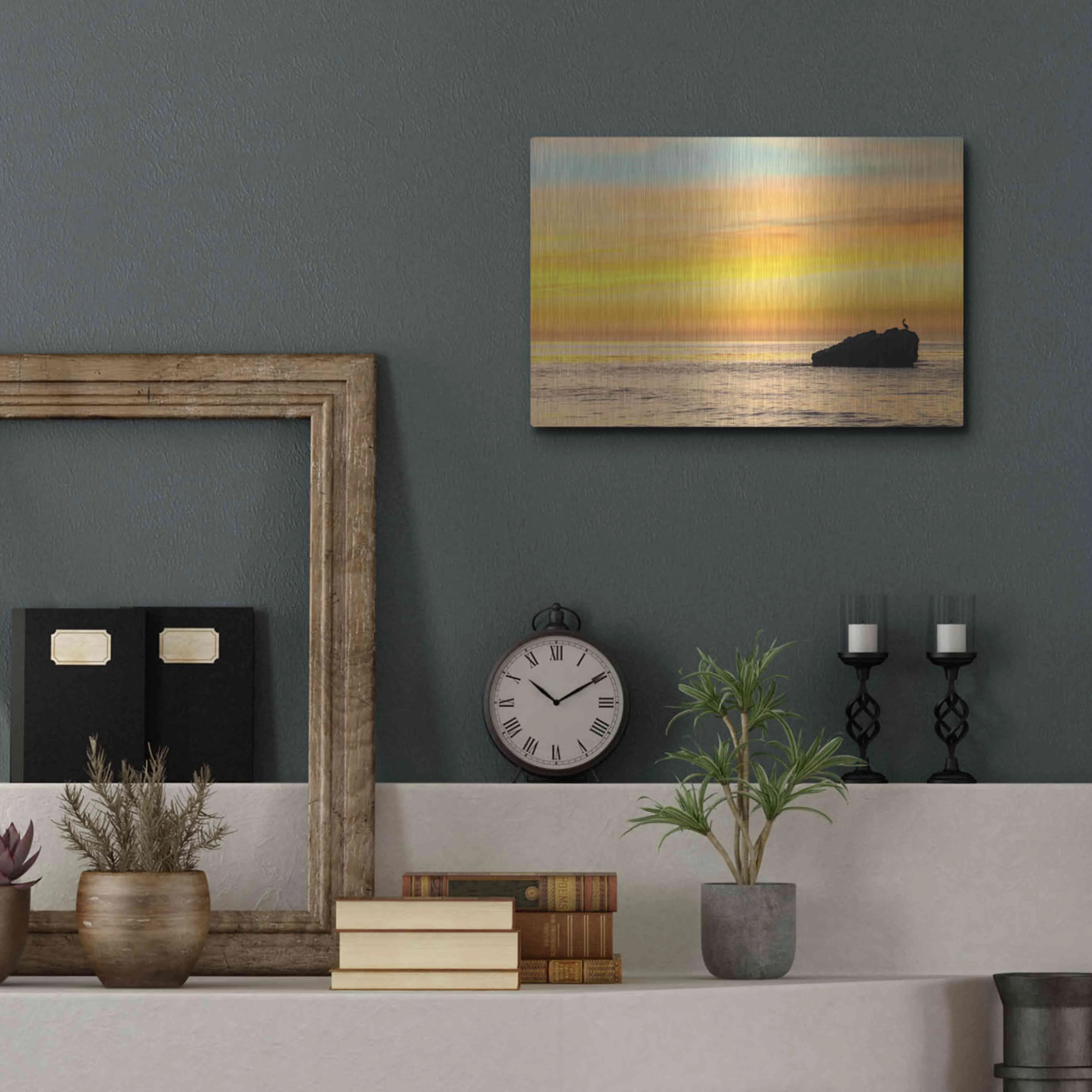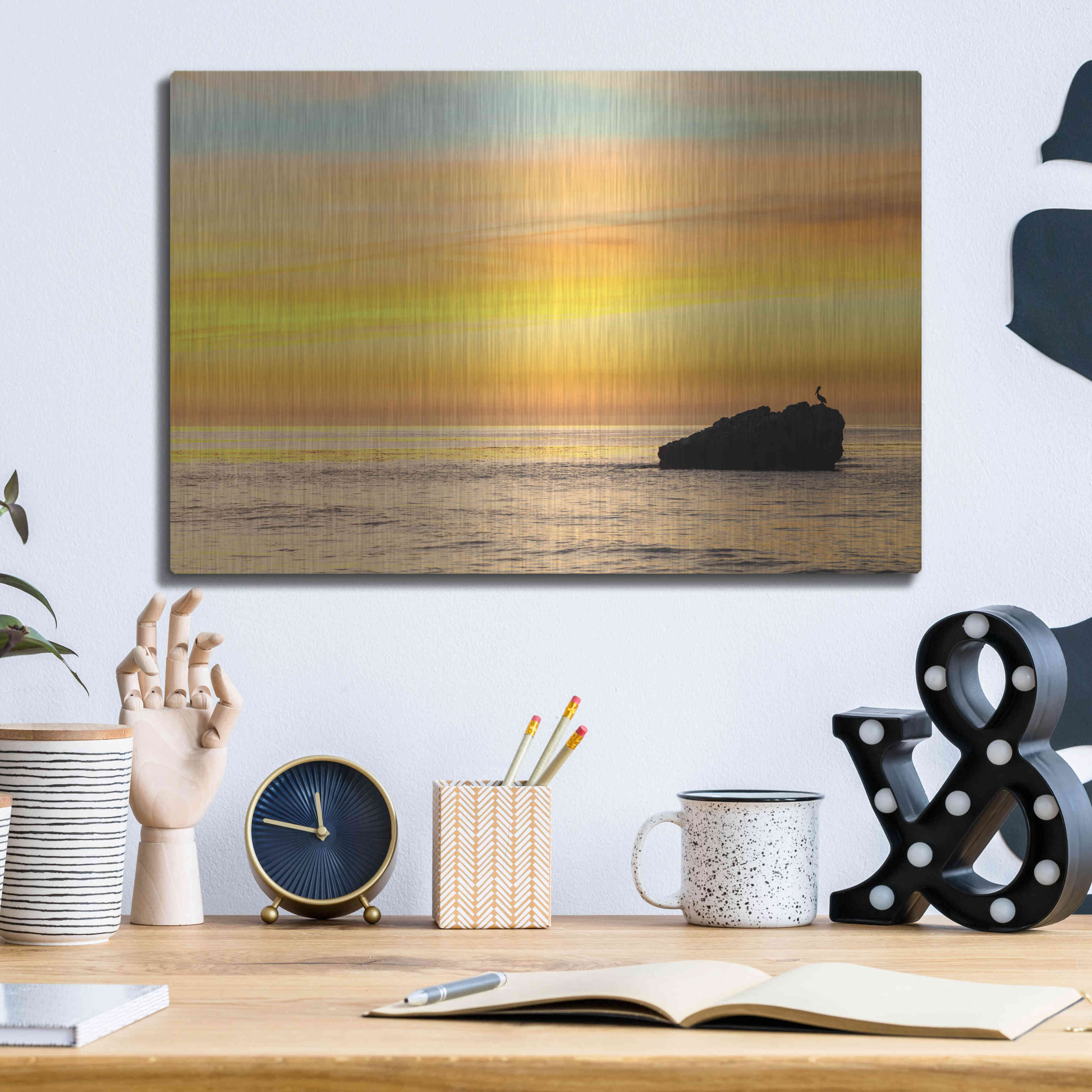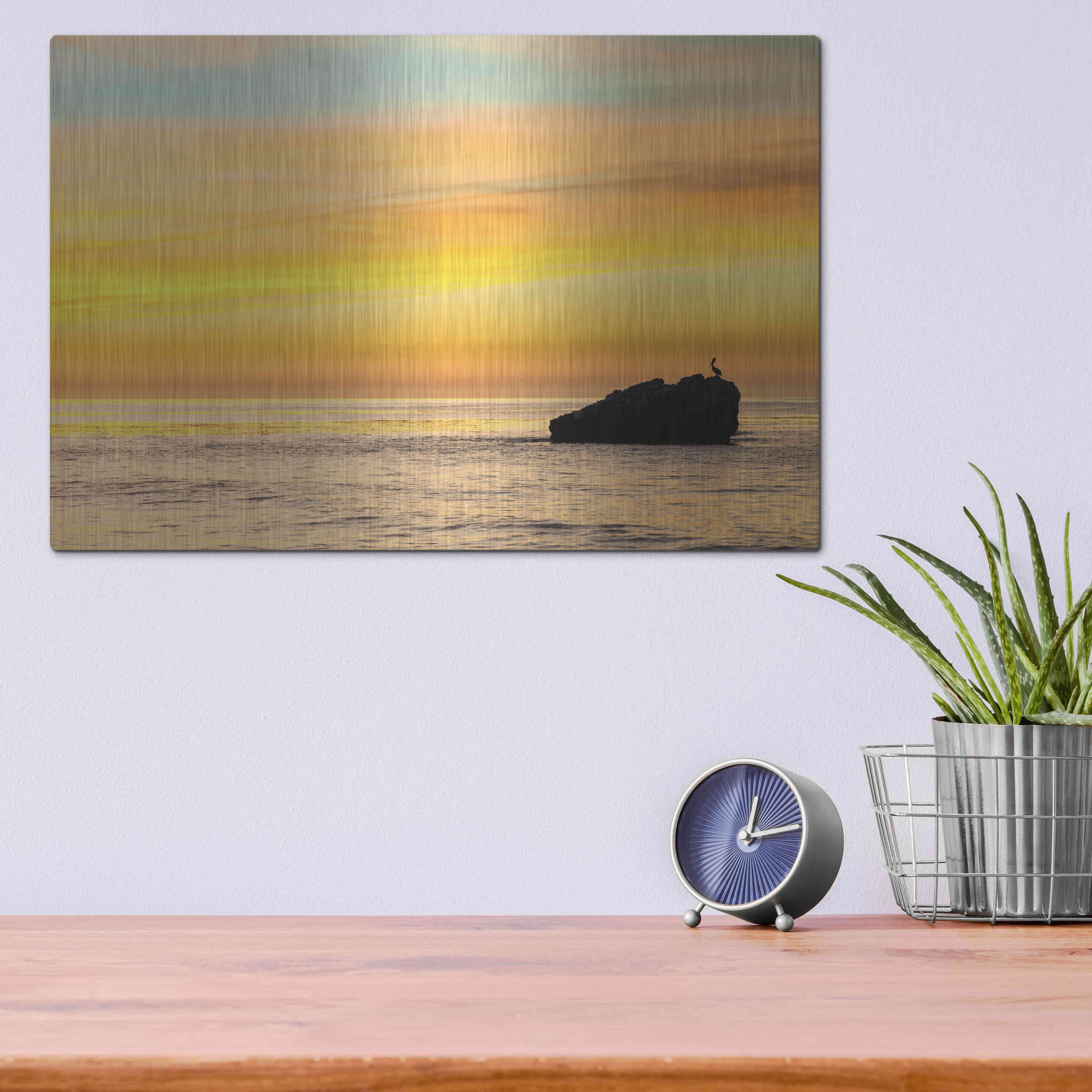 Luxe Metal Art 'Pelican Sunrise' by Chris Moyer, Metal Wall Art, 16"x12"