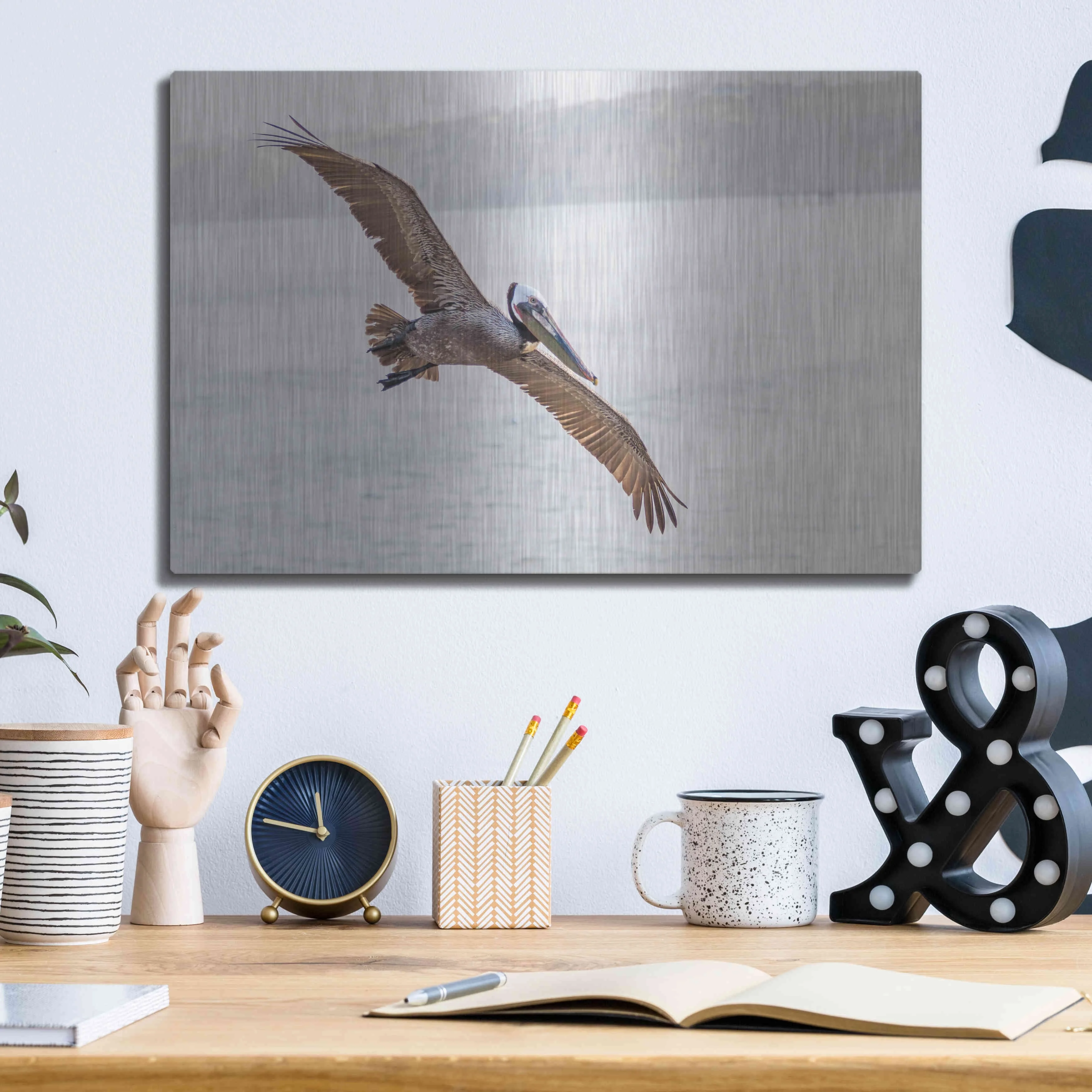 Luxe Metal Art 'Pelican Spread' by Chris Moyer, Metal Wall Art, 16"x12"