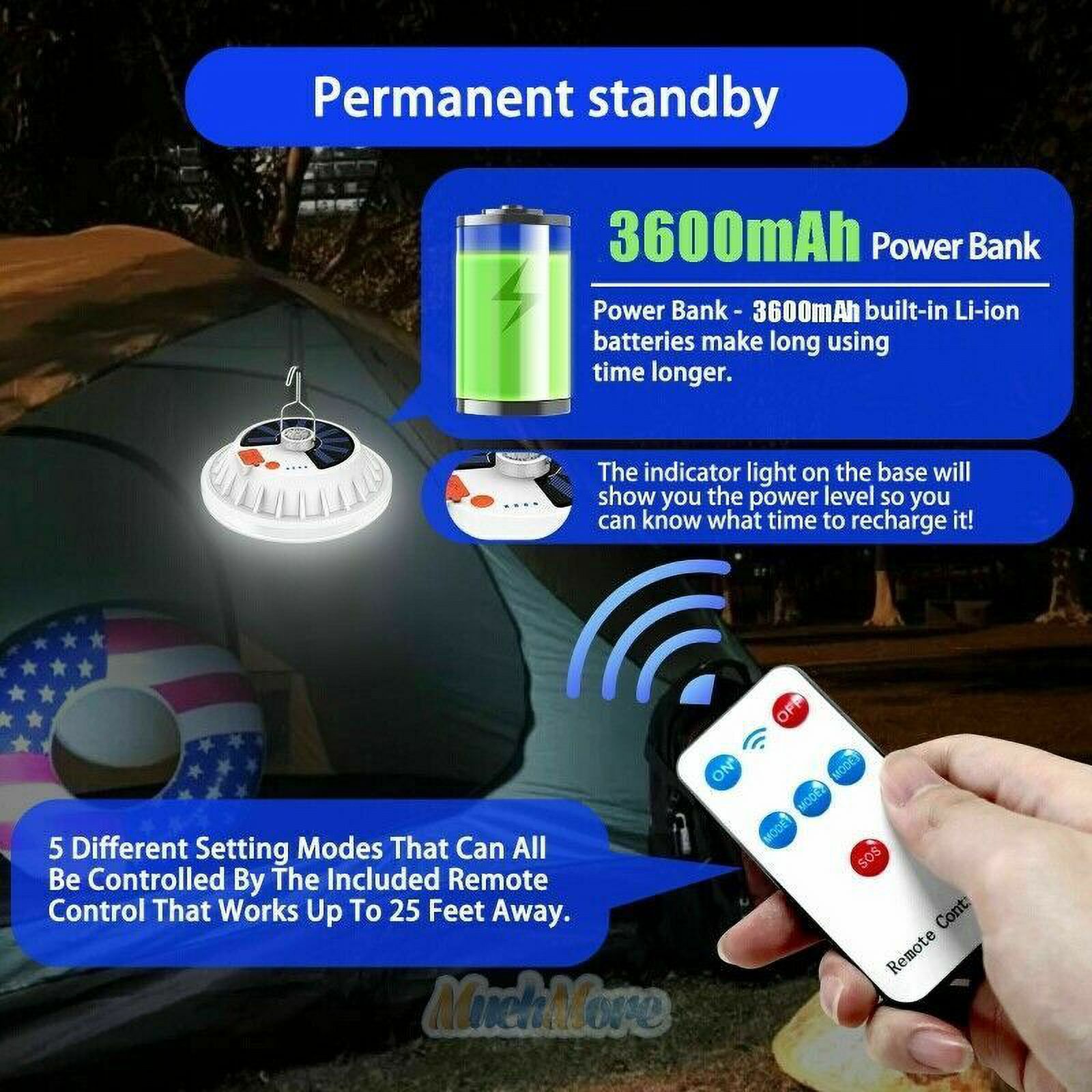 Solar USB LED Rechargeable Camping Lantern Light Emergency Lamp Remote Control