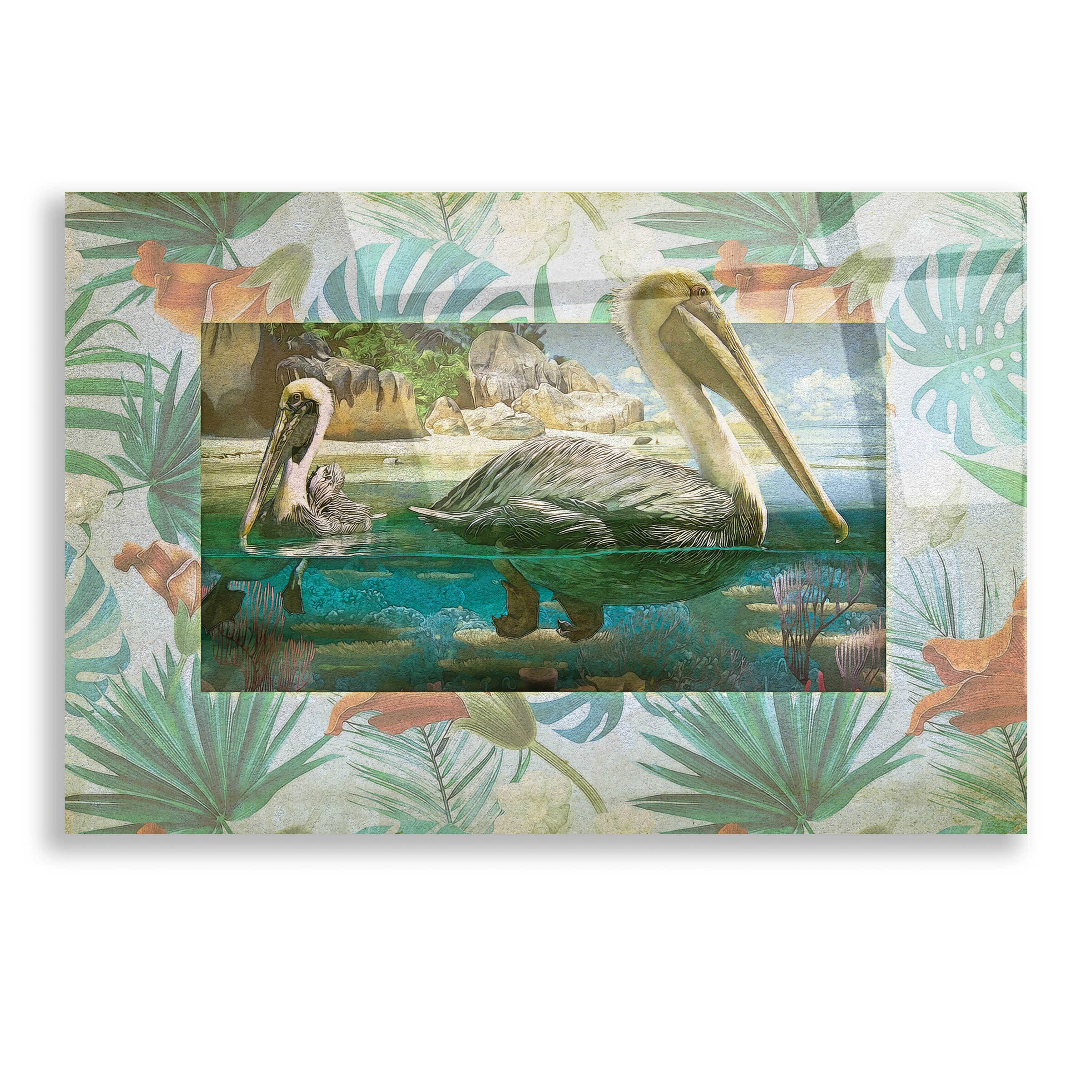Epic Art 'Pelican Paradise II' by Steve Hunziker, Acrylic Glass Wall Art, 16"x12"