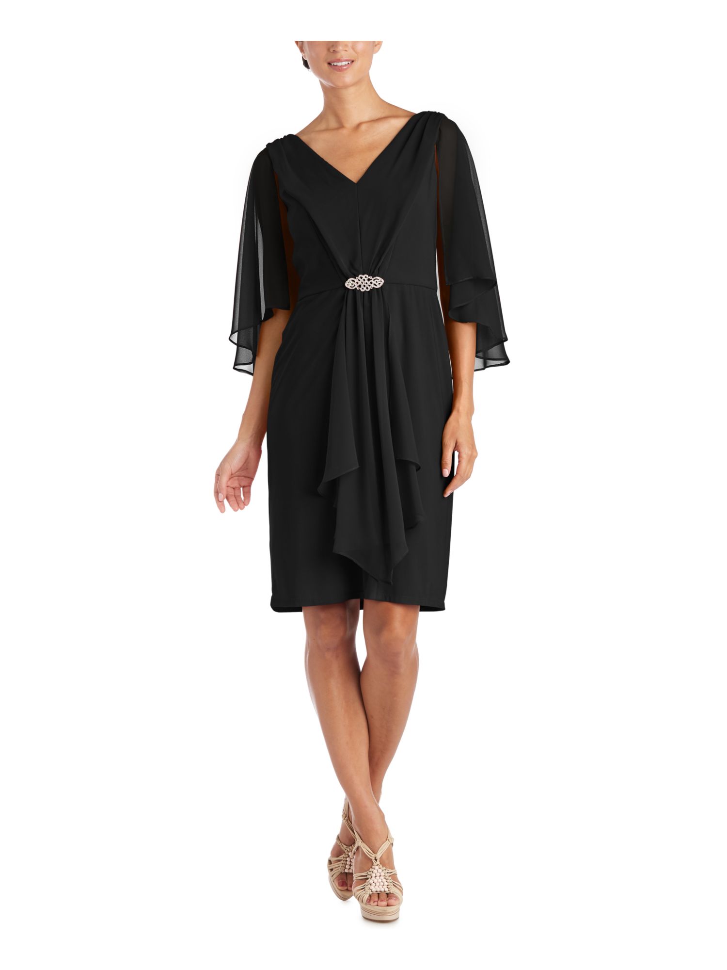 R&M RICHARDS Womens Beige Jewel Neck Above The Knee Cocktail Sheath Dress 6