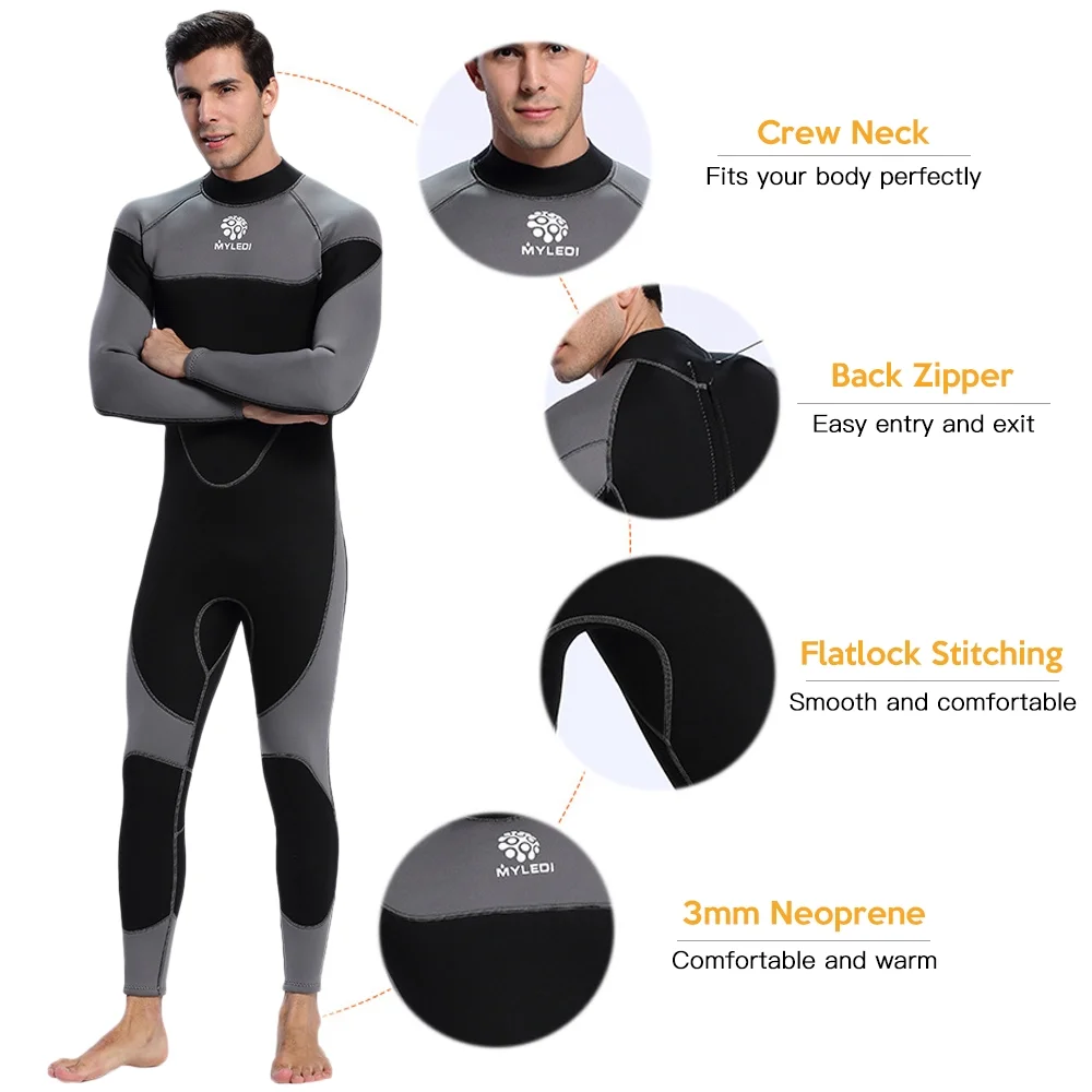 Myledi Men 3mm Neoprene Wetsuit Surfing Swimming Diving Suit Suit (XXL)