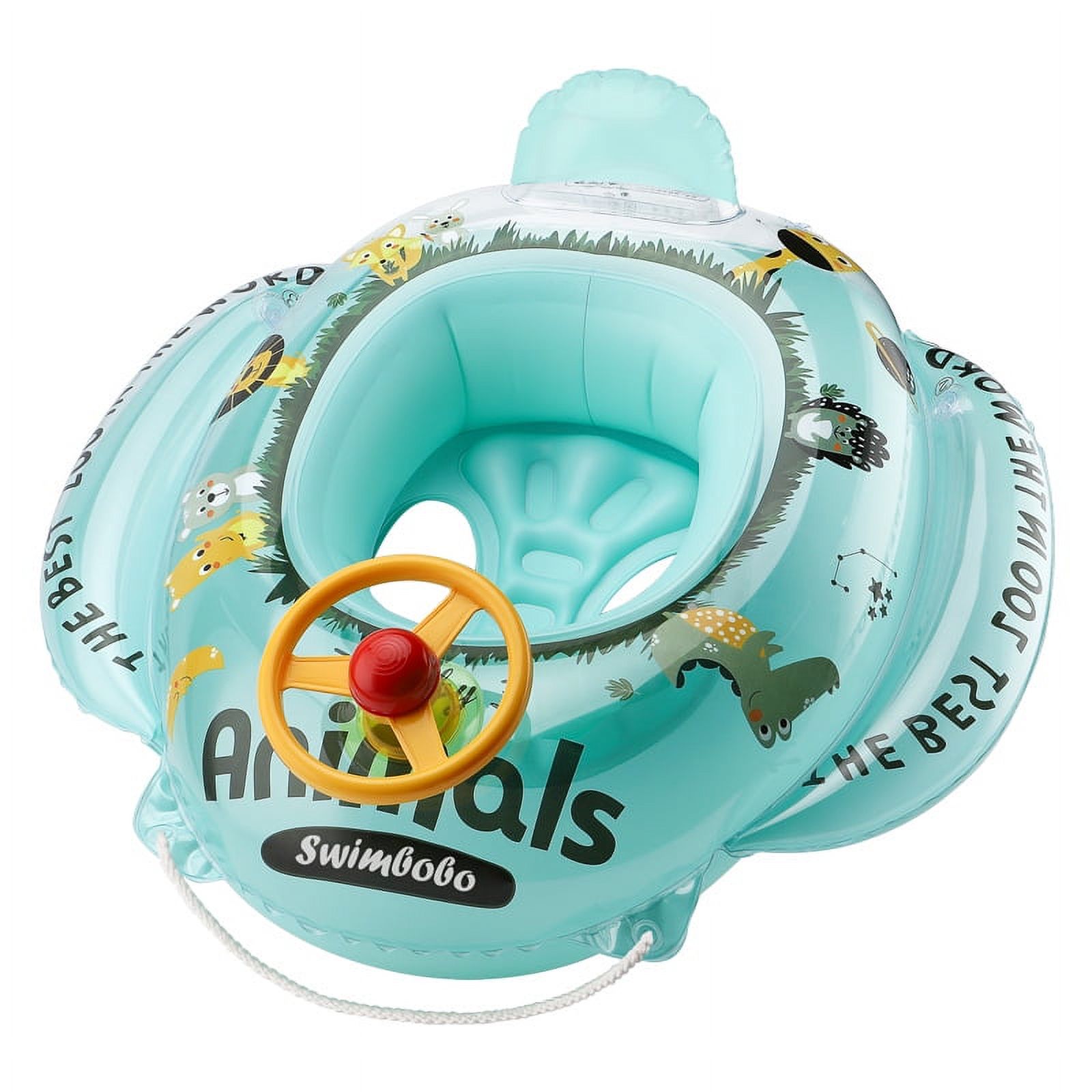 Little Bado Baby Pool Floats Inflatable Baby Swim Float Jungle Boat Pool Swim Ring with Sun Protection for Kids 6-36 Months