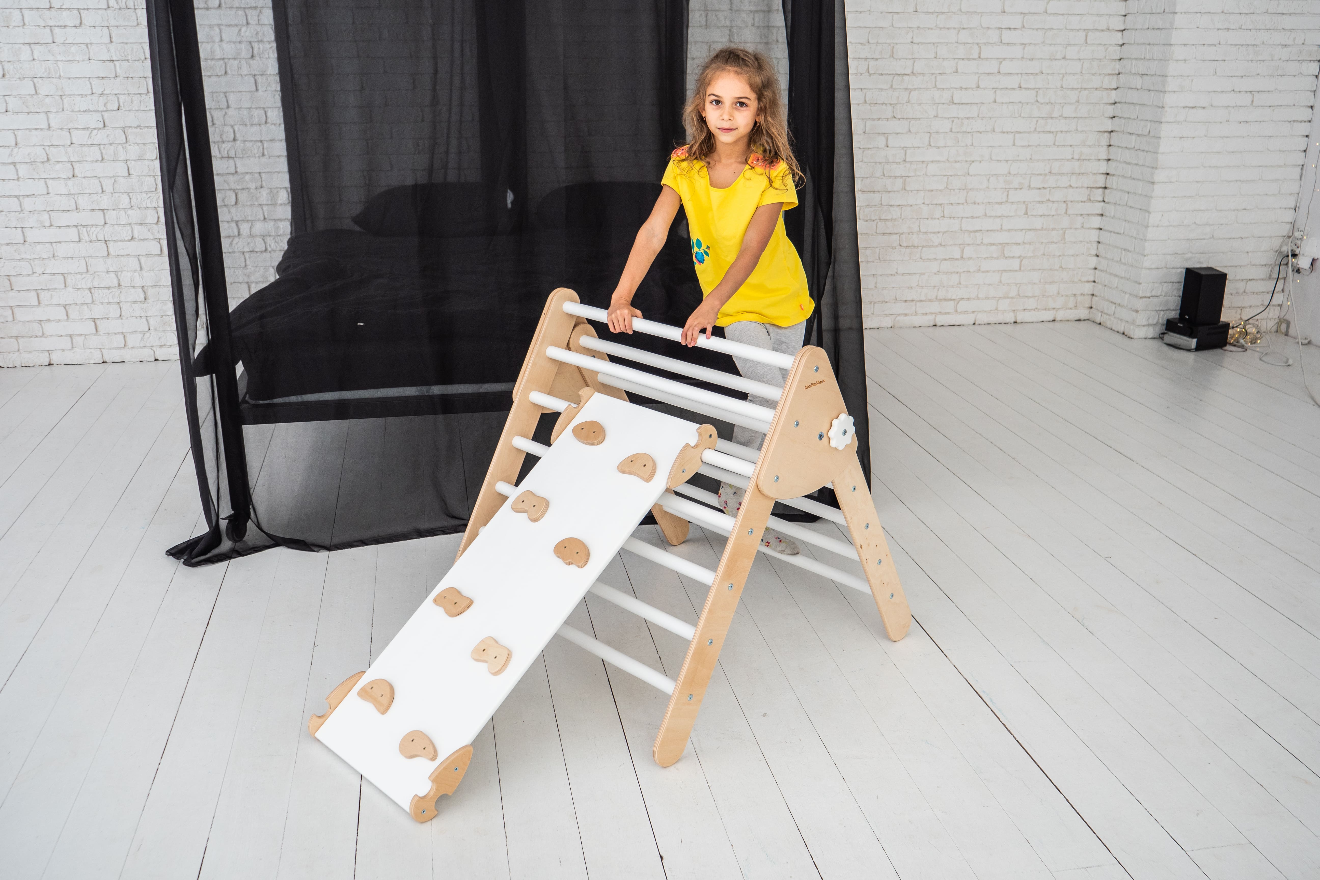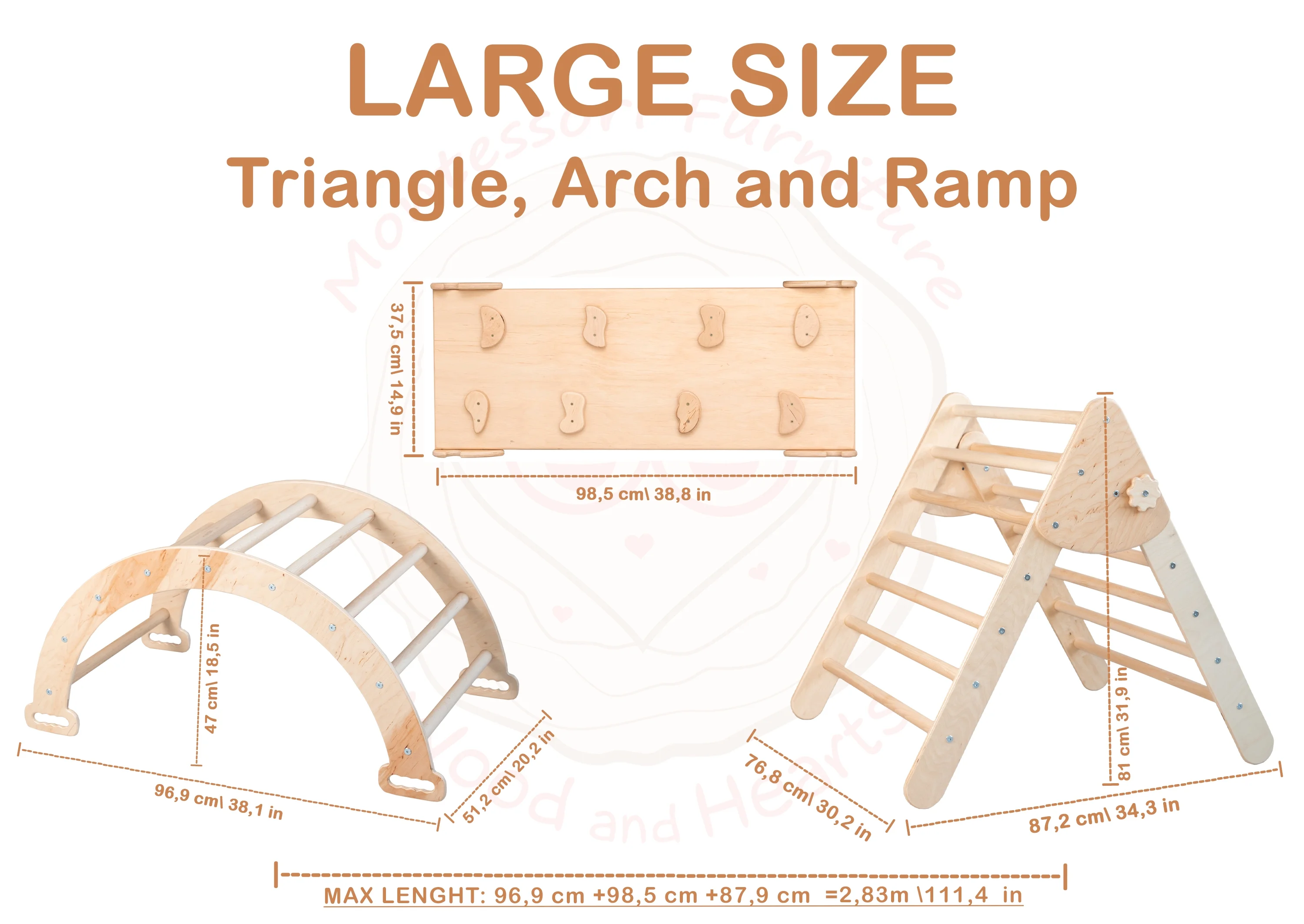 Woodandhearts Indoor Playground: Step Triangle & Ramp & Climbing Arch, Montessori Climbing Set , for Kids 2-6 years