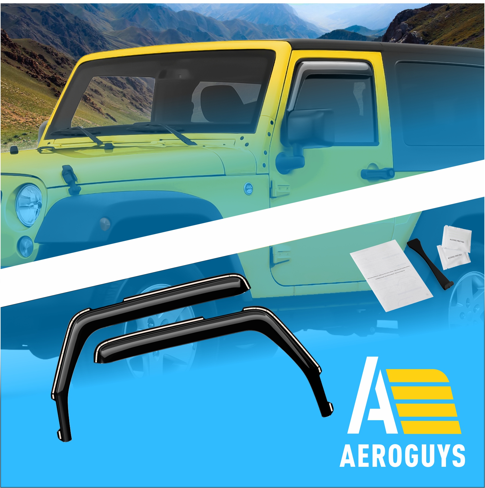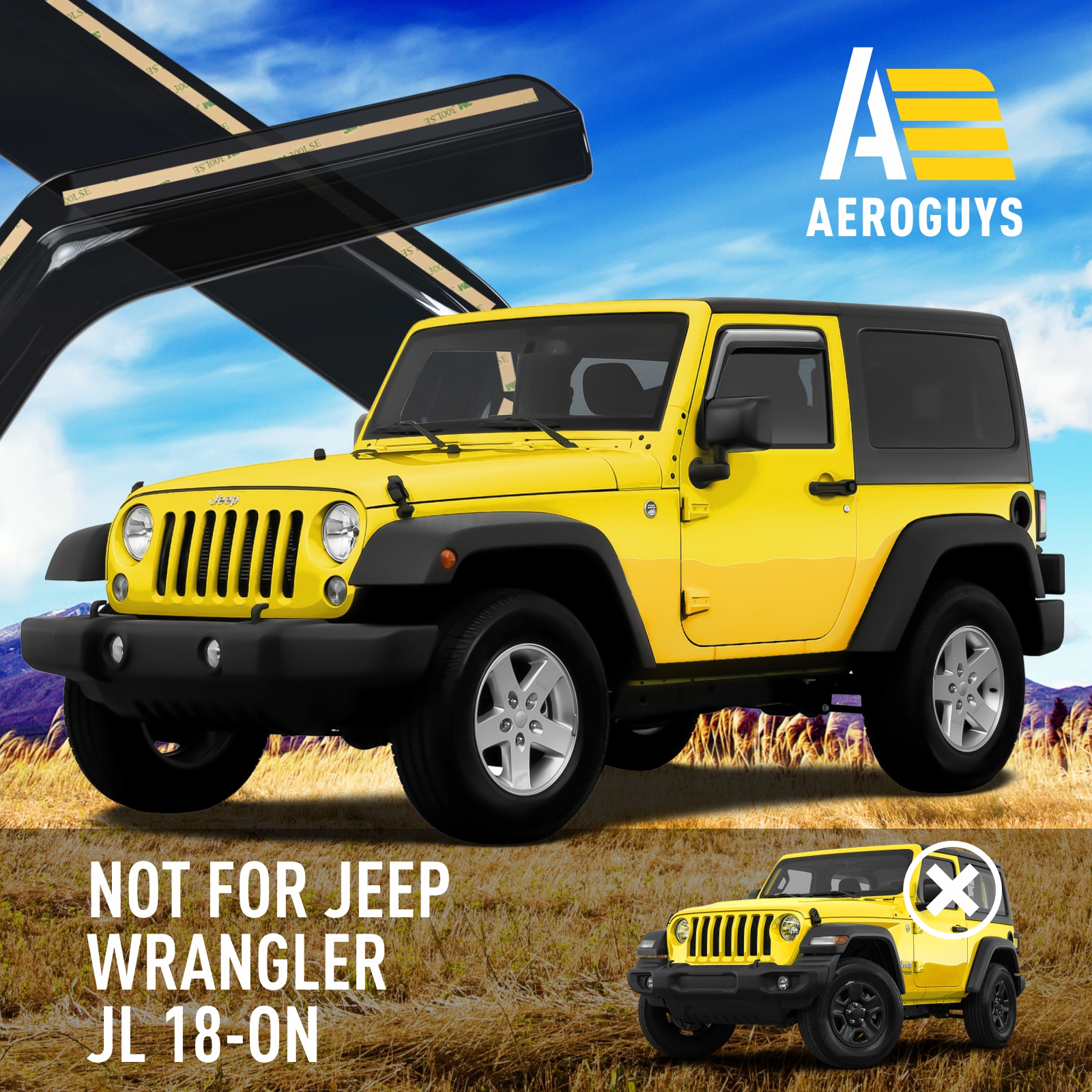 Dirtydog 2007-2018 Fits Jeep Wrangler JKU 4 Door and JK 2 Door Sun Screen Front Black J4SS07F1BK