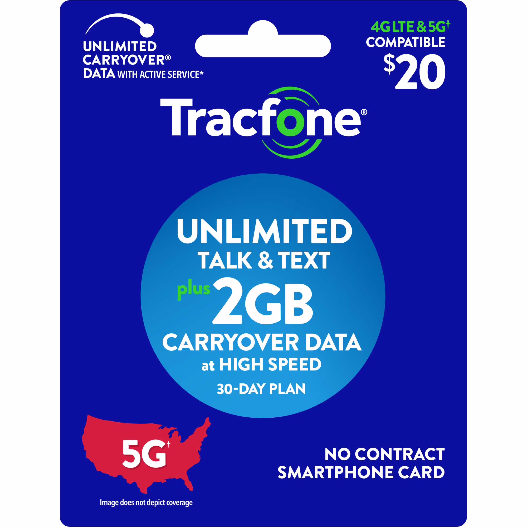 Tracfone $20 Smartphone Unlimited Talk & Text 30-Day Prepaid Plan (2GB at high speeds*) Direct Top Up