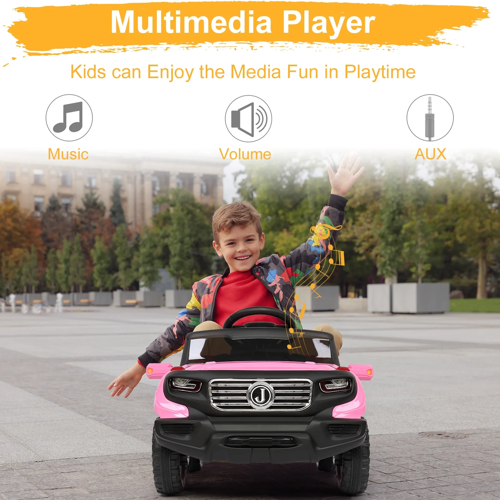 JOYMOR 6V Kids Ride on Car Electric Truck w/ Remote Control, Adjustable Speeds, LED, Horn (Pink)