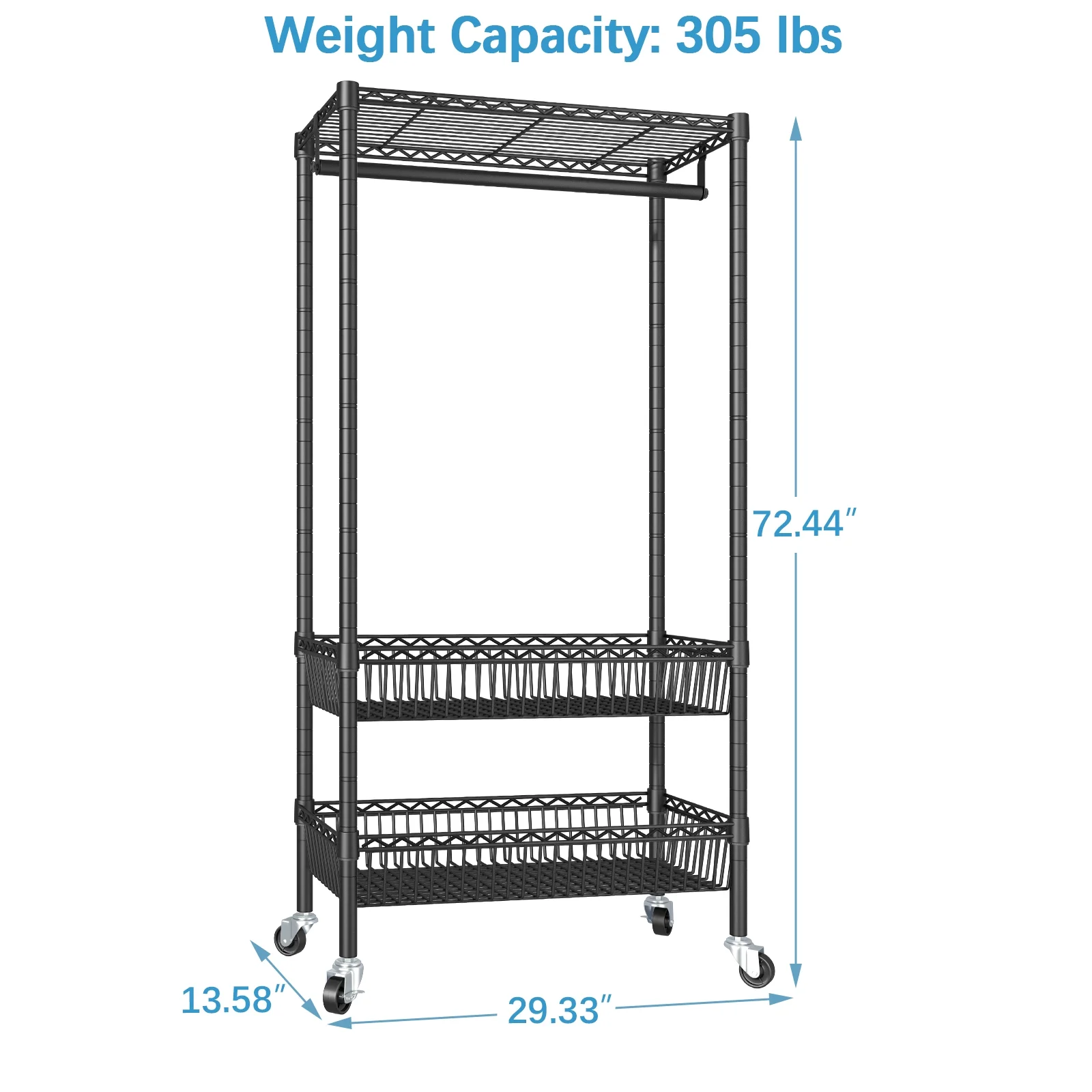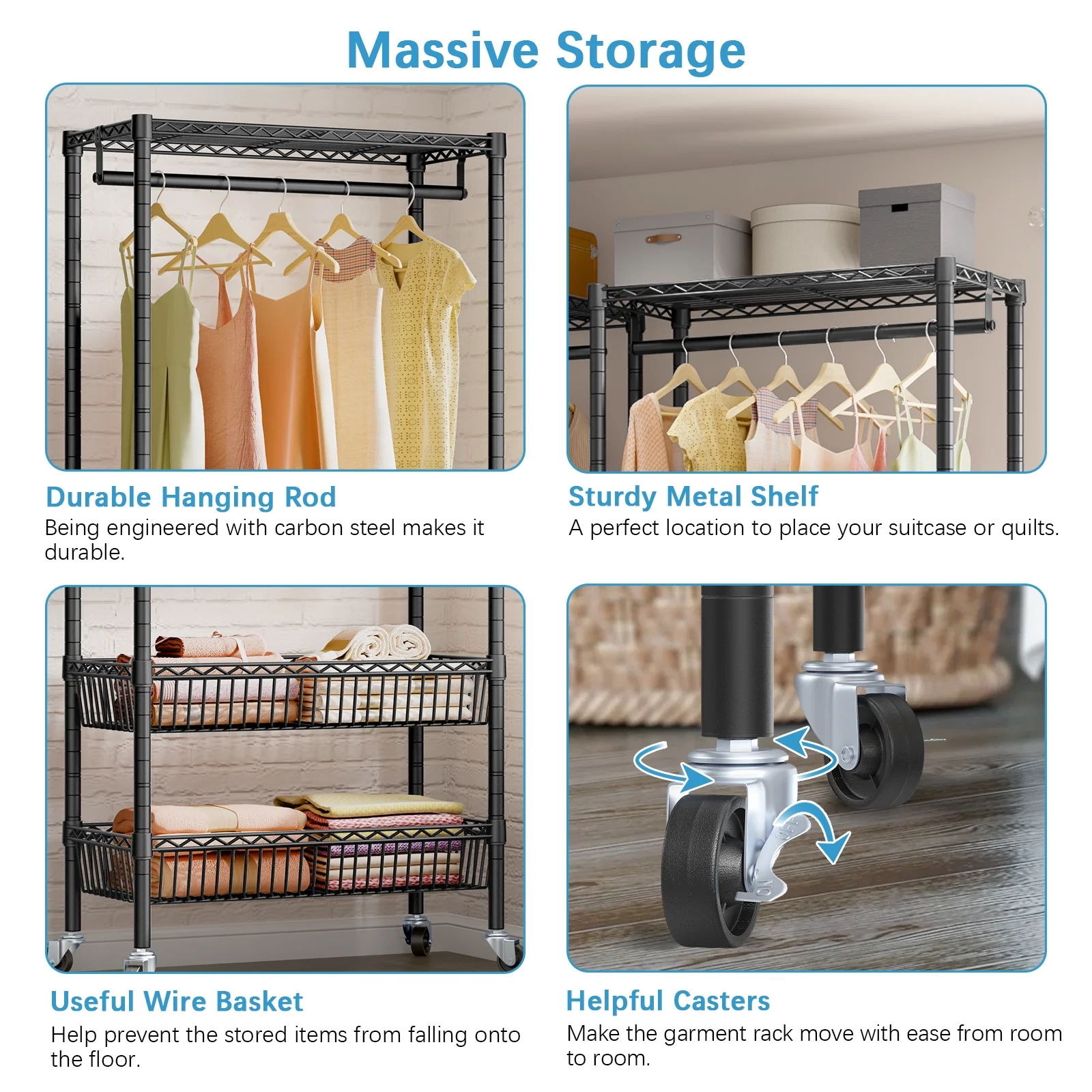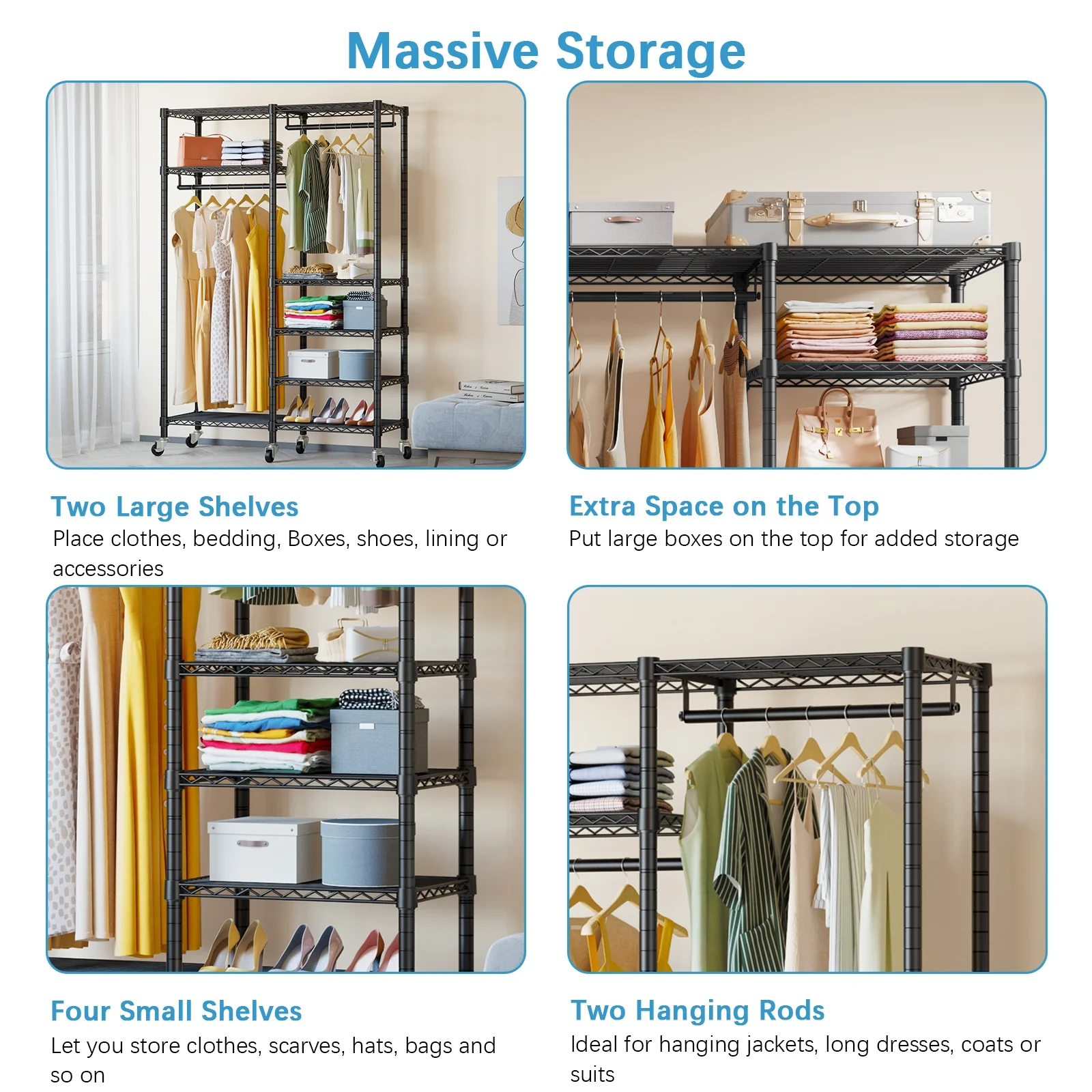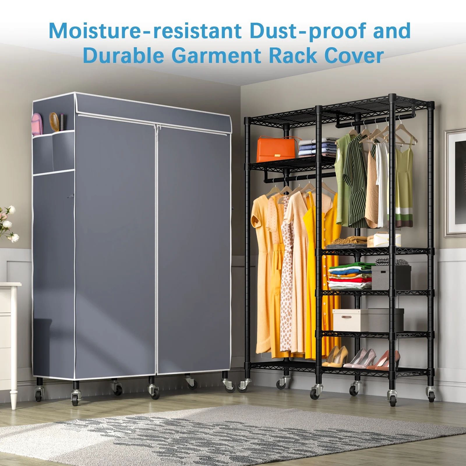 620lbs Heavy Duty Garment Rack 6 Tiers Black Metal Clothing Rack on Wheel with Grey Cover, R4C