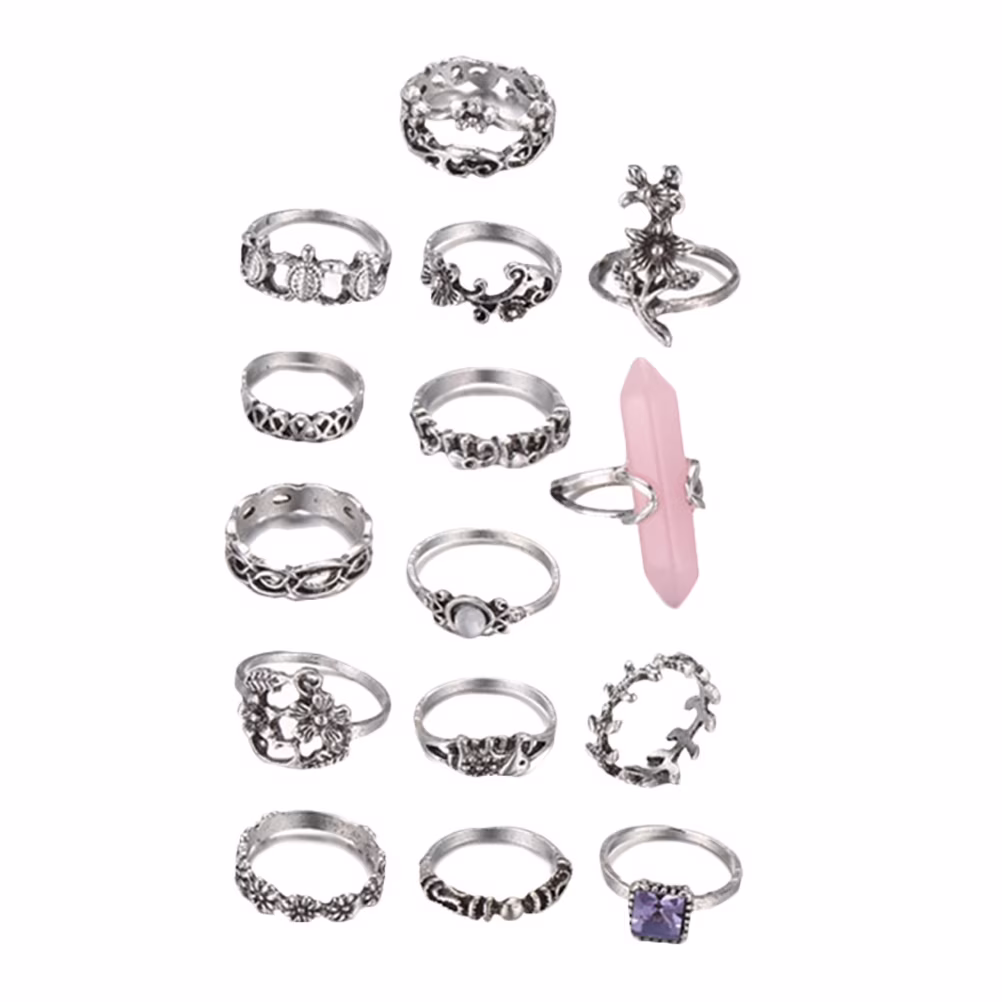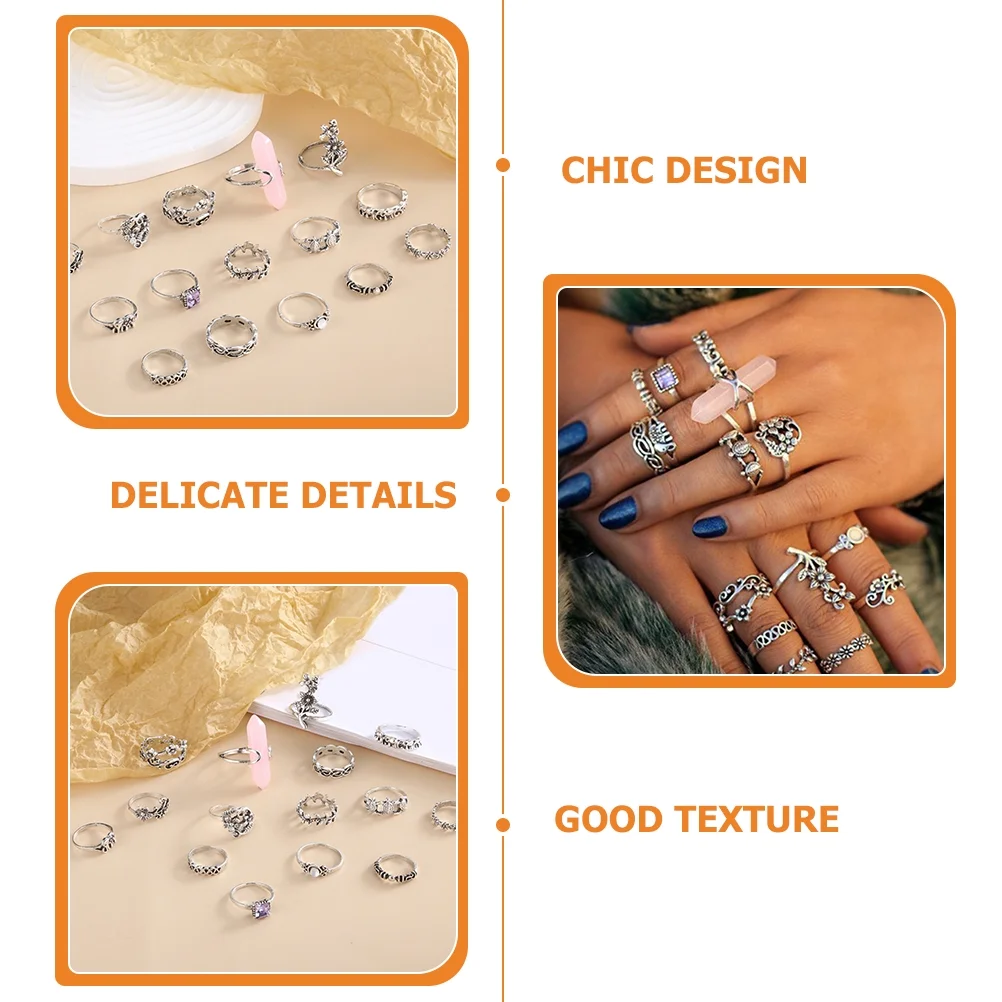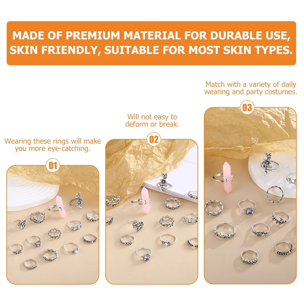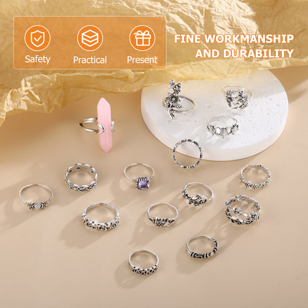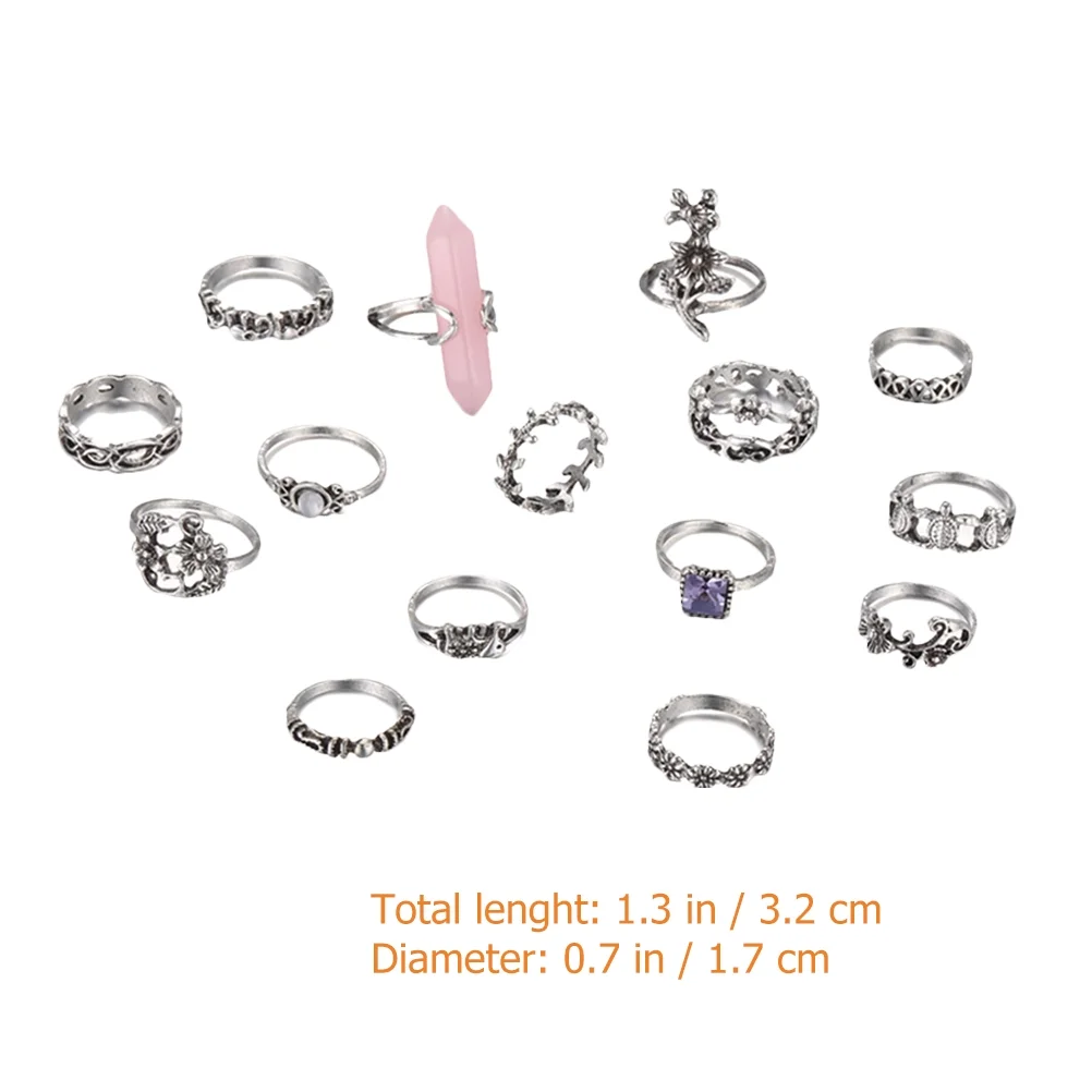 Gemstone Flower Ring 15 Pcs Knuckle Rings Valentines Plushie Plushies Beaded Alloy Miss