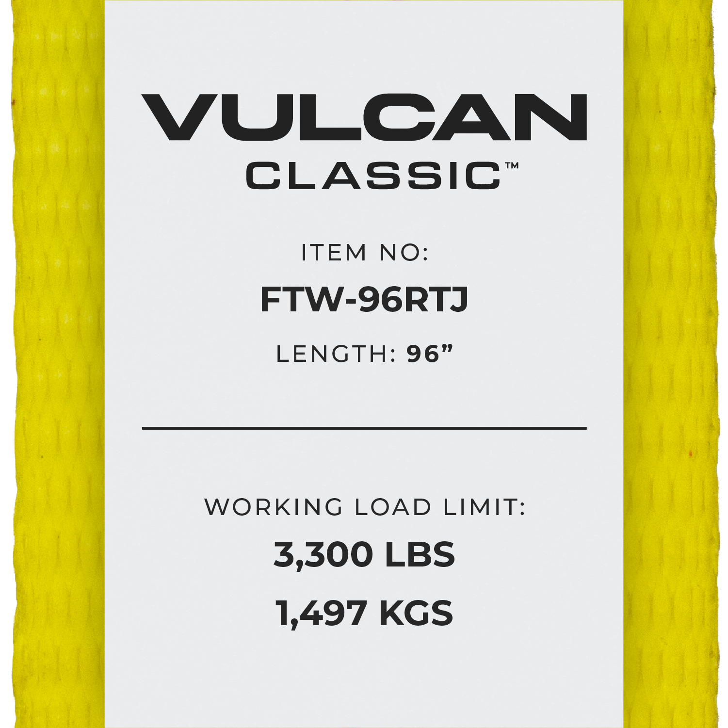 VULCAN Car Tie Down Replacement Strap - RTJ Hooks - 96 inch - 4 Pack - 3300 Lbs SWL