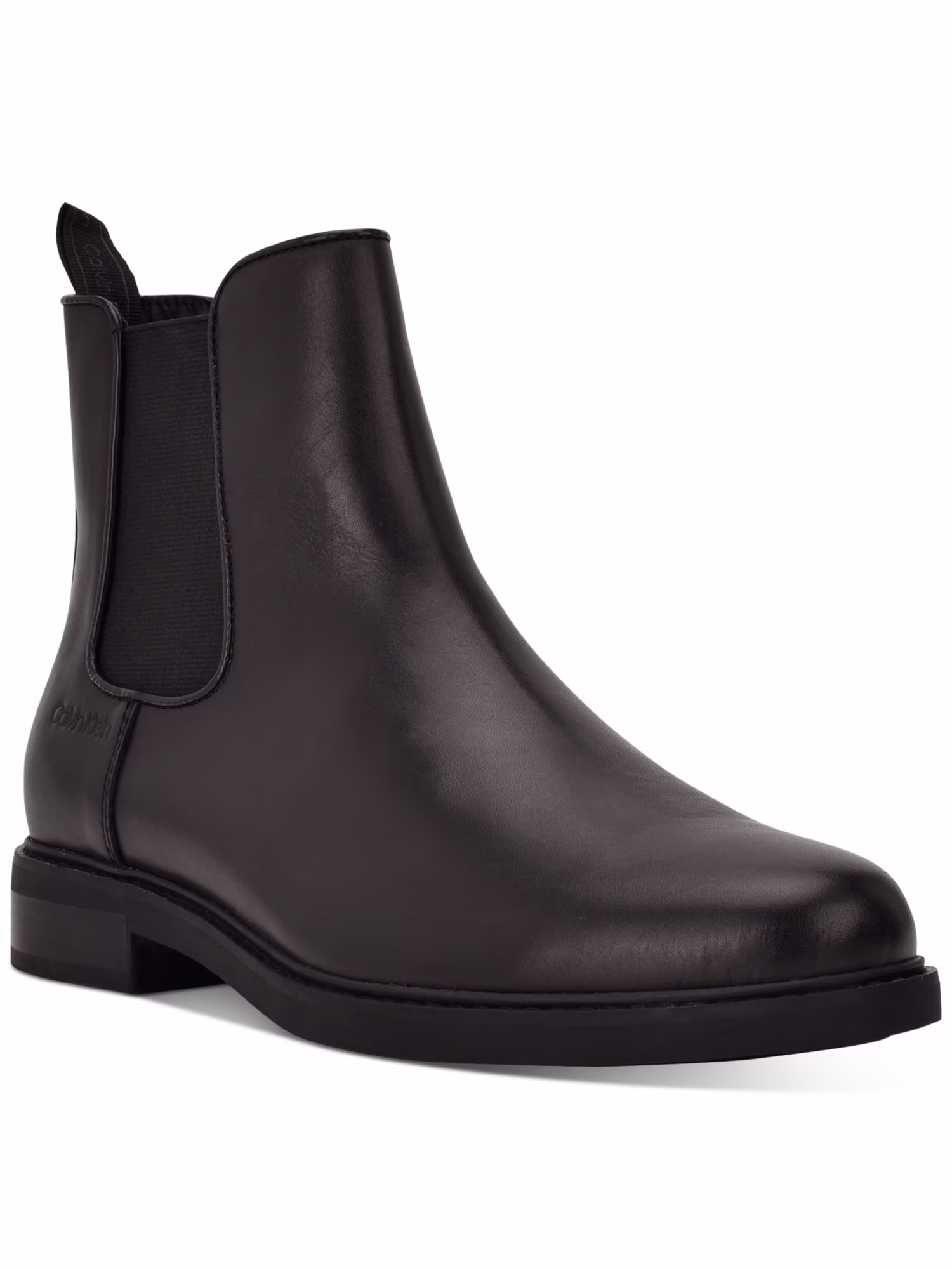CALVIN KLEIN Mens Black Pull Tab Goring Cushioned Fenwick Round Toe Block Heel Leather Chelsea 13