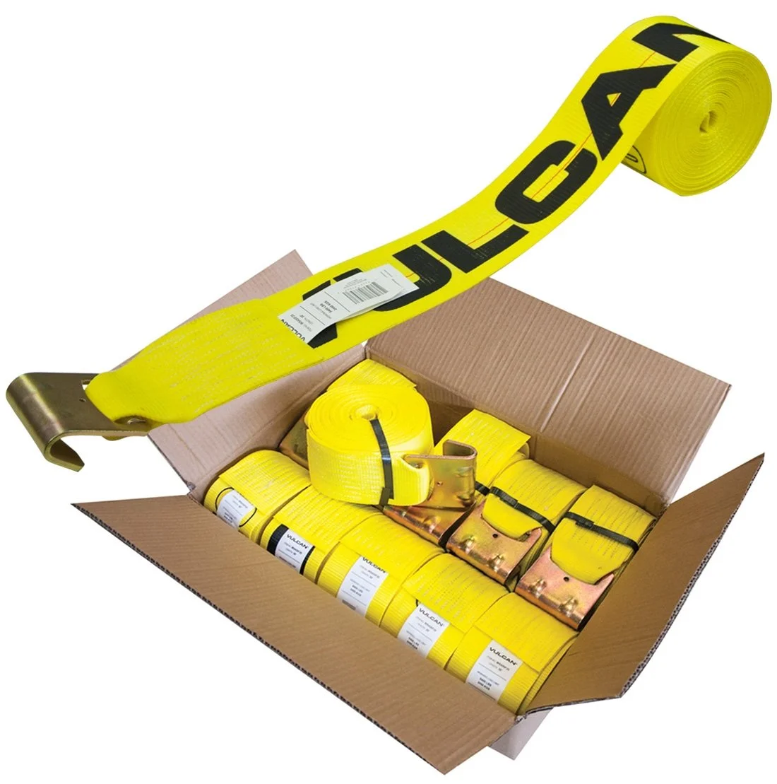 VULCAN Flat Hook Winch Strap Kit - 4 Inch x 30 Foot - Classic Yellow - 5,000 Pound Safe Working Load