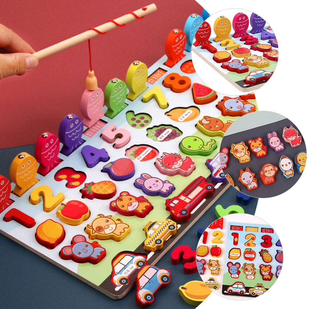 Magnetic Fishing Toys Children’s Toys Cartoon Fishing Toys Kid Gifts Wooden Fishing Toys Building Block Toy Parent-child