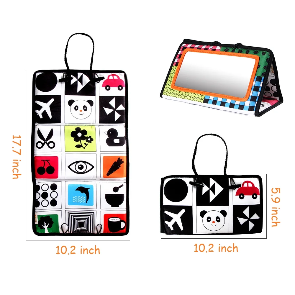 EASTIN Tummy Time Floor Mirror, Developmental Baby Mirror Tummy Time Toys Activity Double High Contrast Baby Toy Black and White Infant Toys for Babies Newborn Infants Toddler Boys and Girls