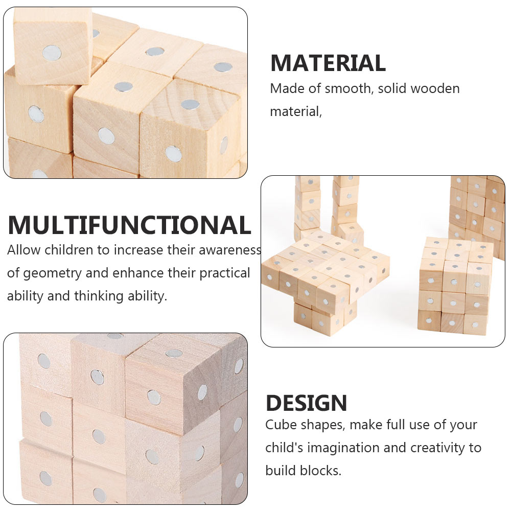 5 Pcs Magnetic Cube Building Blocks Toy Intelligence Children Unfinished Craft Wood Early Education