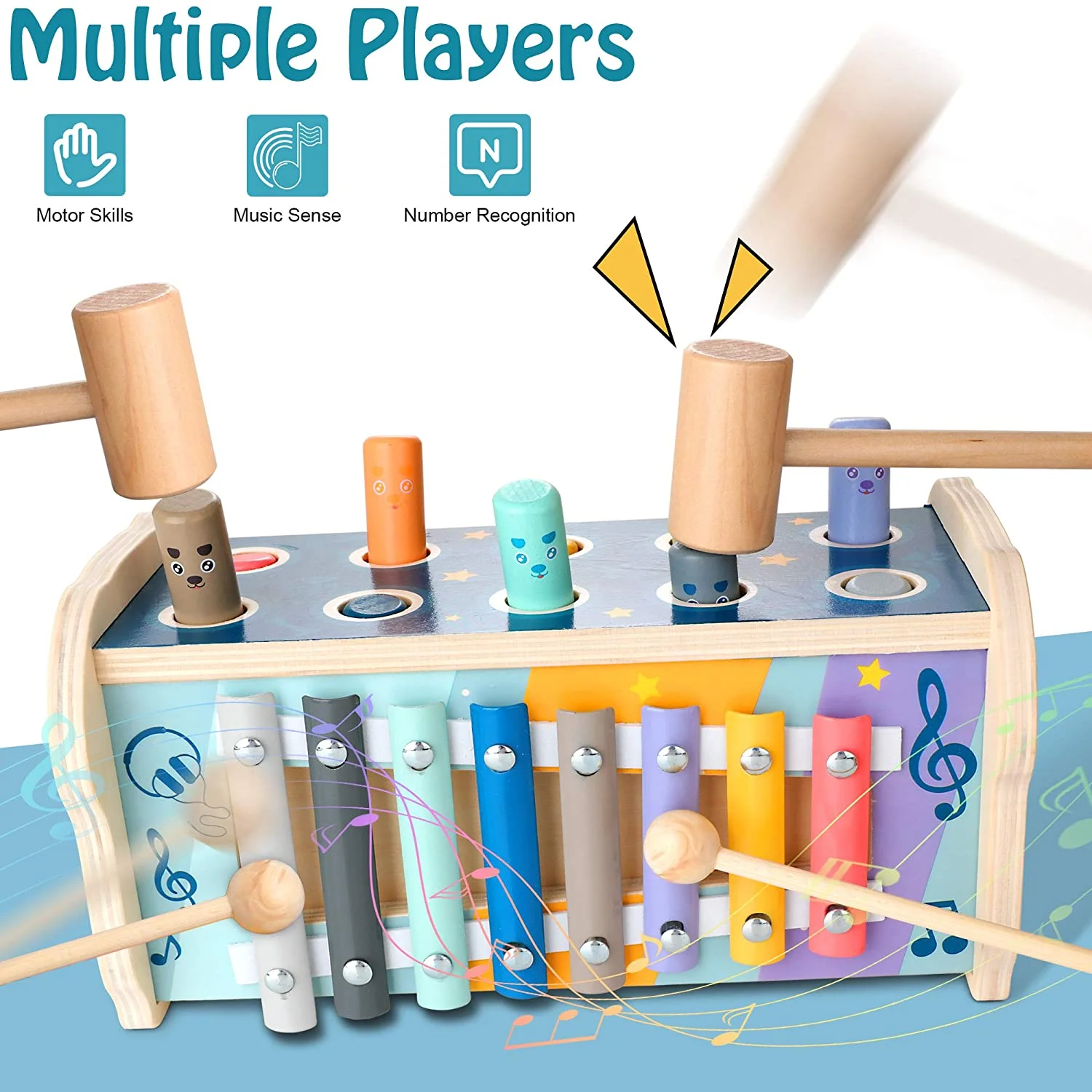 Lavinya Montessori Wooden Hammering Pounding Toy for 12+ Months Kids, Baby Early Development Toy with Pounding Bench, Xylophone, Number Sorting Maze, Birthday Gifts for 1 2 3 Year Old Toddlers