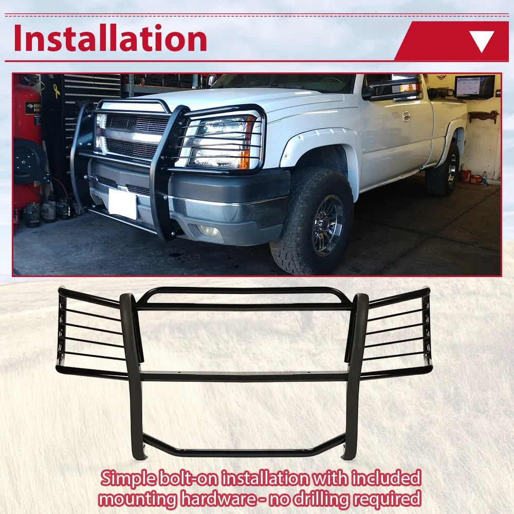 Kojem Front Bumper Brush Grill Guard for 02 03 04 05 06 Chevy Avalanche Tahoe Suburban 1500 with Body Cladding