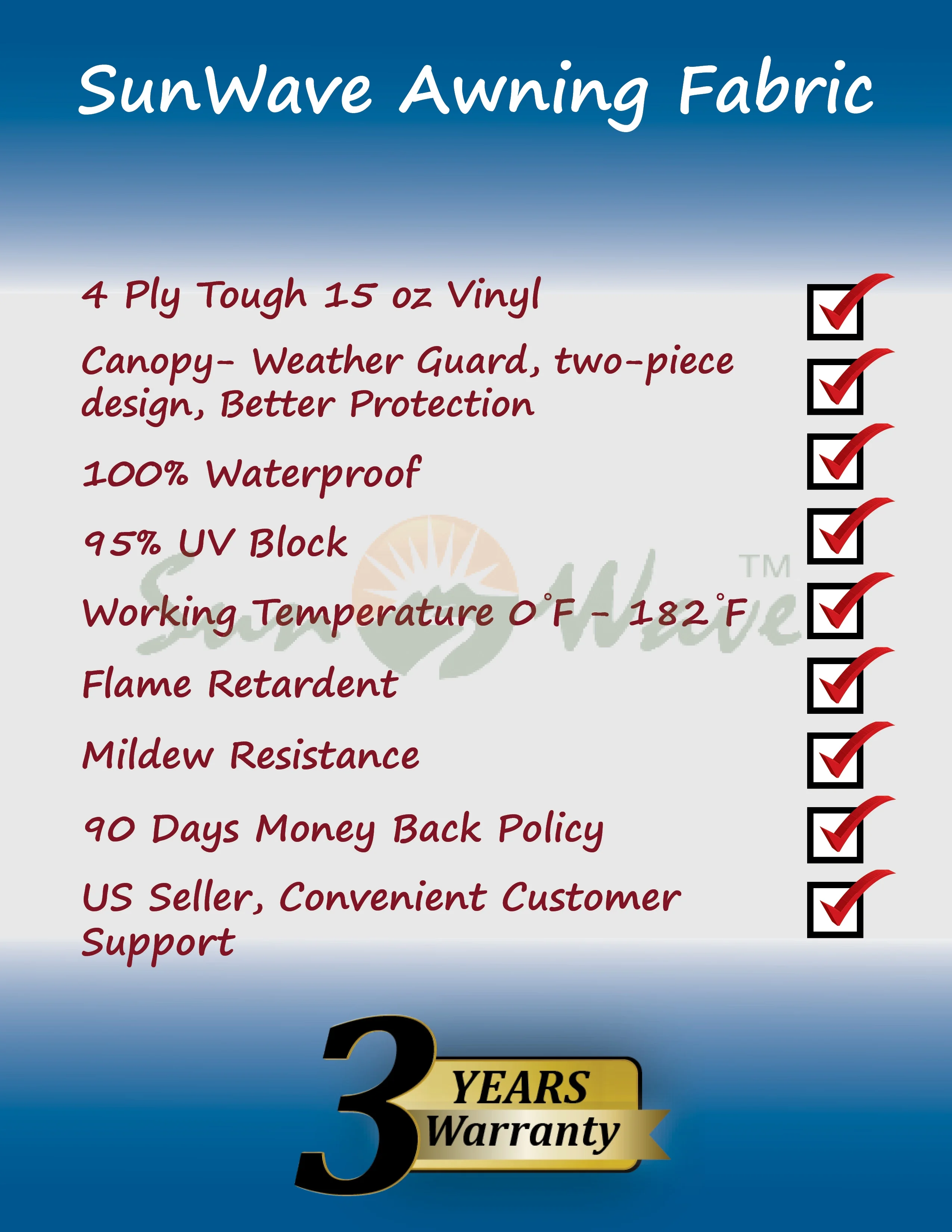 Sun-Wave RV Awning Replacement Fabric - 12' (Approx Width 11'2") Checkered Pattern