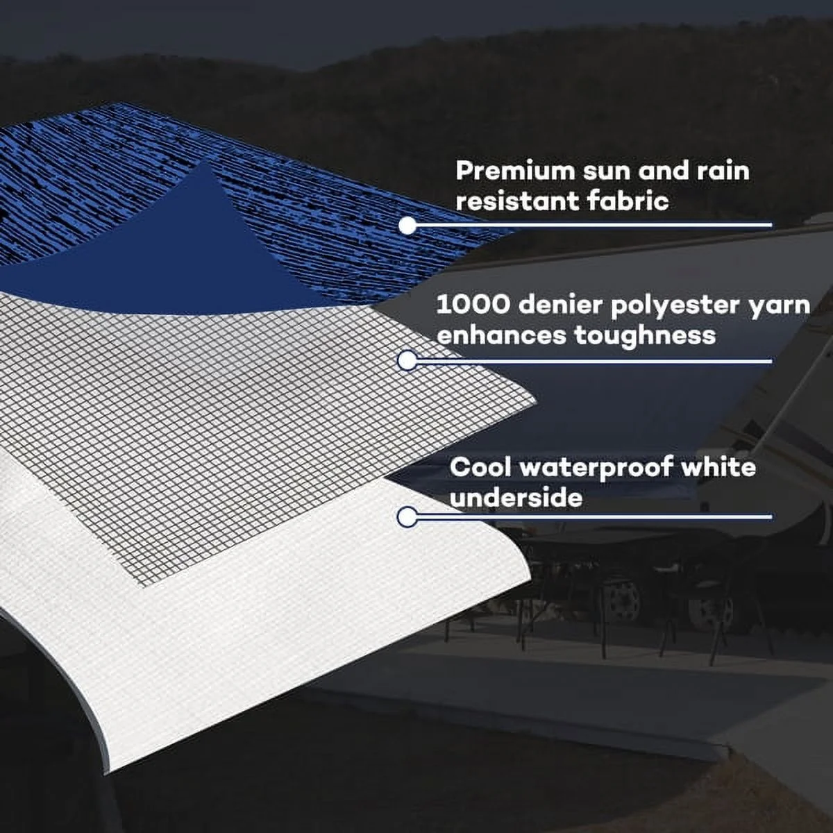 Capri Heavy Duty RV Awning Fabric Replacement 17' (Fabric 16' 2"), Blue