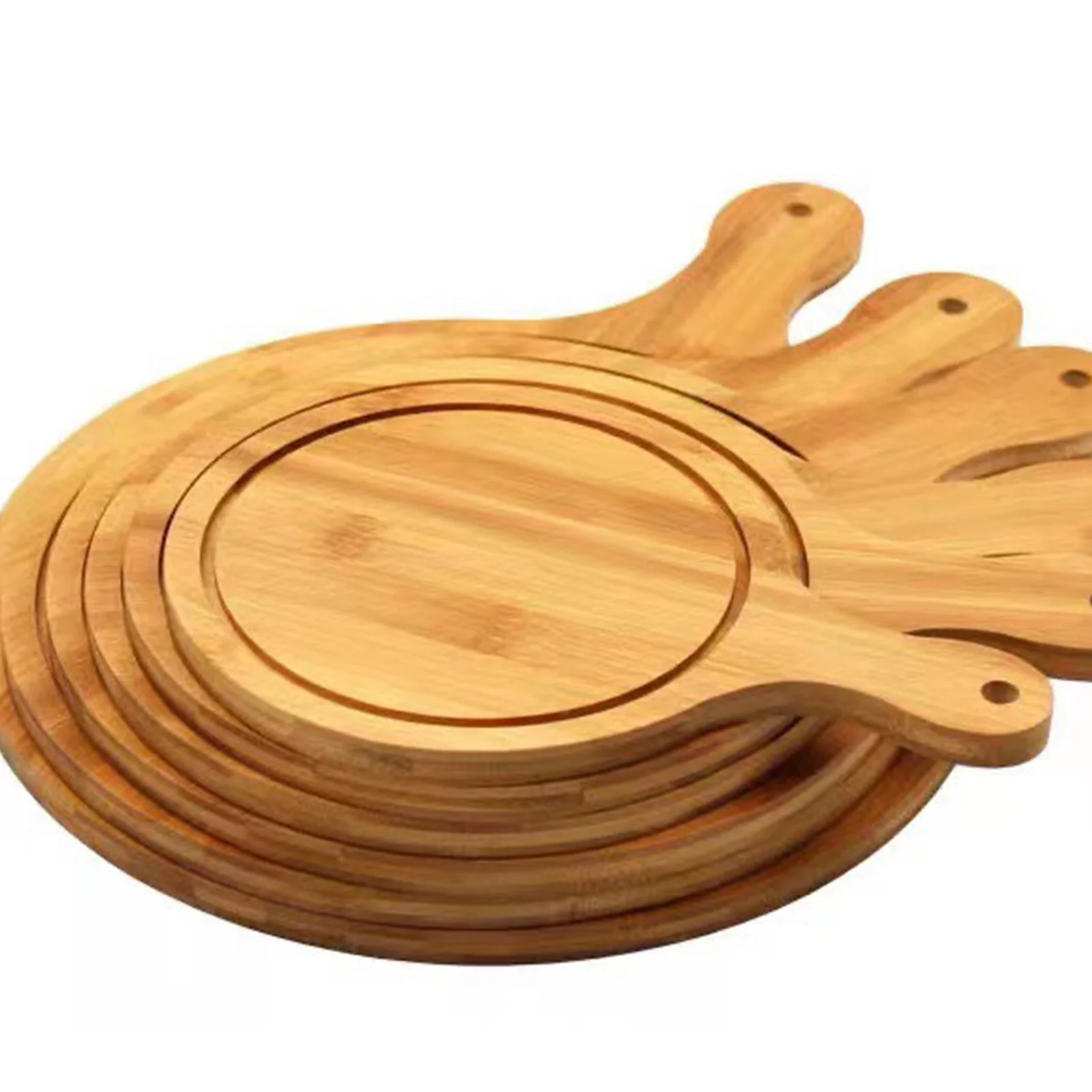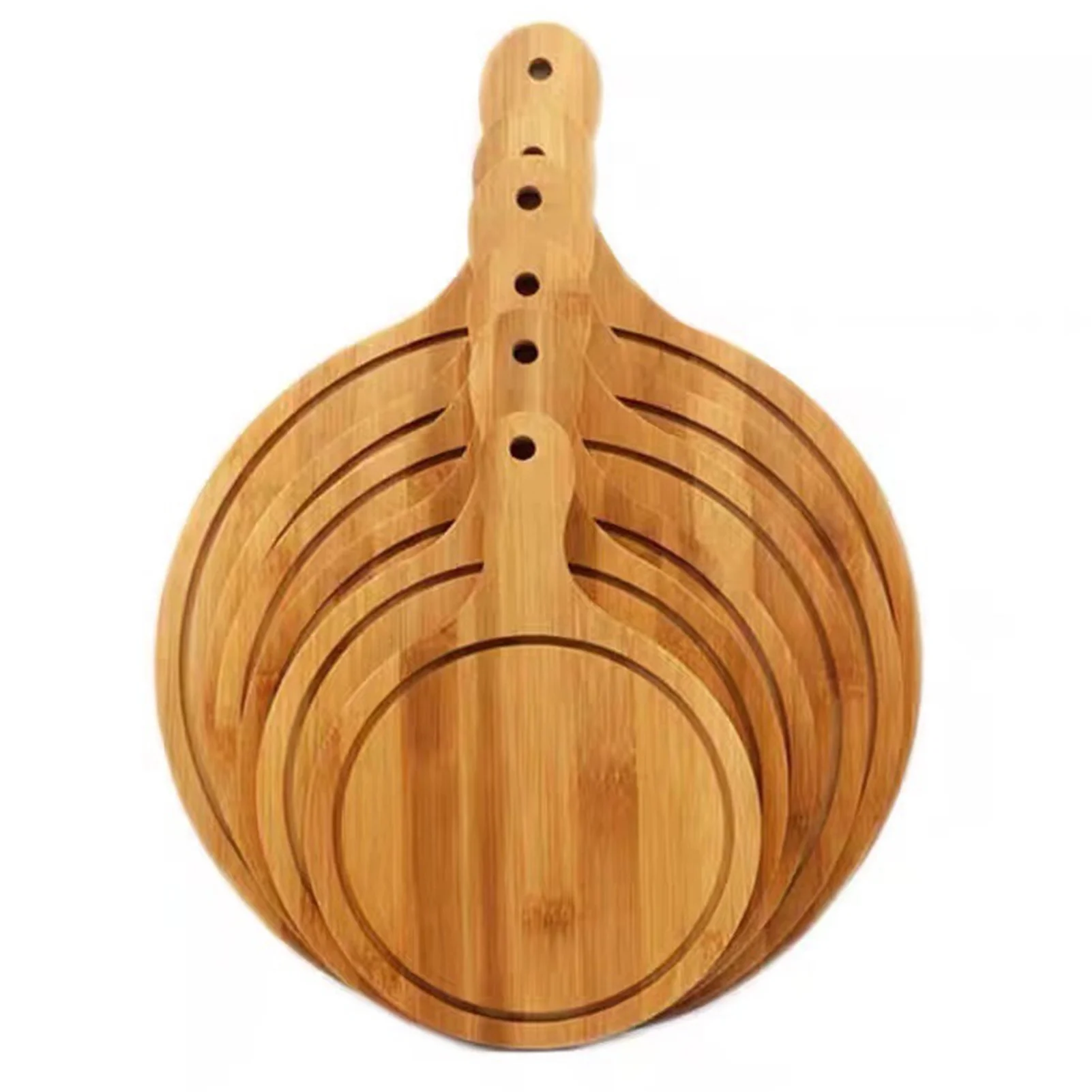 KABOER Round Bamboo Wooden Pizza Paddle Cutting Board Cheese Serving Tray Plate Pizza Board