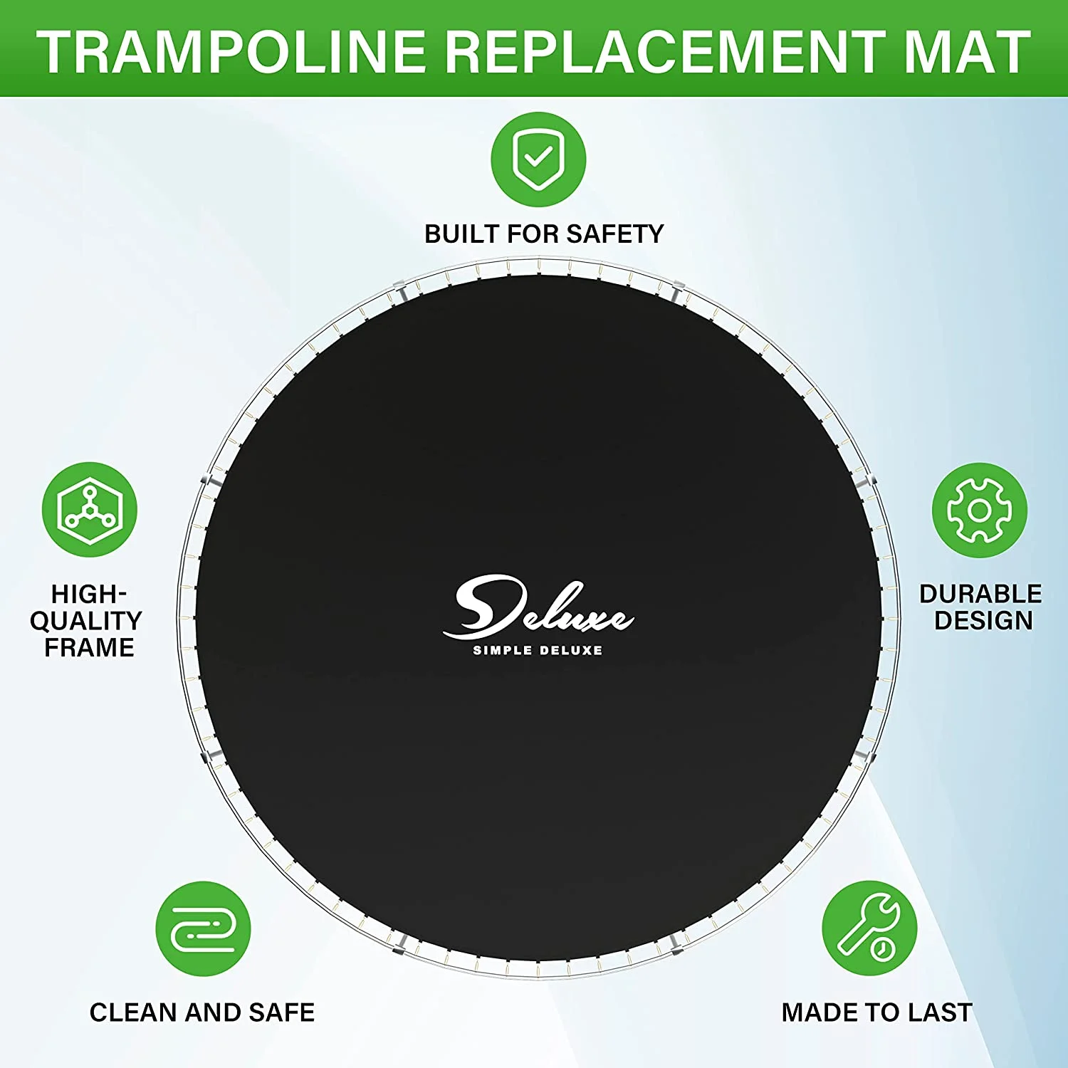Simple Deluxe Replacement Trampoline Mat Round Universal Spring Mats, Waterproof Jumping Pad, Black