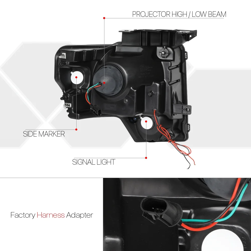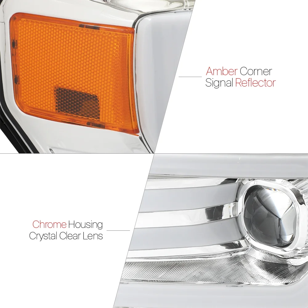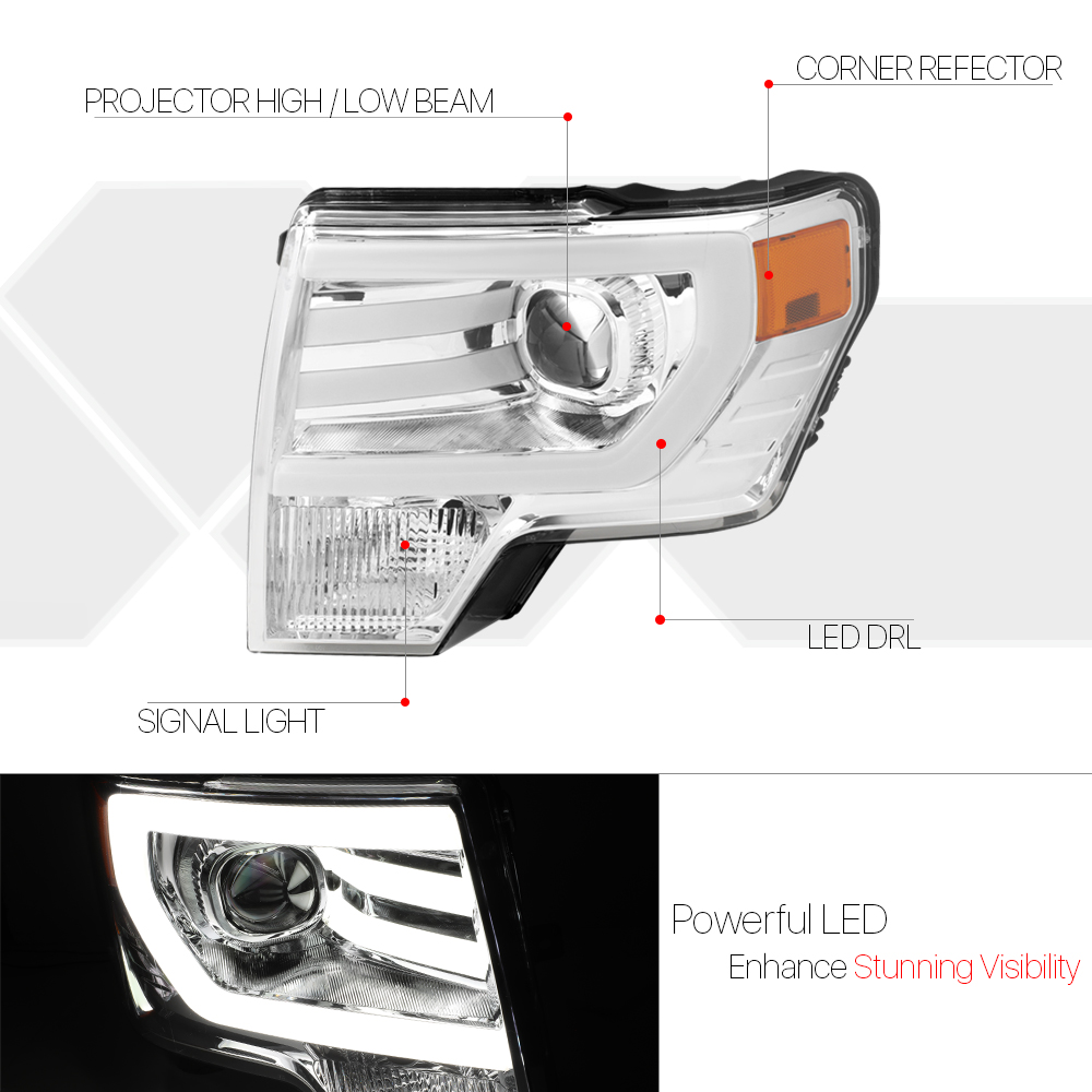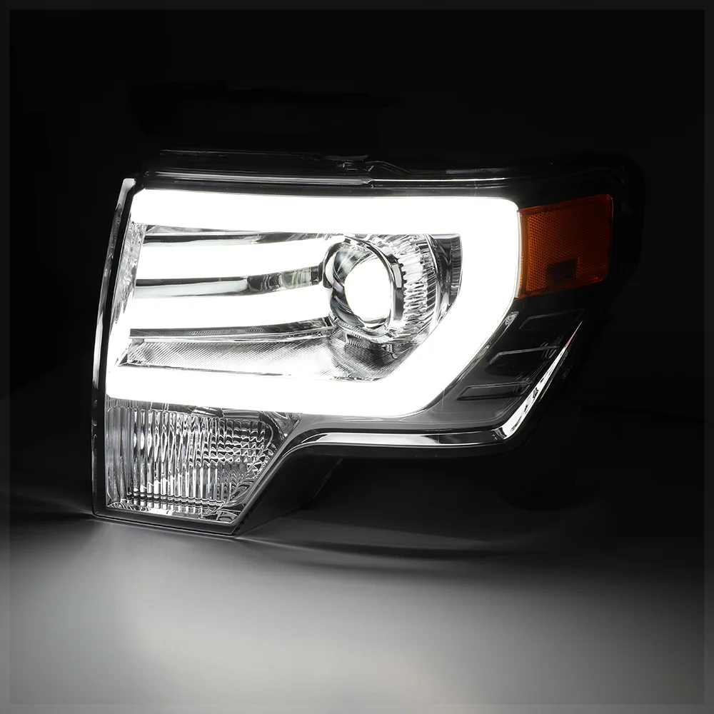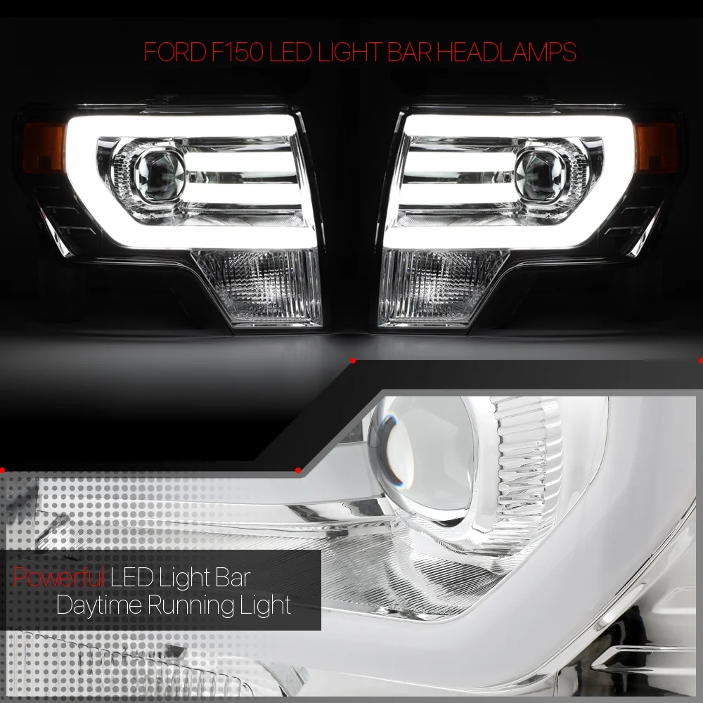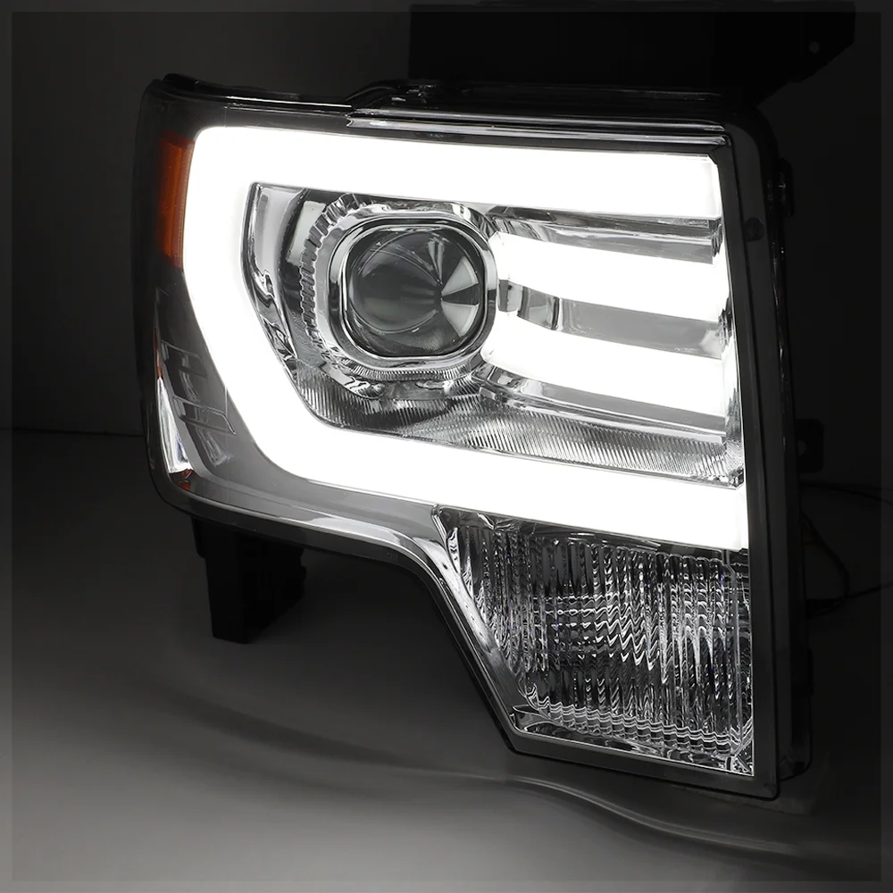 Chrome *LED LIGHT BAR DRL* Projector Headlight Amber Signal for 09-14 Ford F150 10 11 12 13