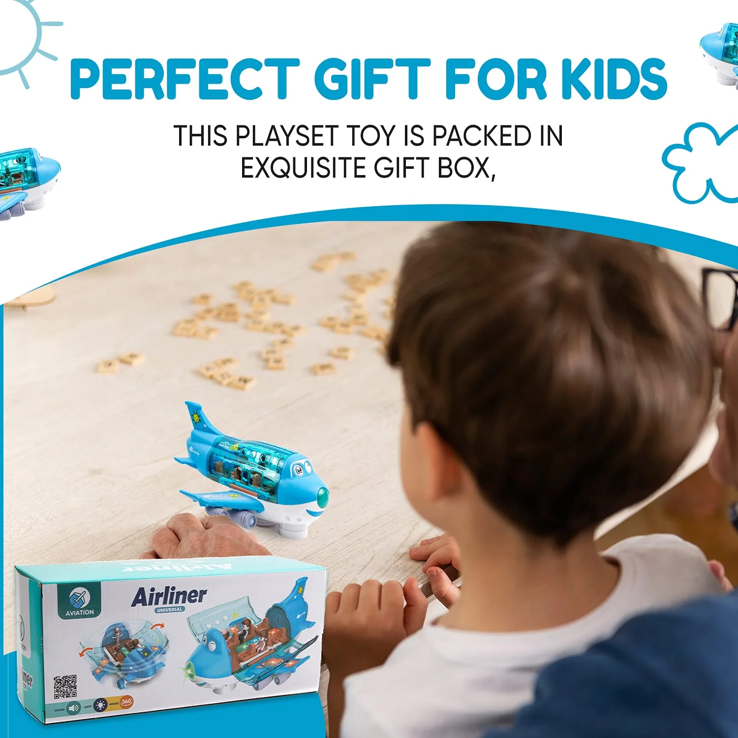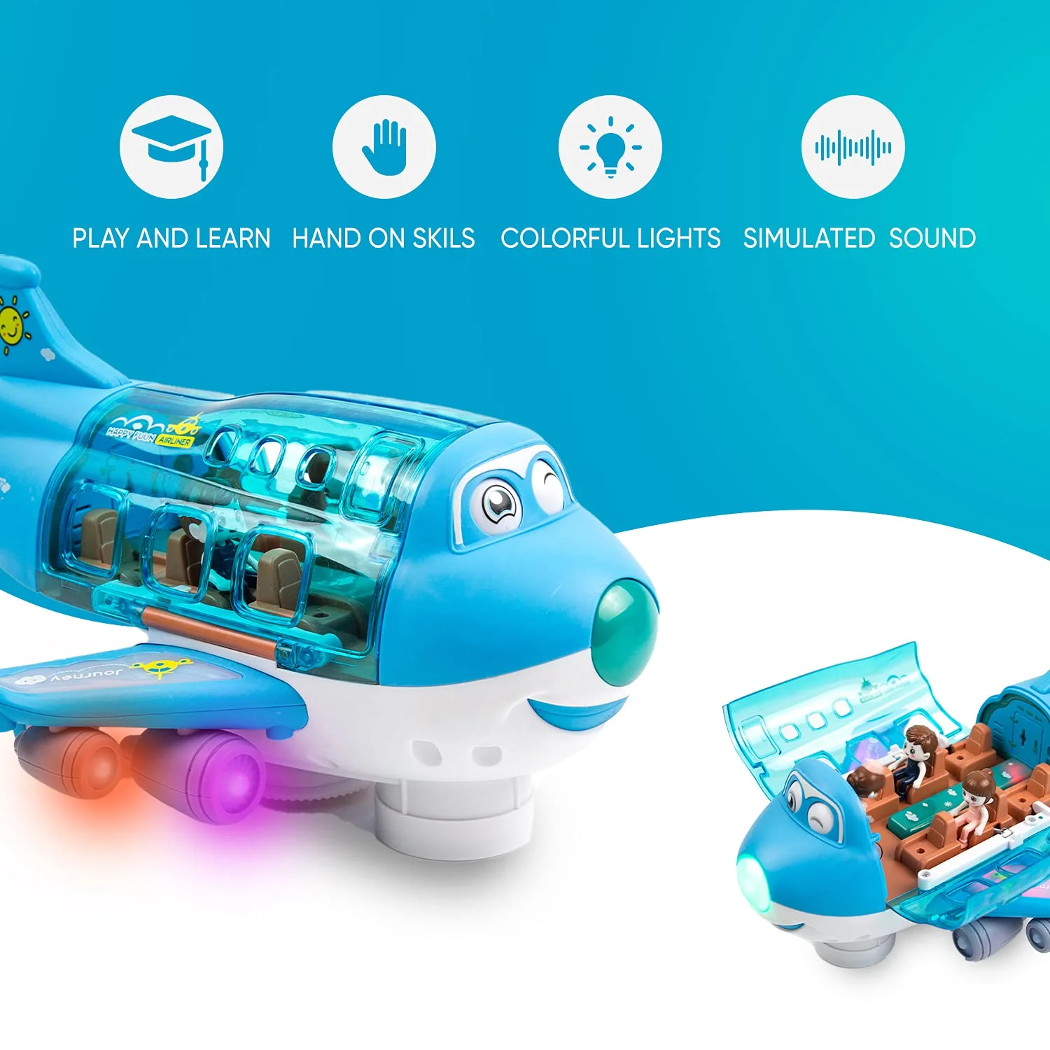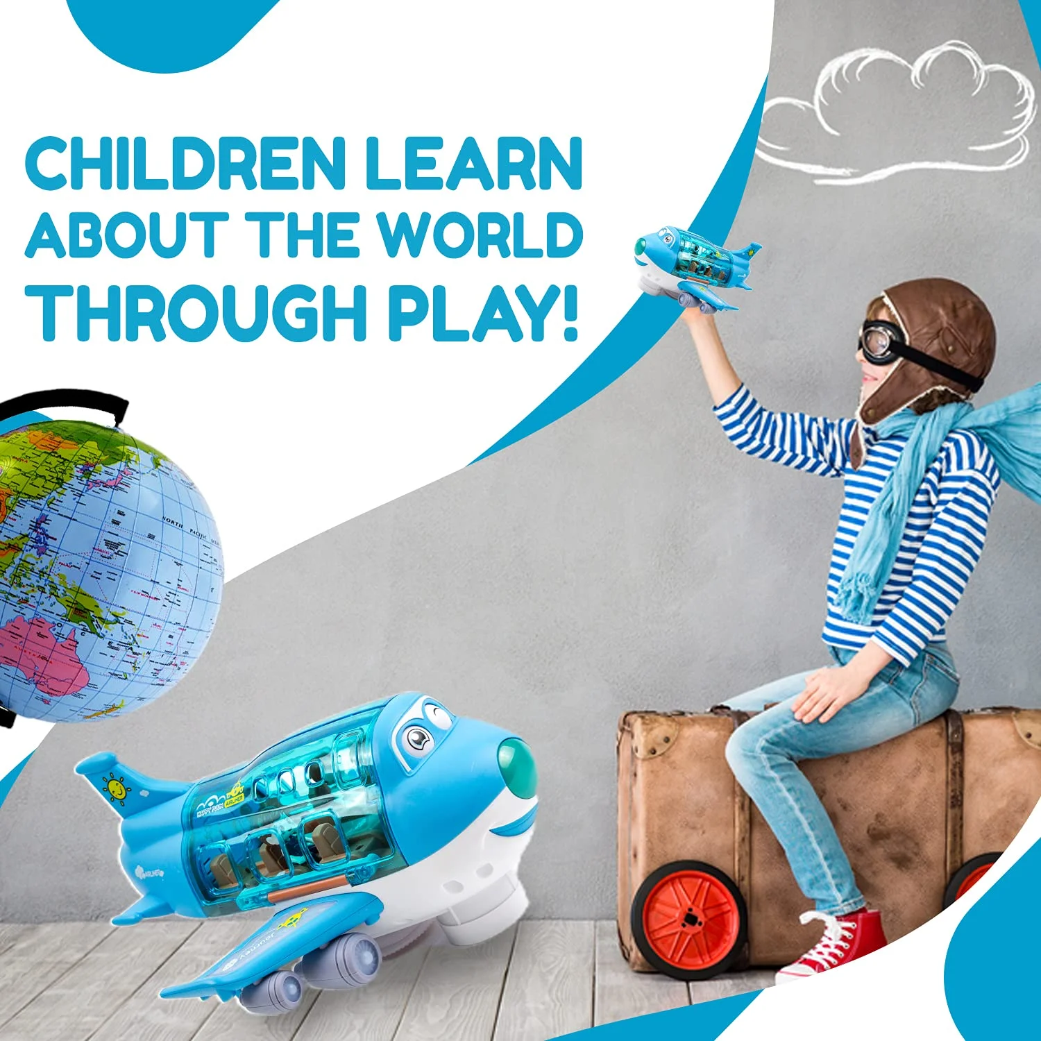 Airplane Toys for Kids, Bump and Go Action, Toddler Toy Plane with LED Flashing Lights and Sounds for Boys & Girls 3 -12 Years Old