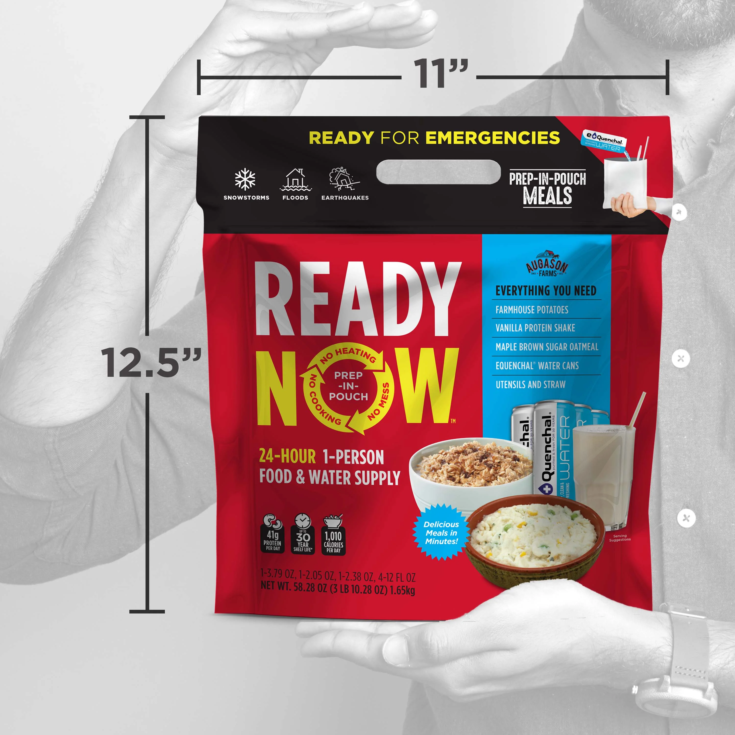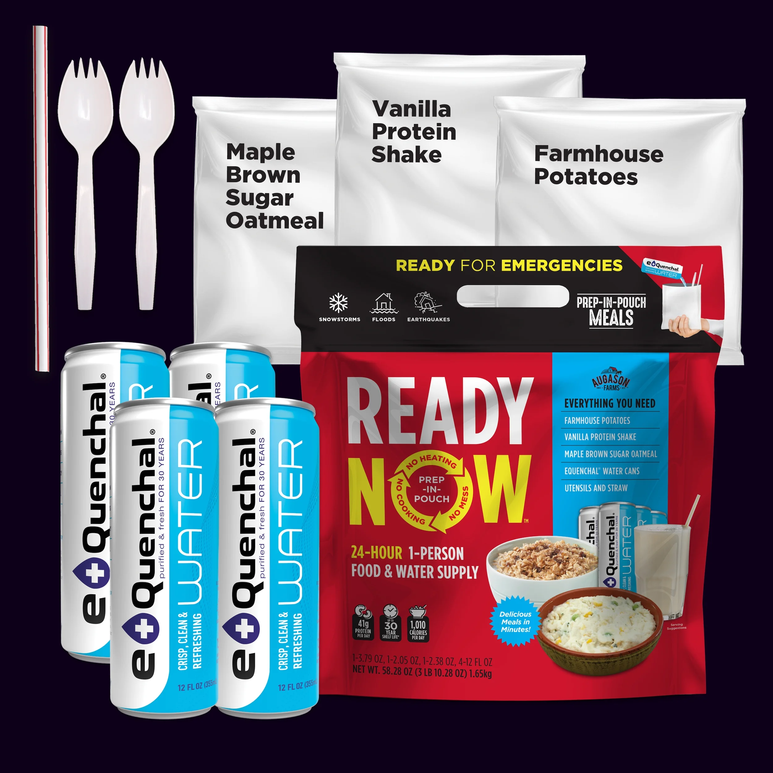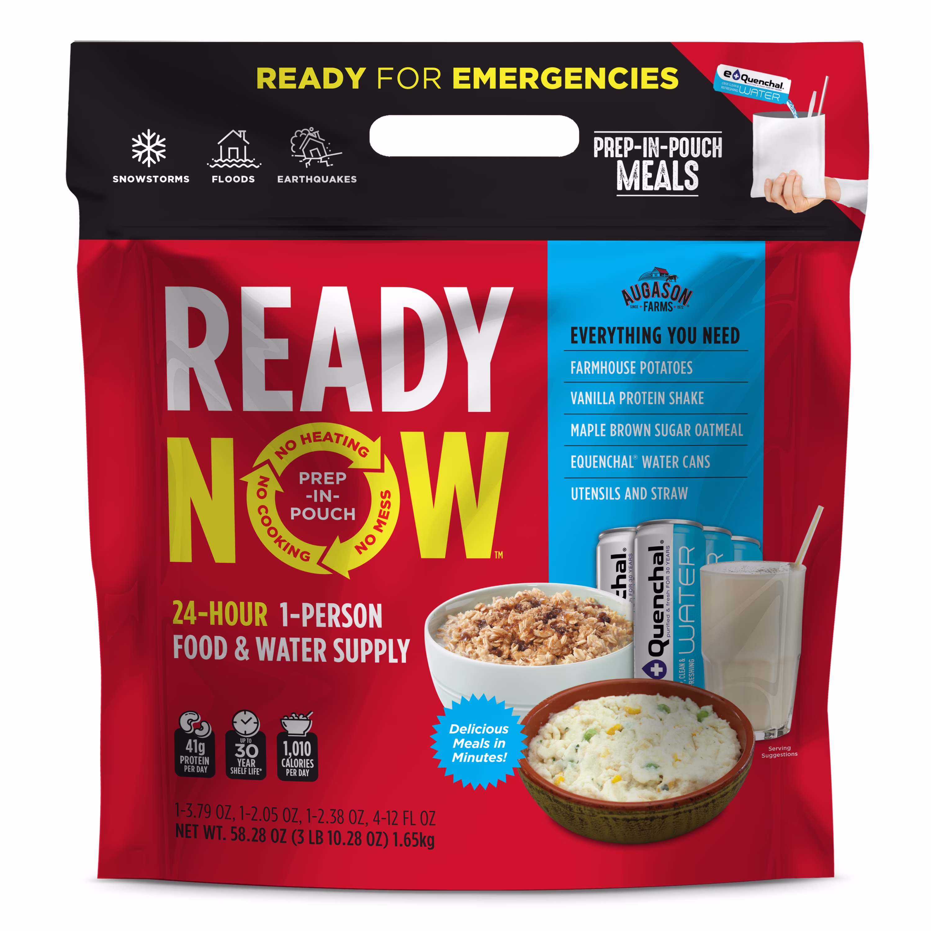 Augason Farms READY NOW Freeze-Dried 24-Hour 1-Person Emergency Food & Water Supply