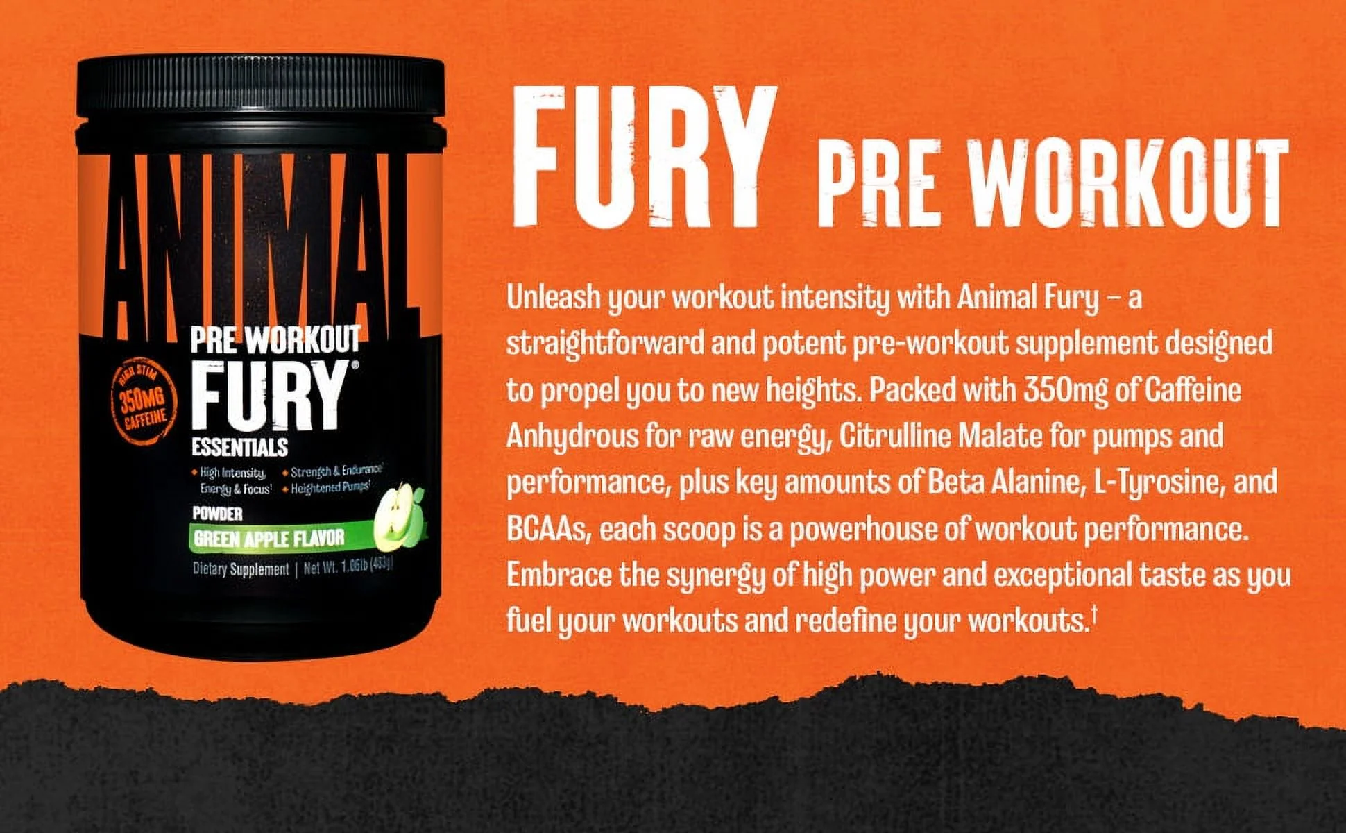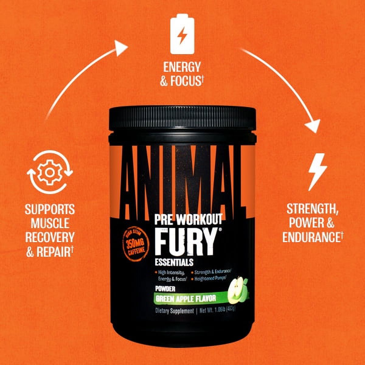 Animal Fury, Pre Workout Powder Supplement for Energy and Focus, Green Apple, 30 Servings