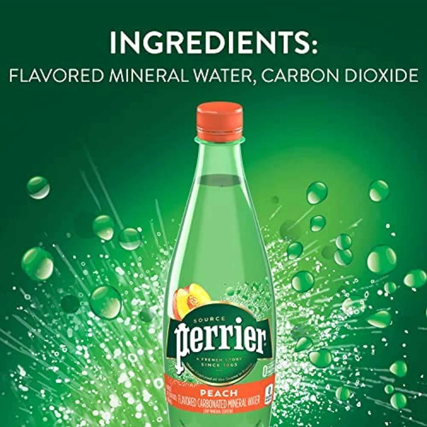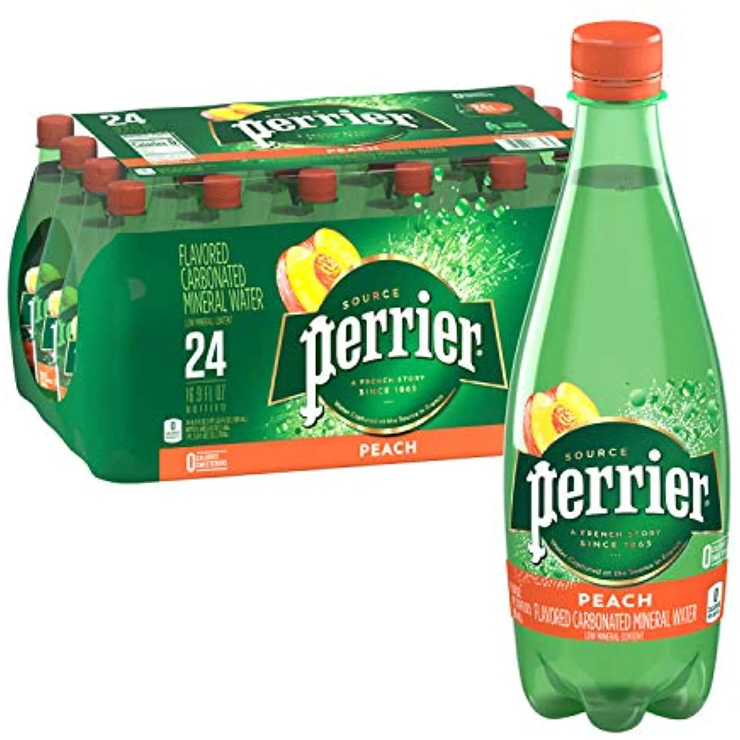 Perrier Flavored Carbonated Mineral Water Plastic Bottles, Peach, 16.9 Fl Oz (Pack Of 24)