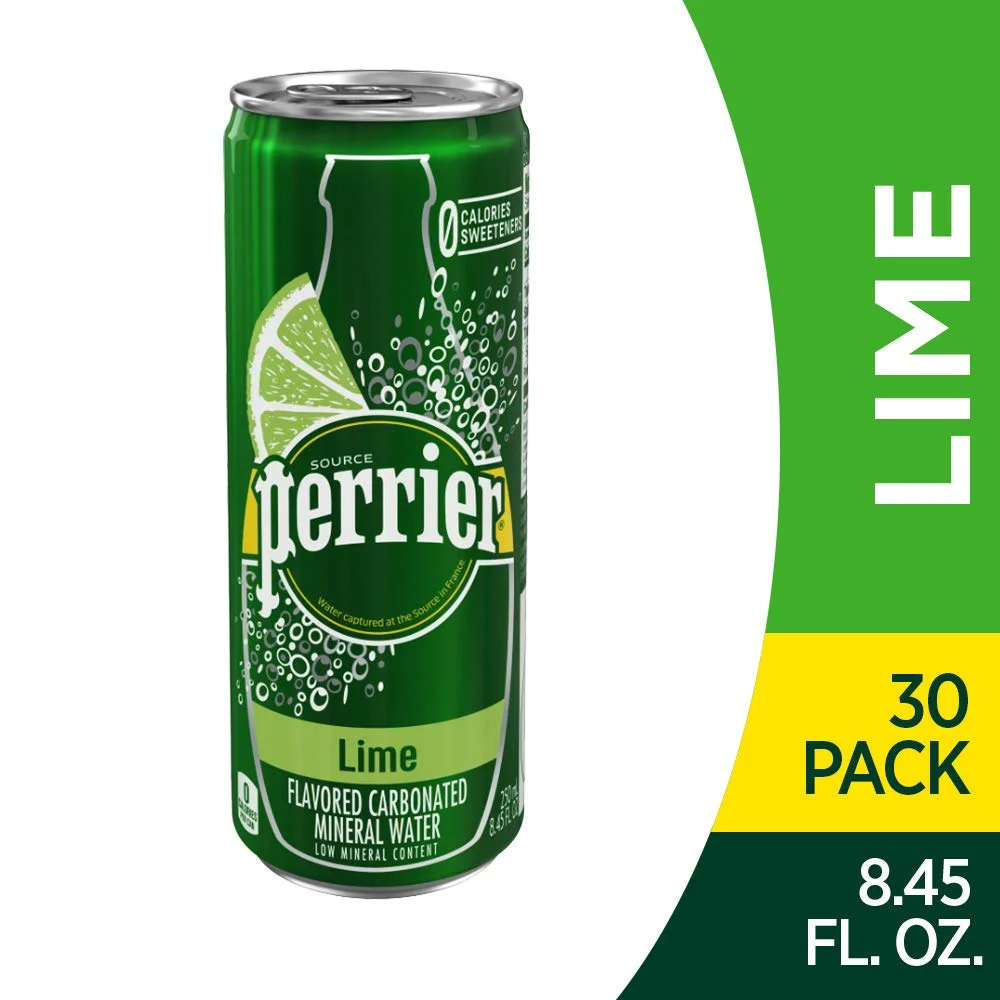 Perrier Lime Flavored Carbonated Mineral Water, 8.45 Fl Oz (30 Pack) Slim Cans