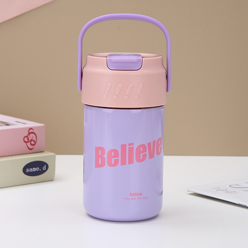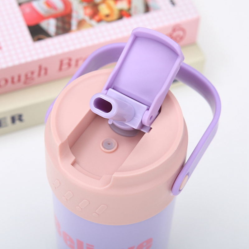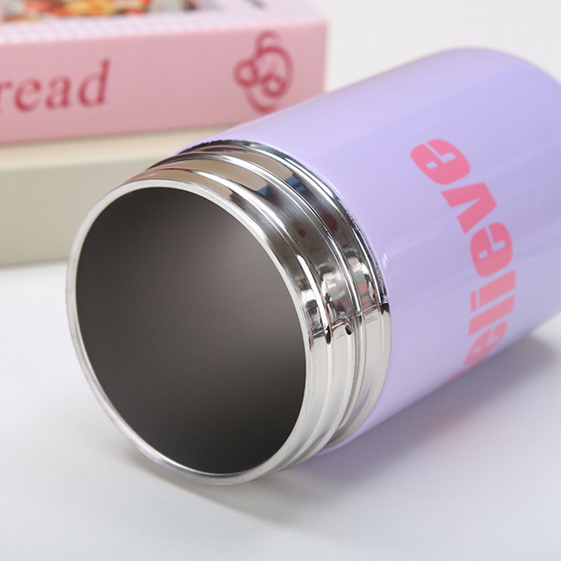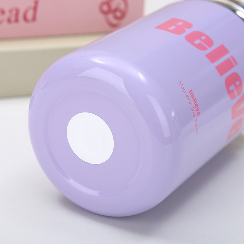 FU-kuuka 500Ml Vacuum Insulated Bottle 316 Stainless Steel Water Floral Tea Cup With Straw(Purple)