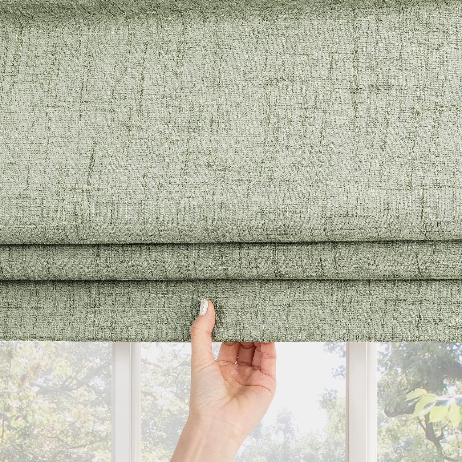 Seraphina Textured Total Blackout Cordless Shade, 39" X 64", Sage Green