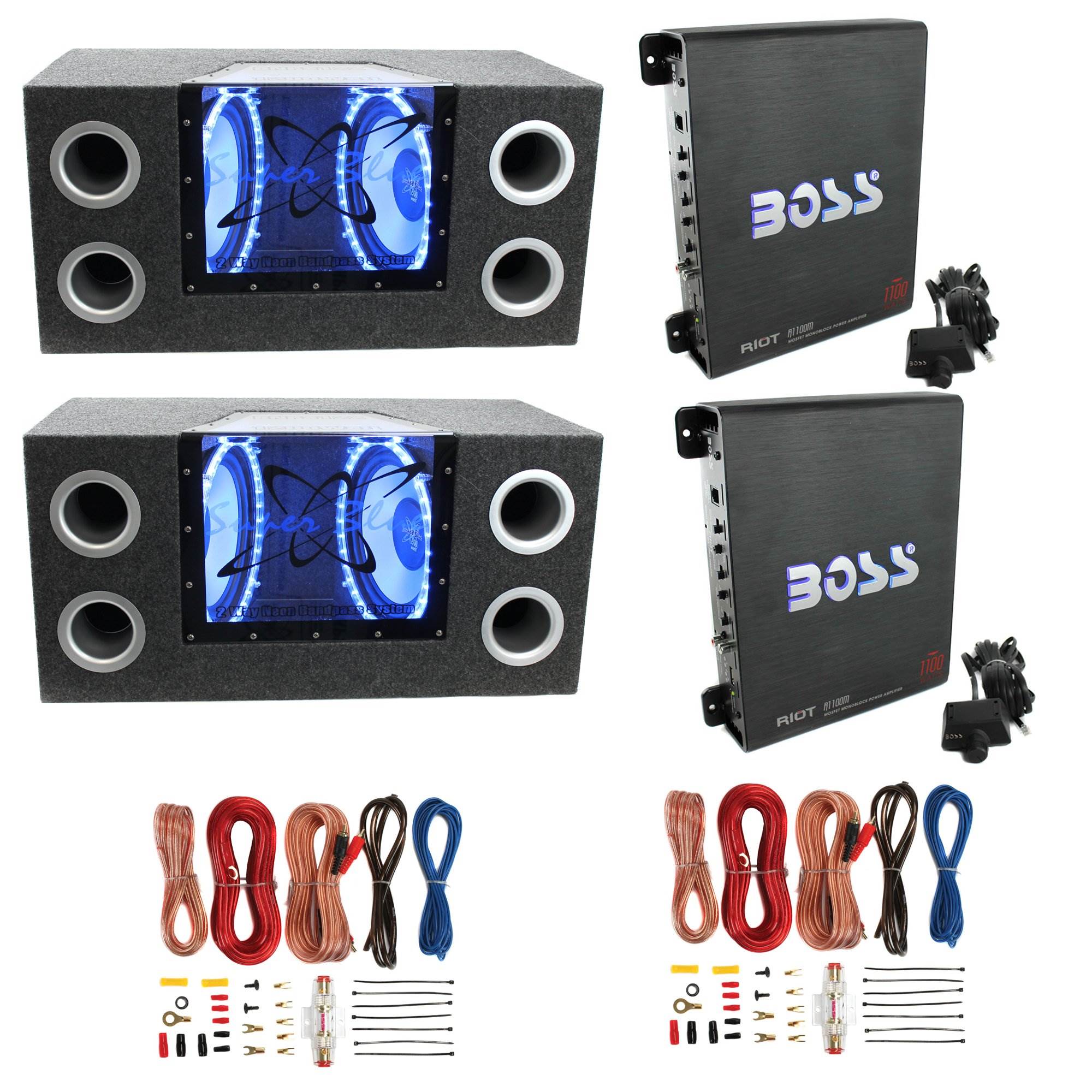 Pyramid Subwoofers (2 Pack) & Boss Amp (2 Pack) & Soundstorm Wire Kit (2 Pack)