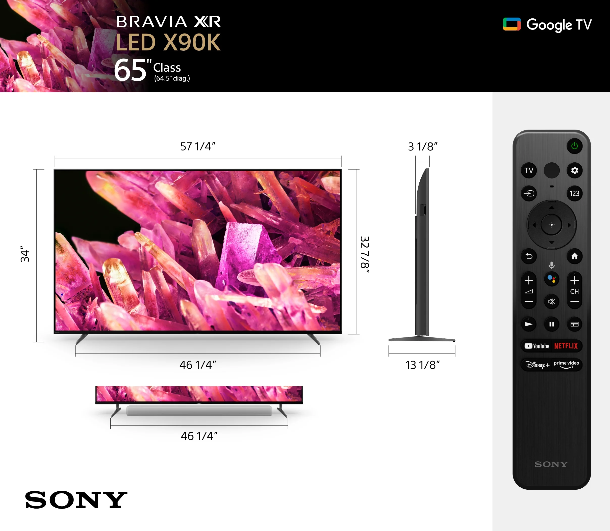 Sony 65” Class BRAVIA XR X90K 4K HDR Full Array LED with Smart Google TV XR65X90K- 2022 Model