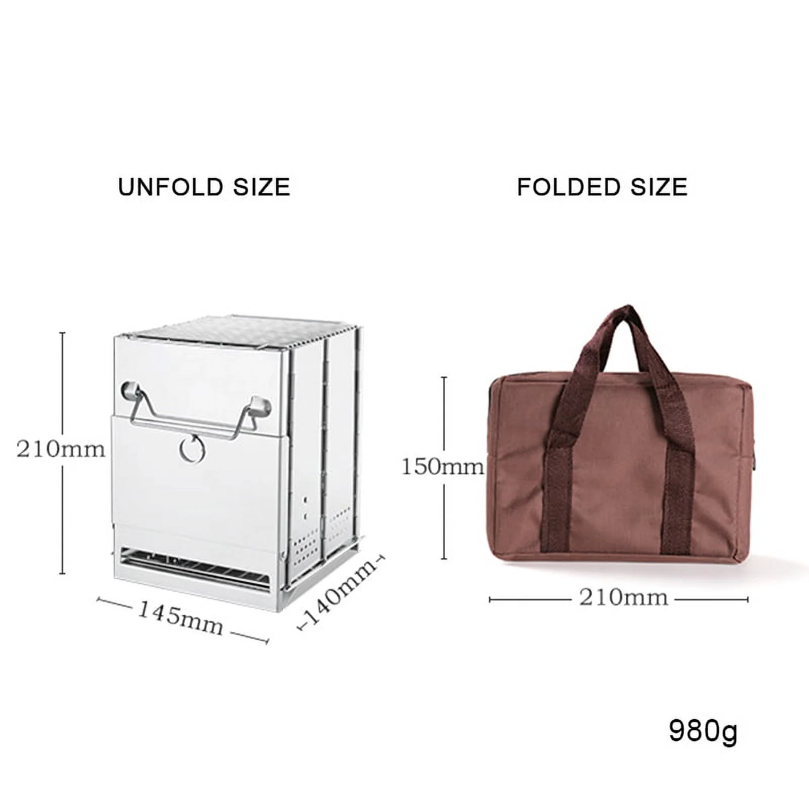 Folding Wood Burning Blowpipe Kit BBQ Grill with Carry Bag for Backpacking Hiking Camping Cooking