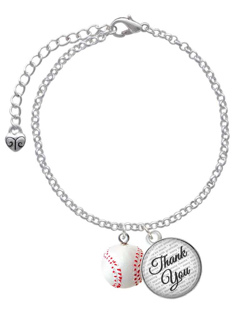 Delight Jewelry Resin 1/2" Baseball - Domed Thank You Charm Bracelet, 6"+2"