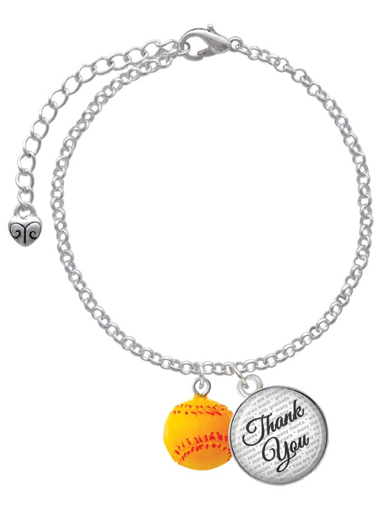 Delight Jewelry Resin 1/2" Softball - Domed Thank You Charm Bracelet, 6"+2"