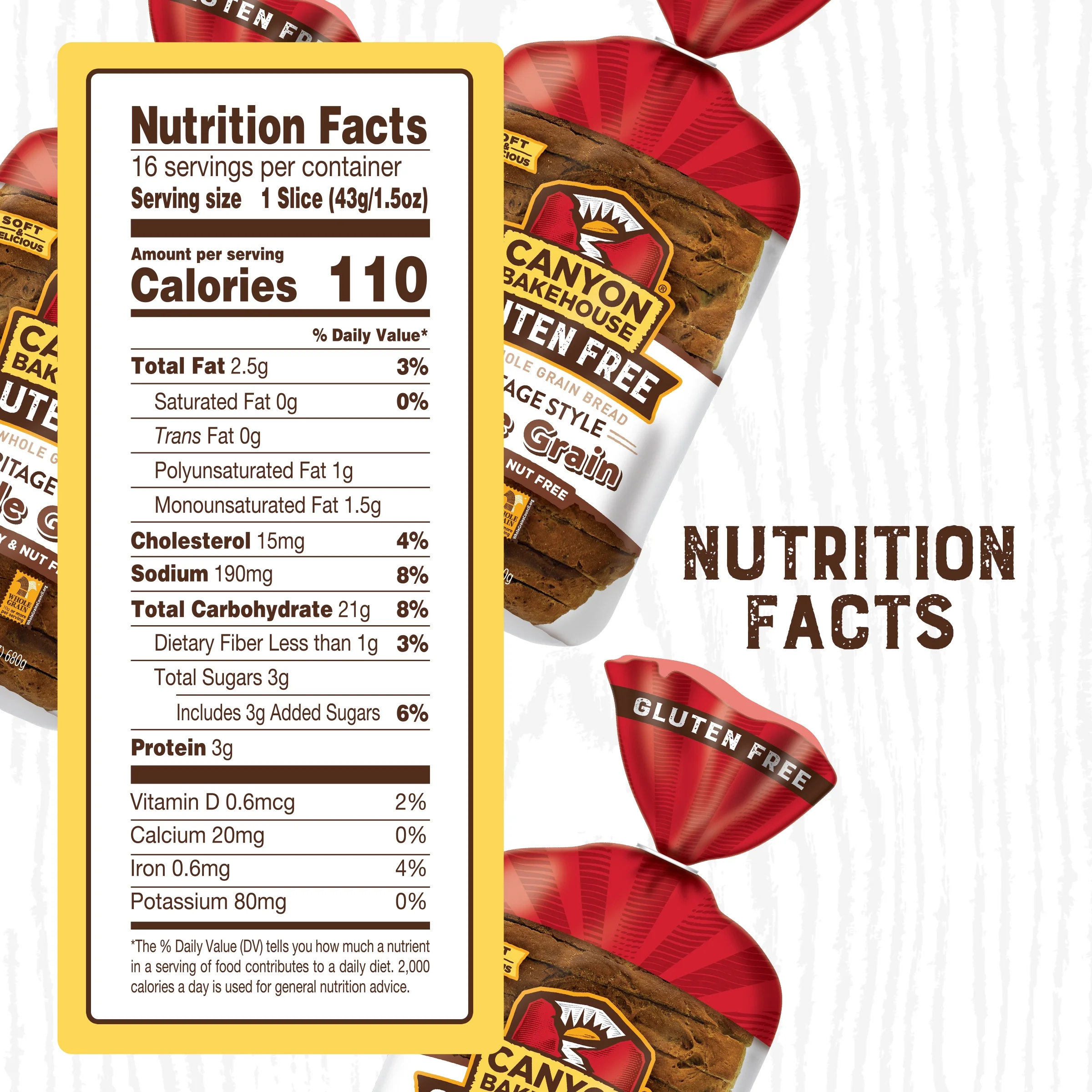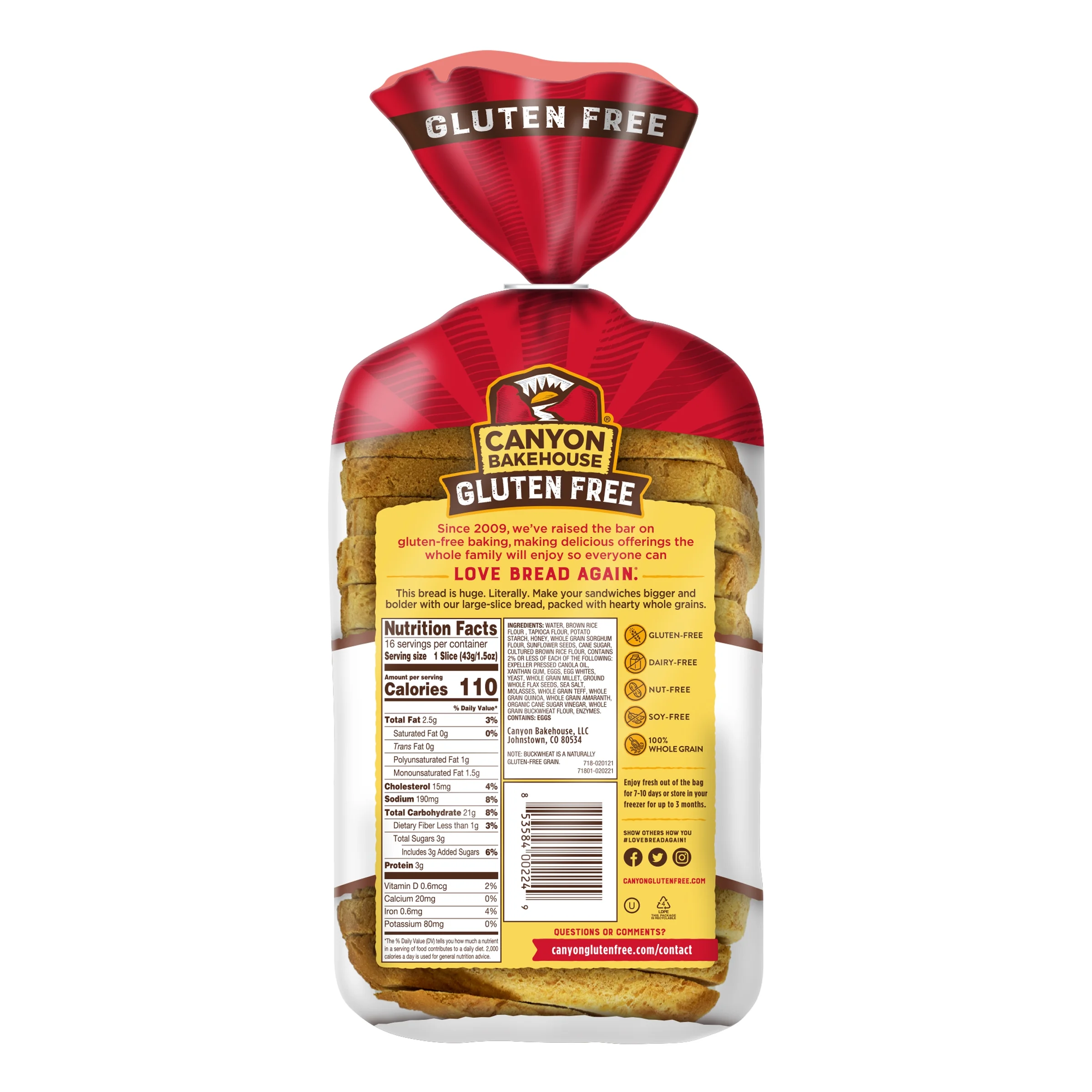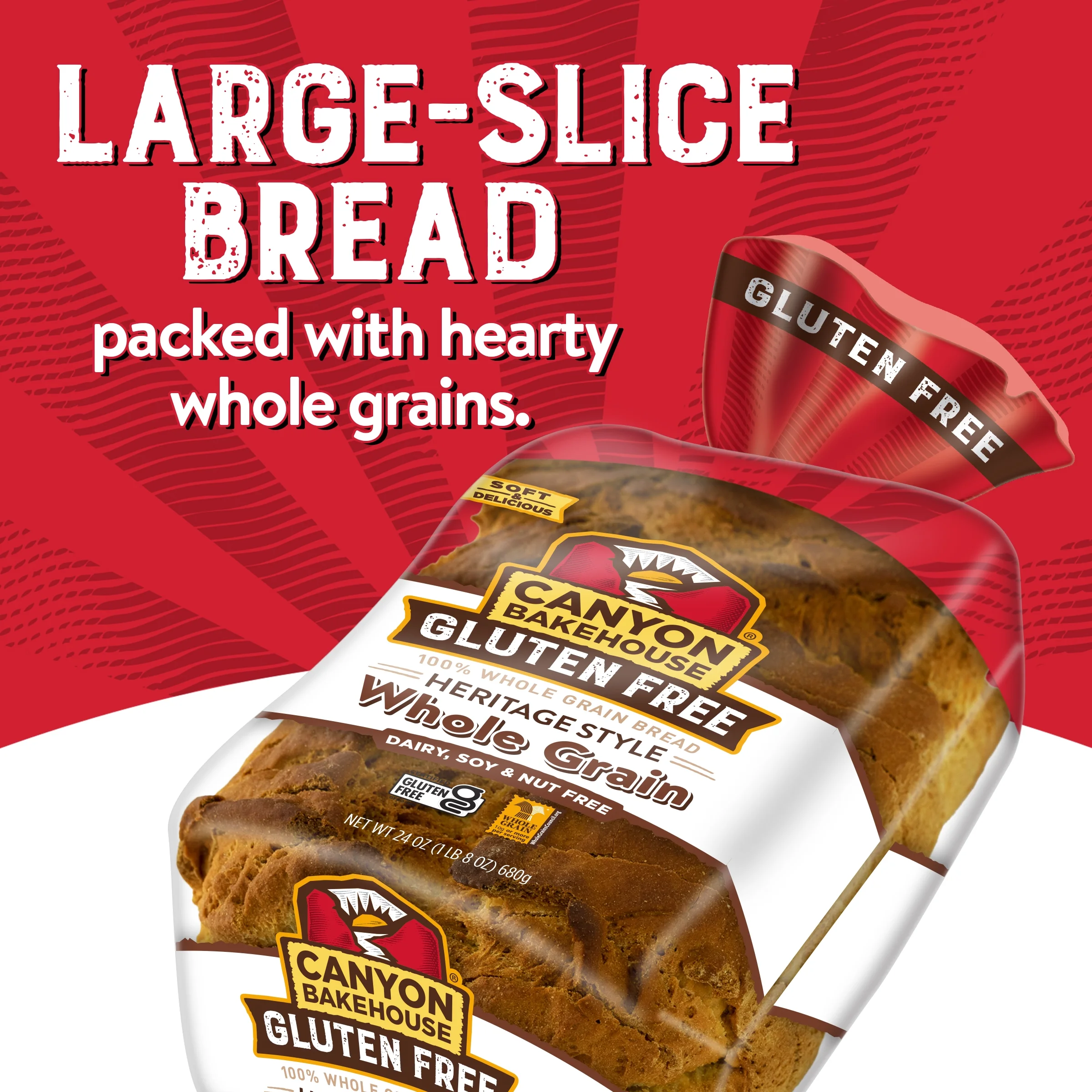 Canyon Bakehouse Heritage Style Whole Grain Gluten Free Bread, Large-Sliced, Frozen, 24 oz, Loaf