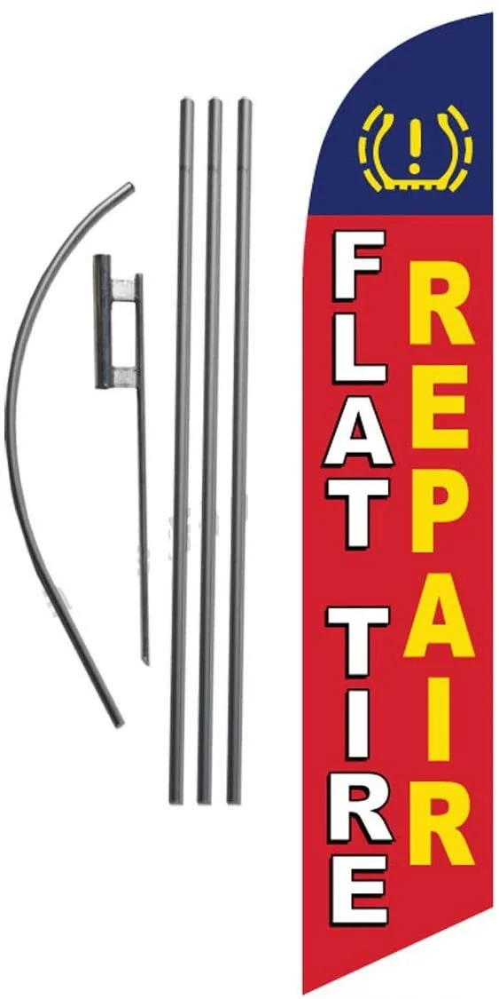 Flat Tire Repair 15ft Feather Banner Swooper Flag Kit - INCLUDES 15FT POLE KIT w/GROUND SPIKE