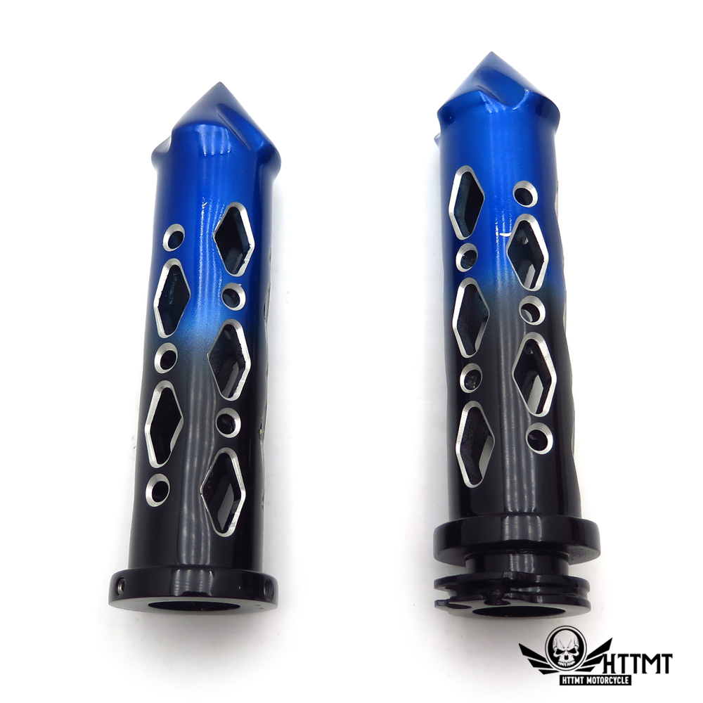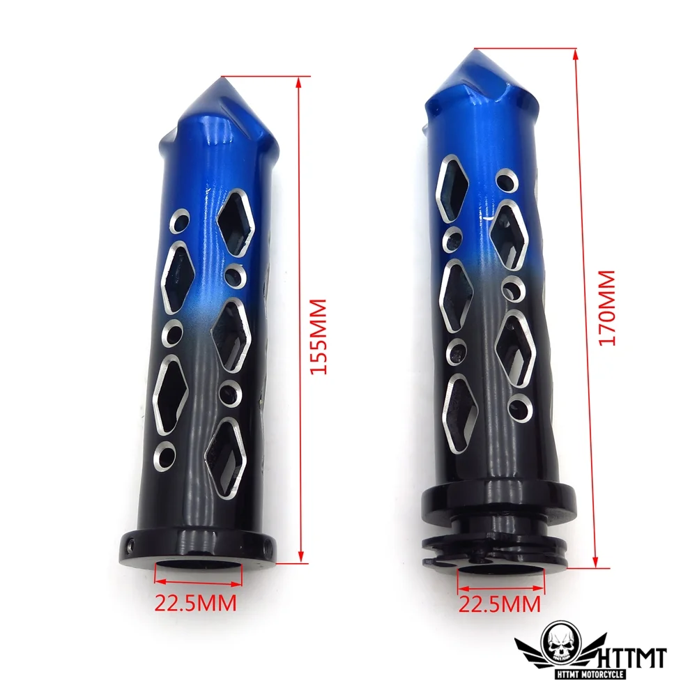 HTTMT- Black Blue Cruiser Motorcycle 22mm 7/8" Spike Hole Hollow-out Hand Grips Handlebar [See Fitmen]