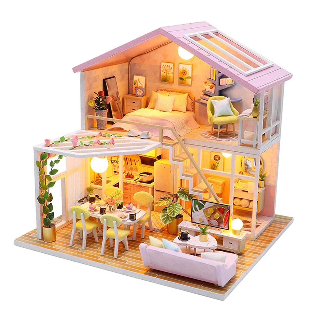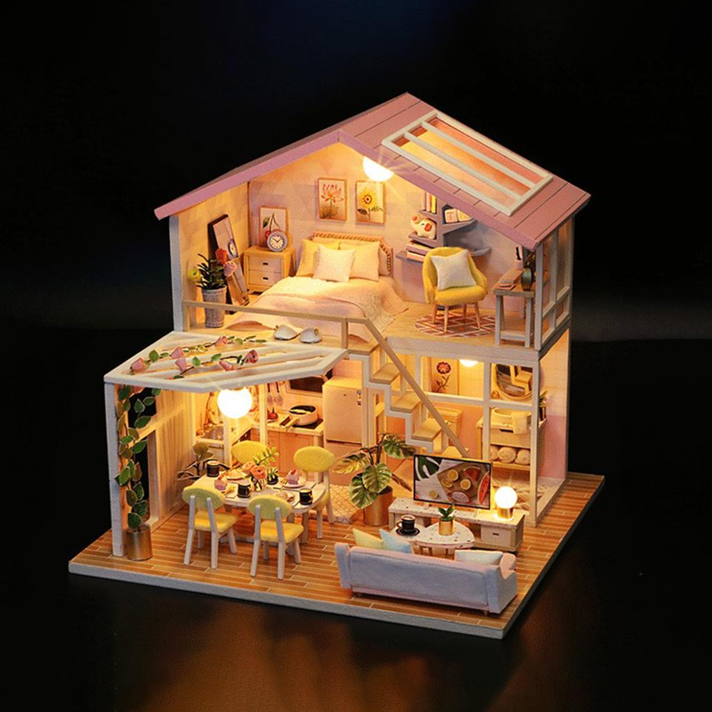 DIY Miniature Dollhouse Kit Realistic 3D Wooden House Room Craft with Furniture LED Lights Christmas Birthday Gift