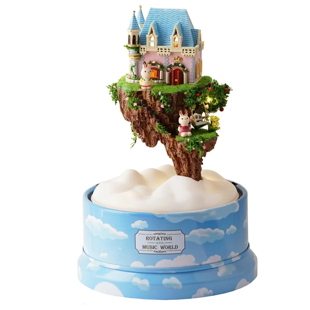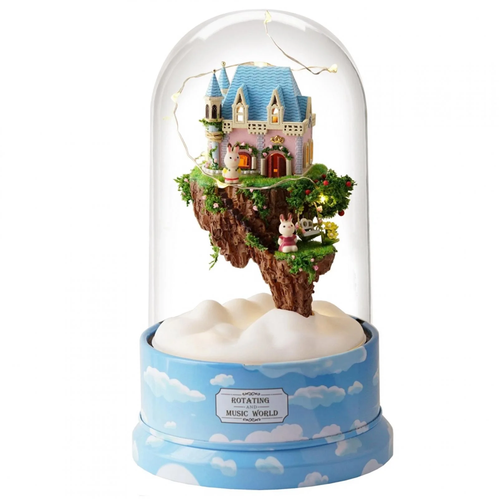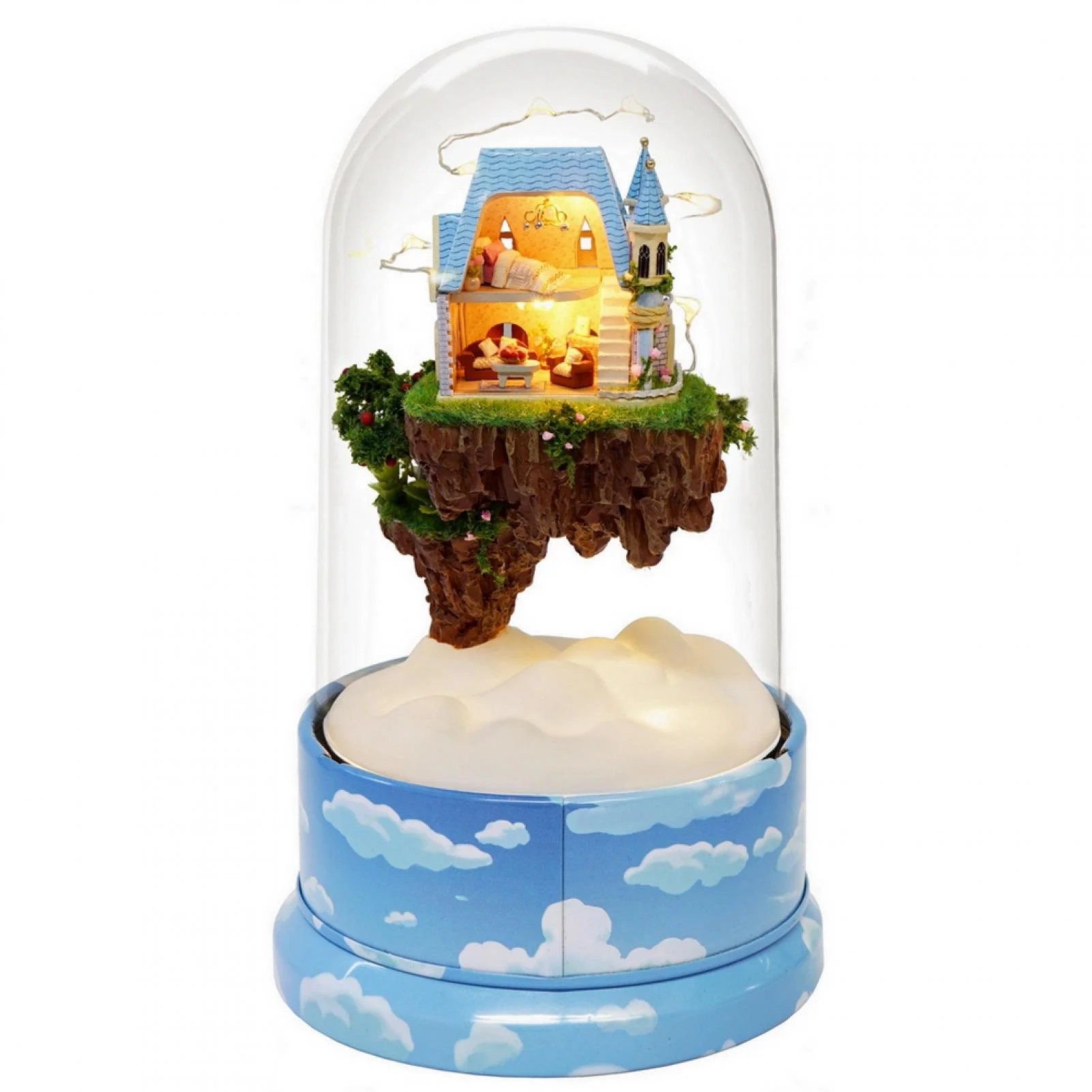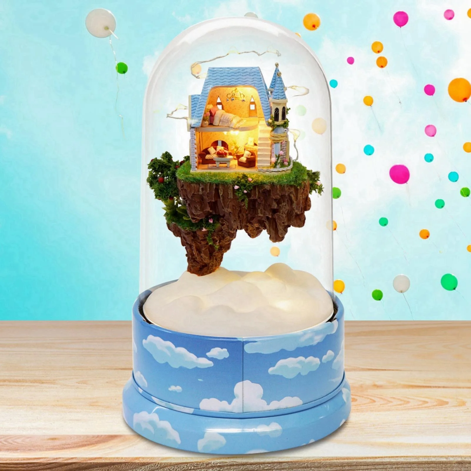 DIY Dollhouse Miniature Model Doll House with Dust Cover Rotate Music Box Dream of Sky